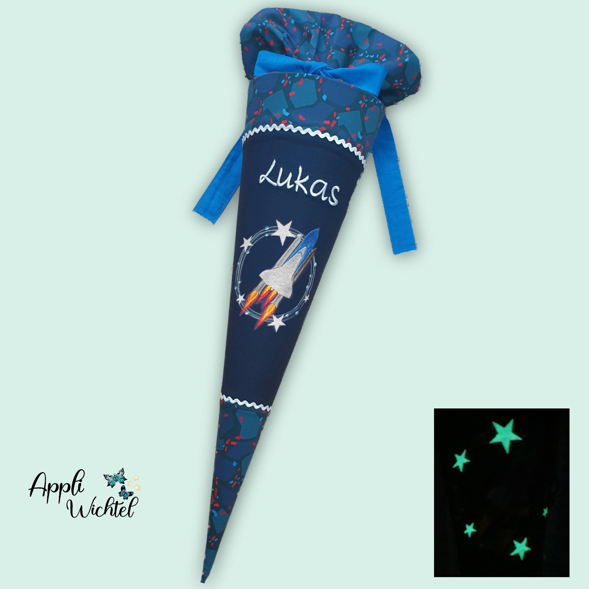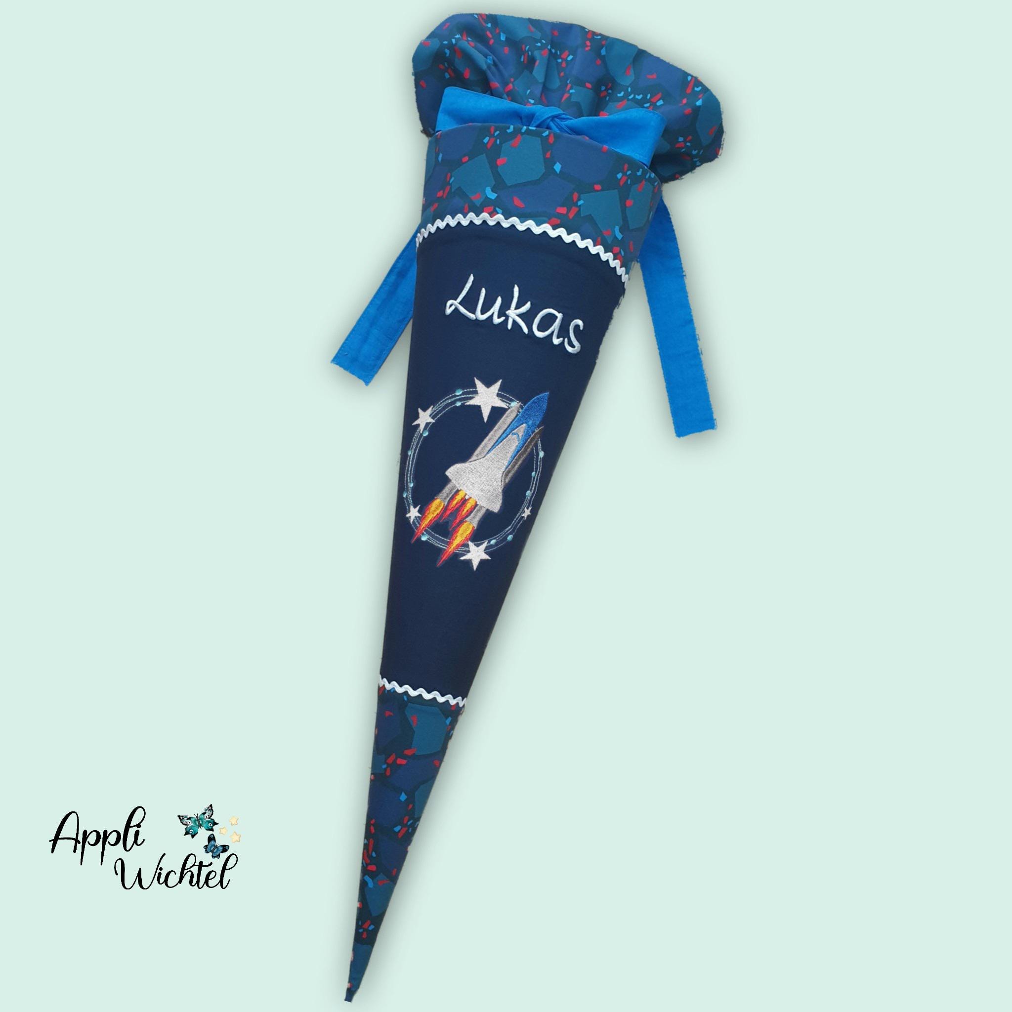 Jede Schultüte wird mit einem gestickten Motiv und dem Namen deines Kindes individuell gestaltet. Auf Wunsch fügen wir auch das Datum des ersten Schultages hinzu.