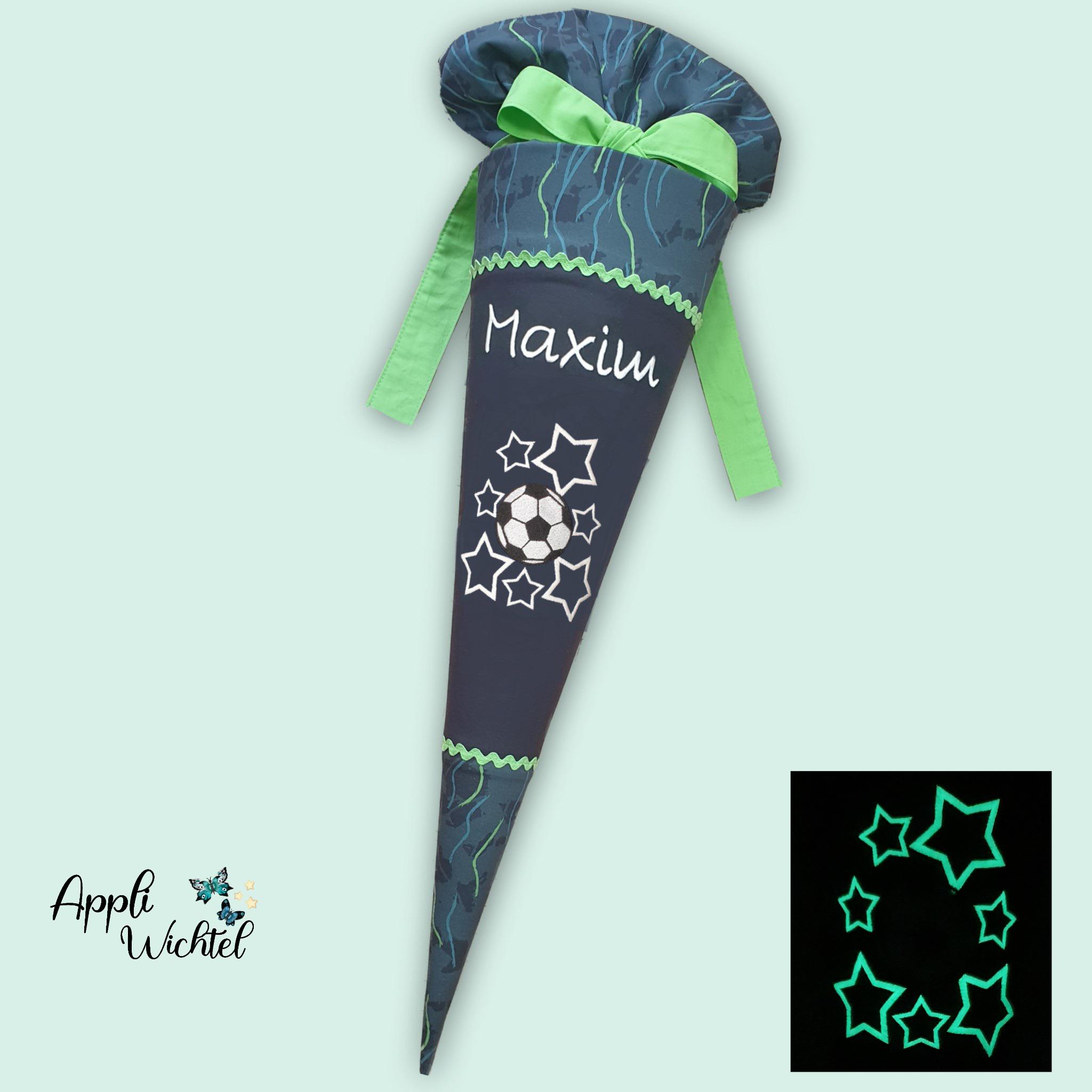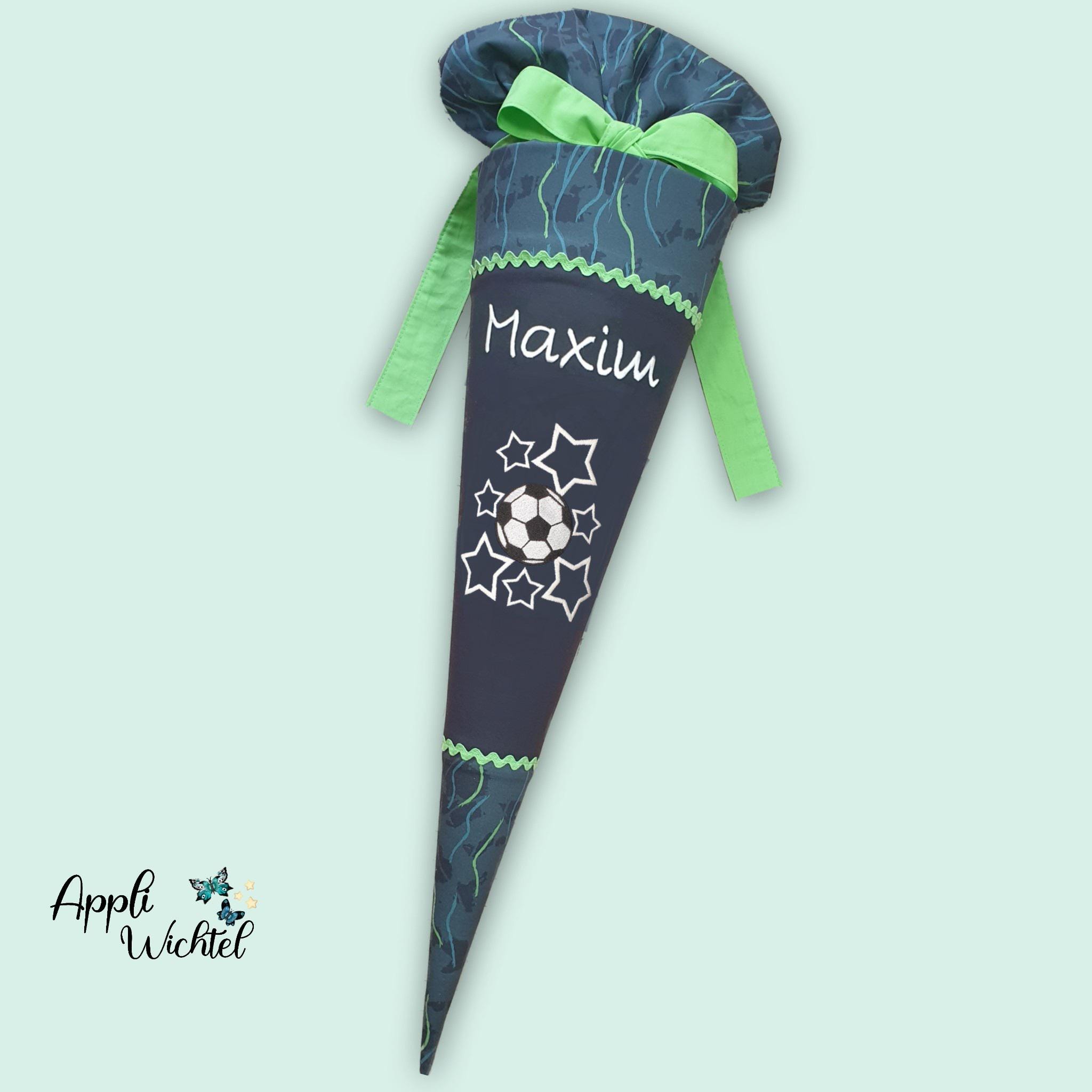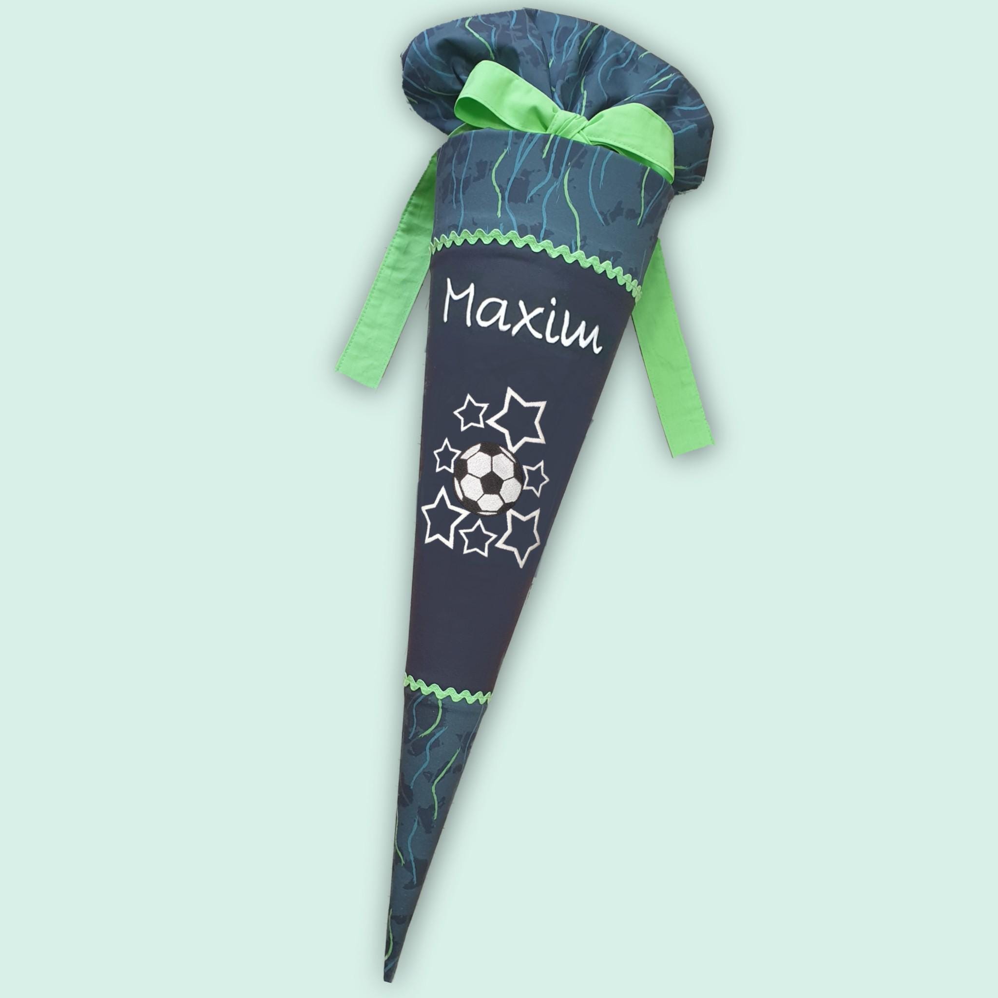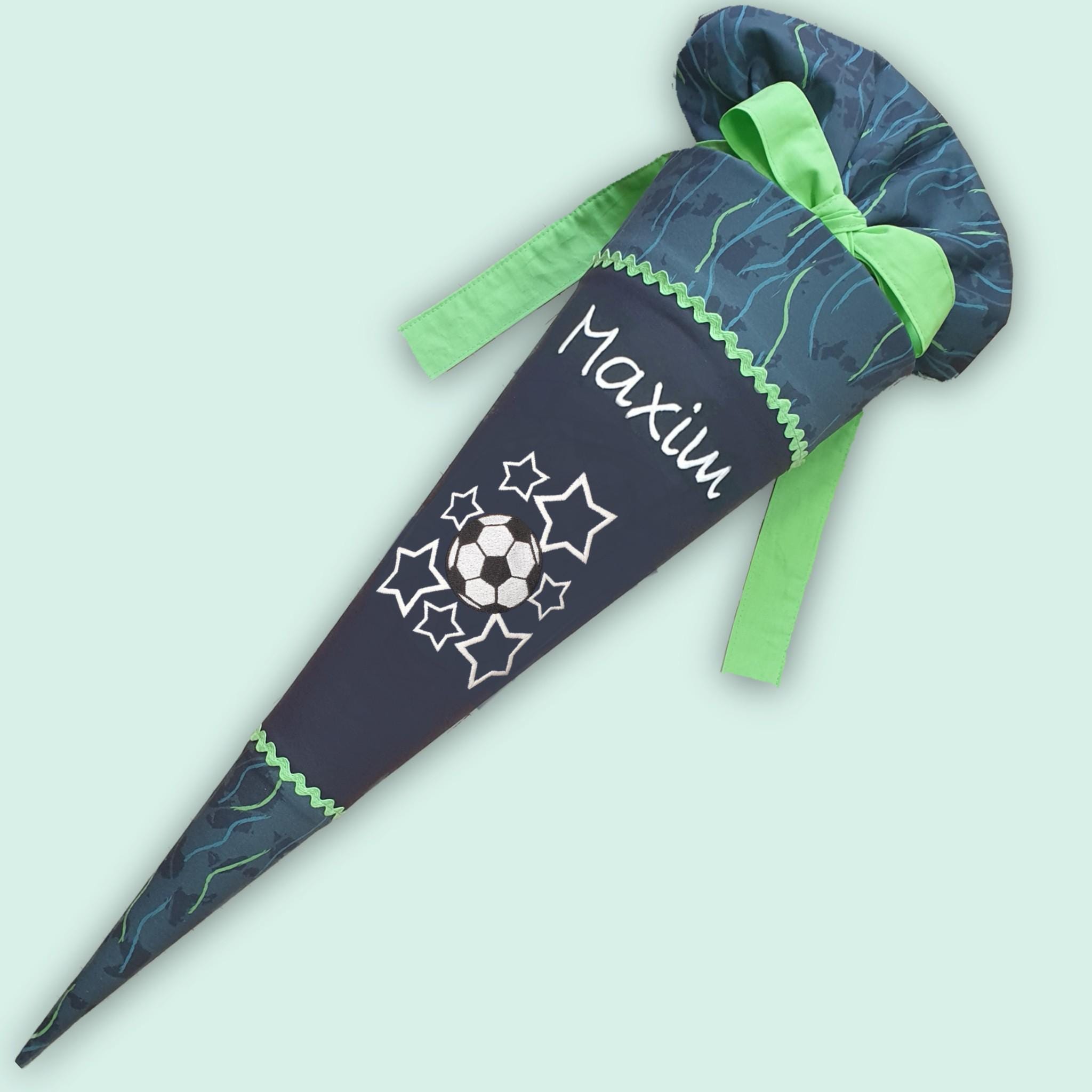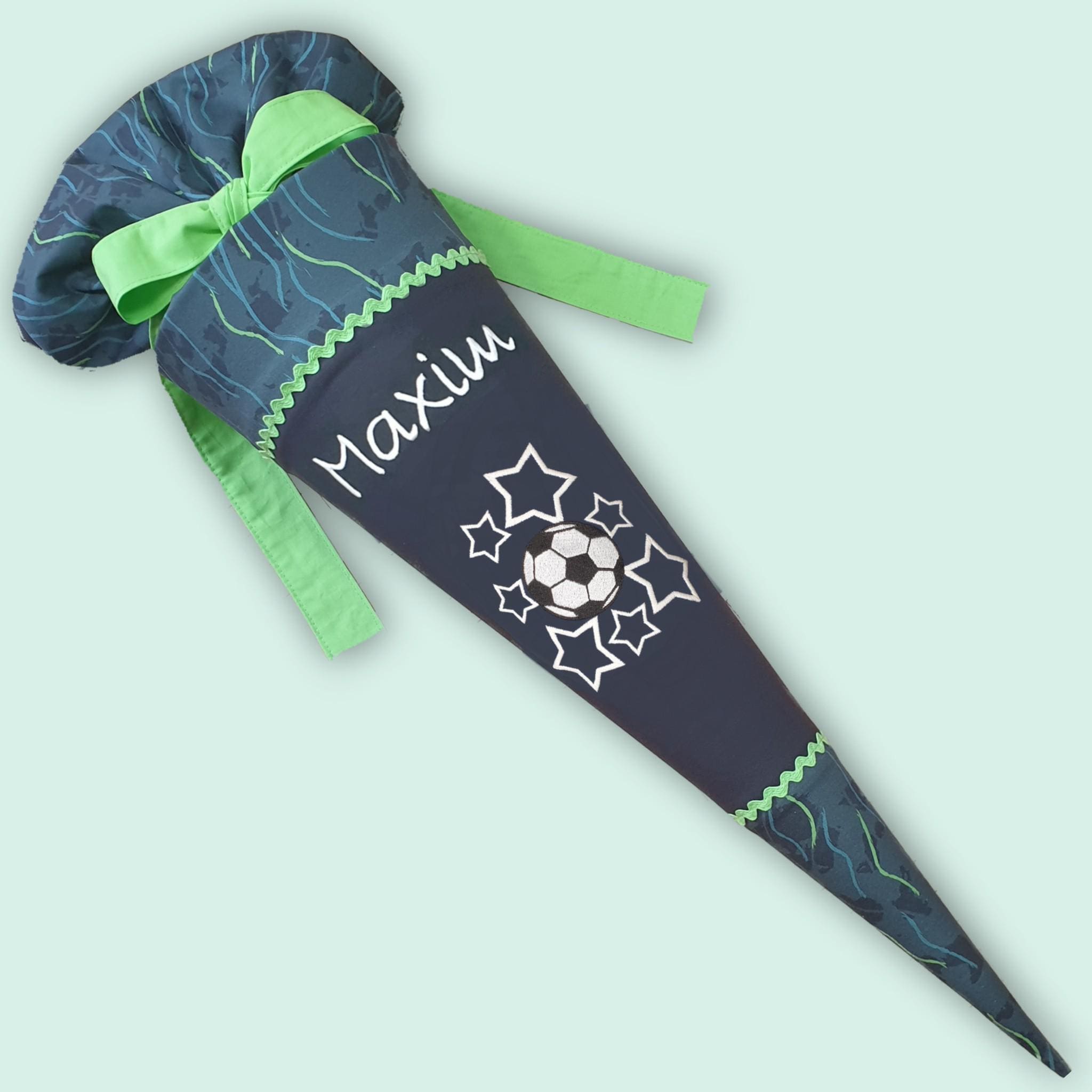 Schultüte mit Fussball und Namen farblich auf den Step by Step Danger Cat Chiko Schulranzen abgestimmt.