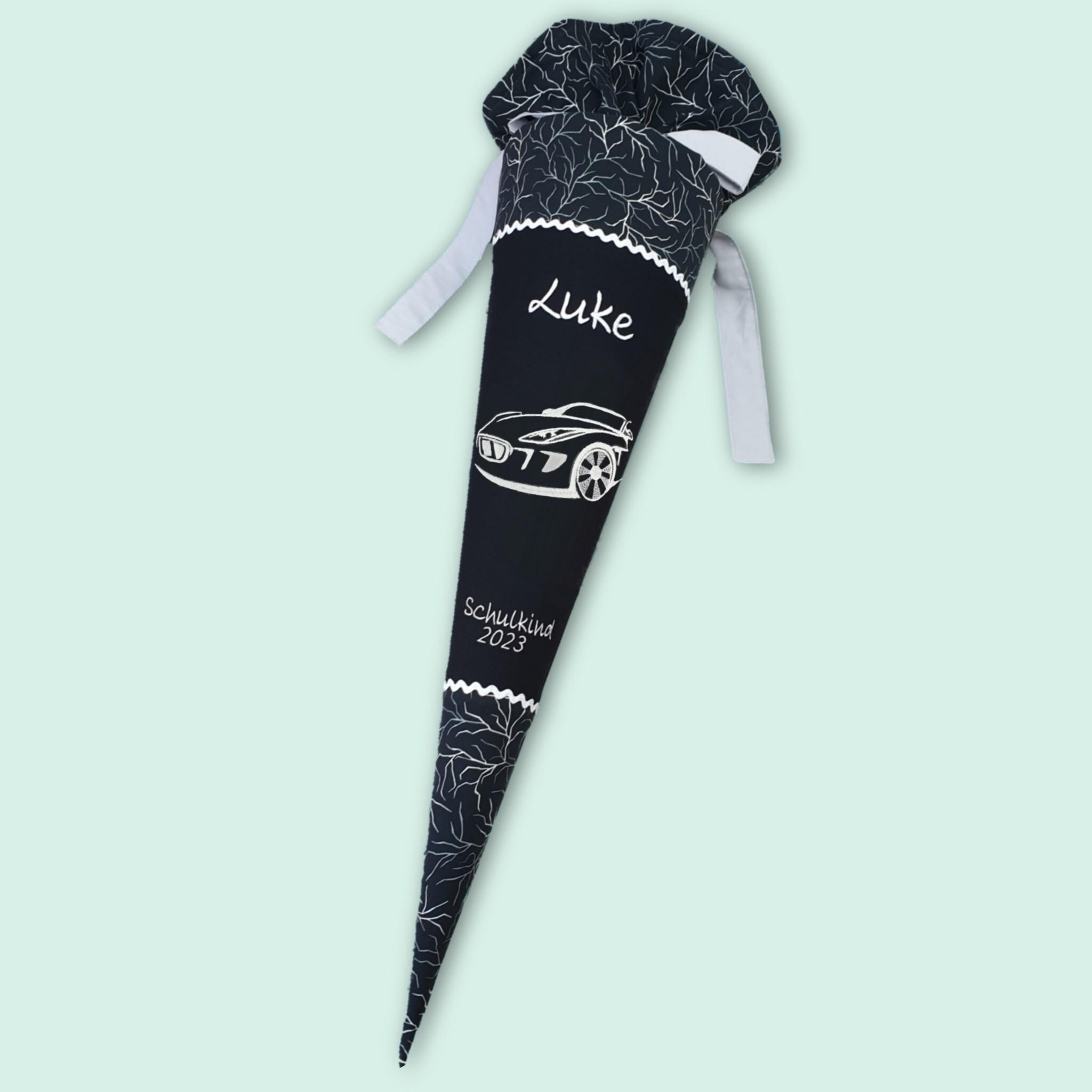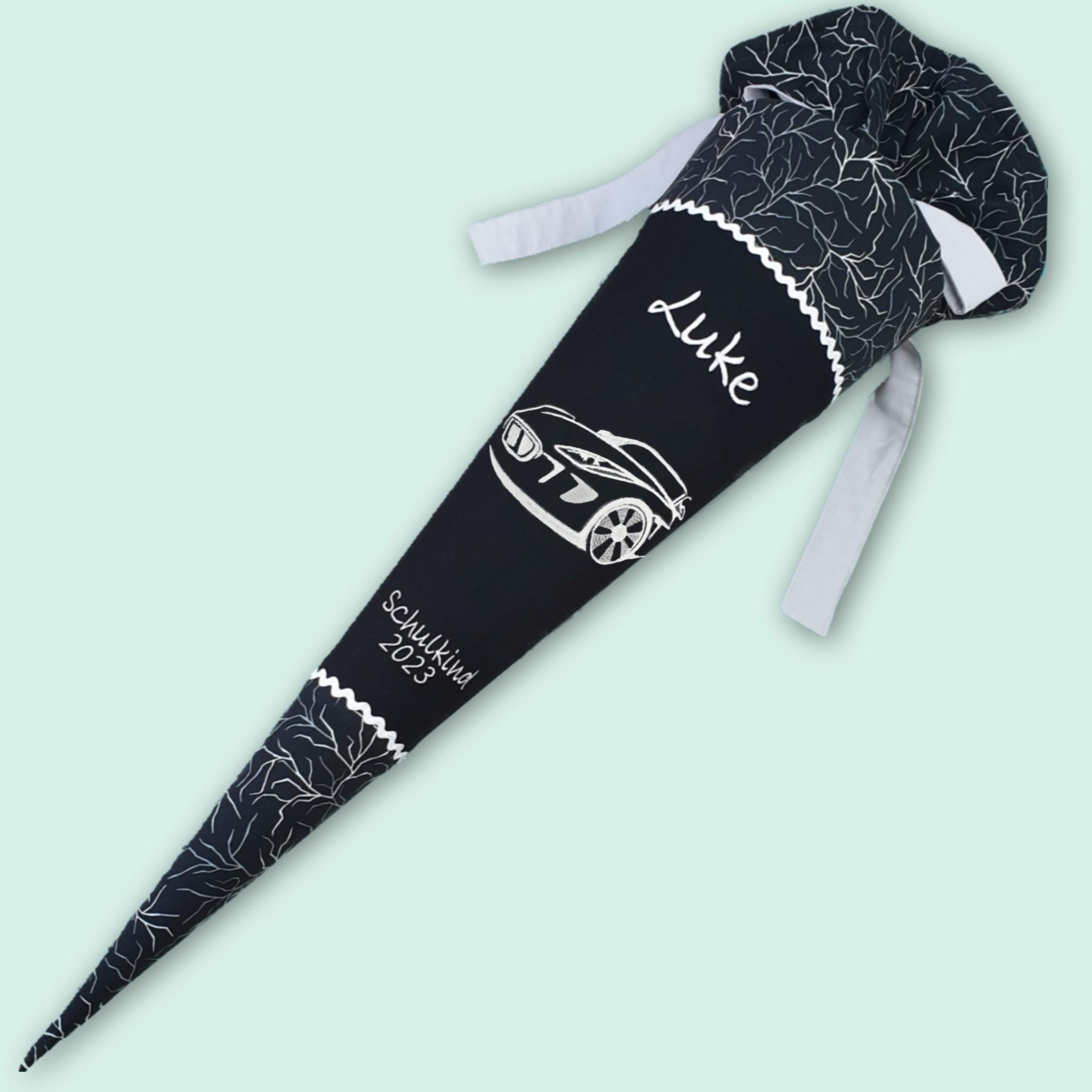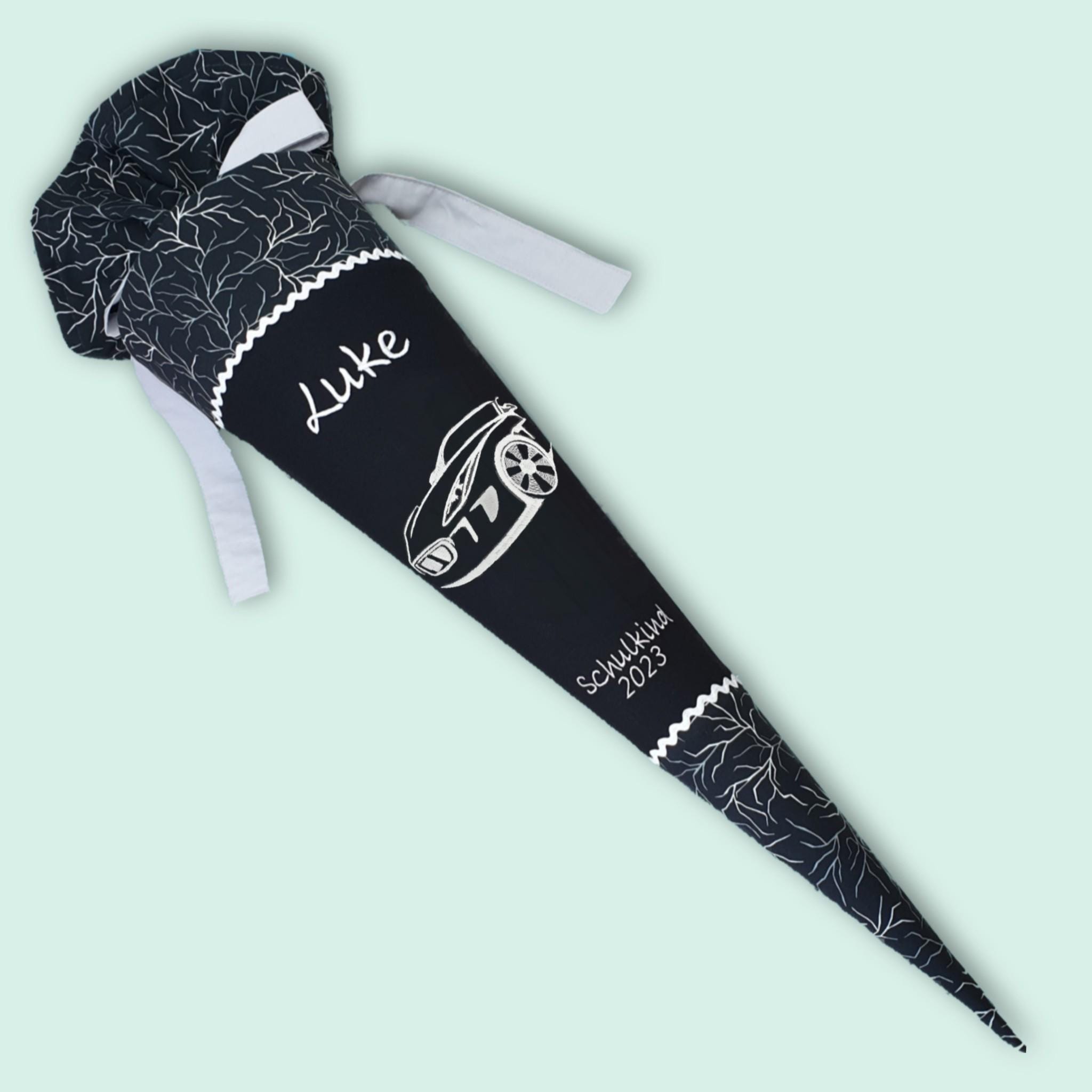 Jede Schultüte wird mit einem gestickten Motiv und dem Namen deines Kindes individuell gestaltet. Auf Wunsch fügen wir auch das Datum des ersten Schultages hinzu.