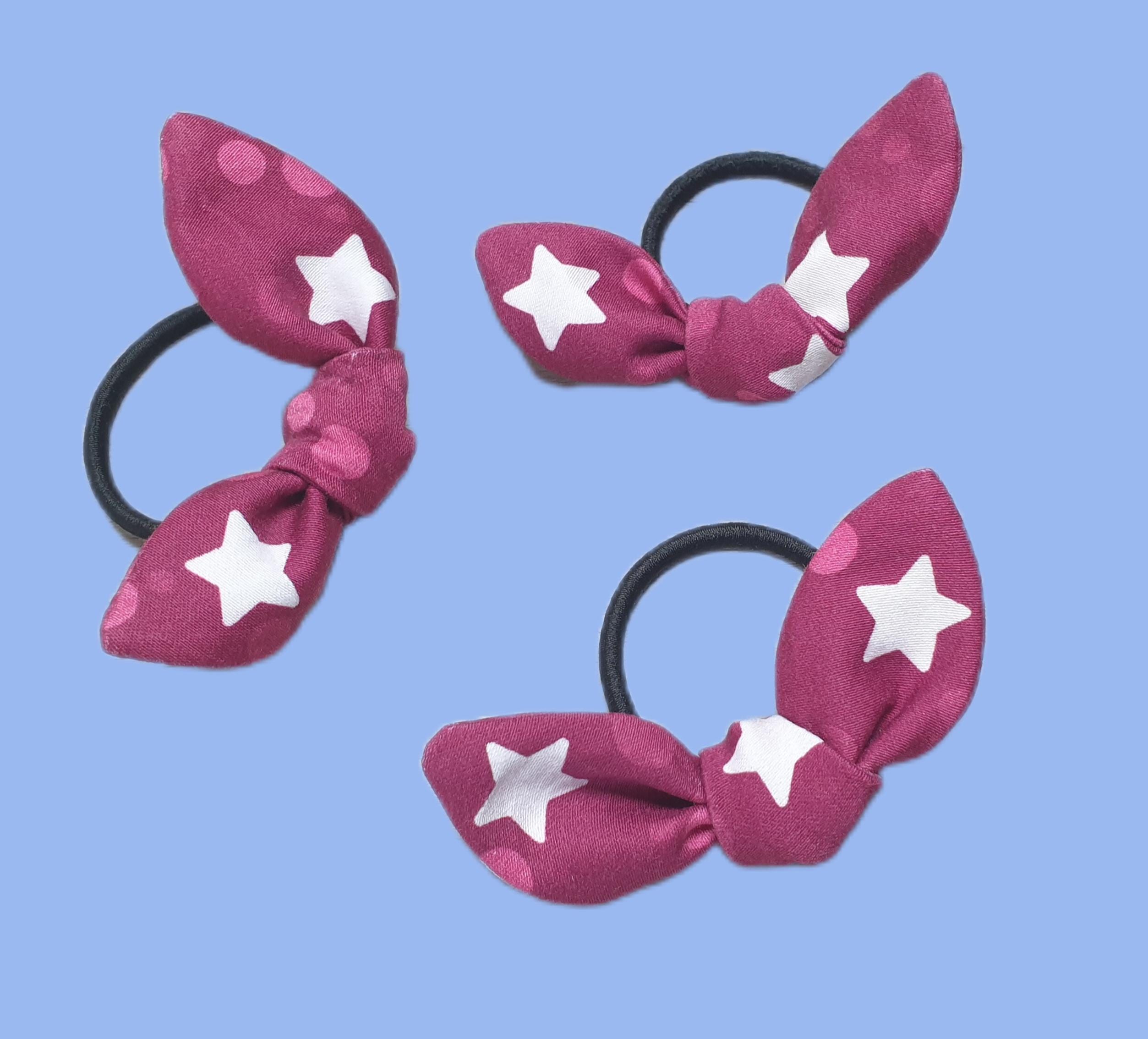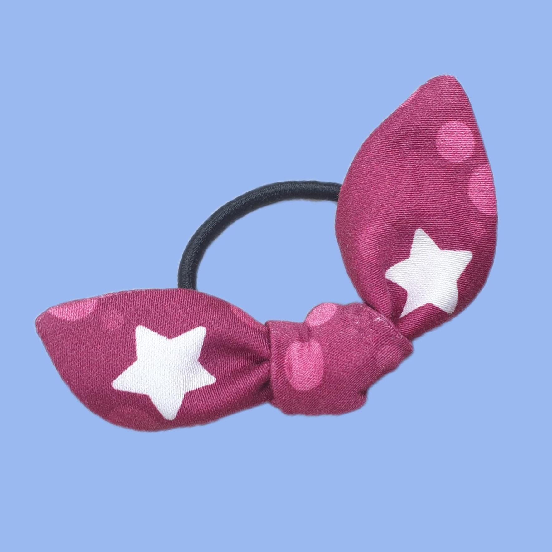Dieses süße Haargummi mit einer Baumwollschleife ist der ideale Begleiter für die Schule. Es hält das Haar zuverlässig zusammen und passt perfekt zum Schulranzen.