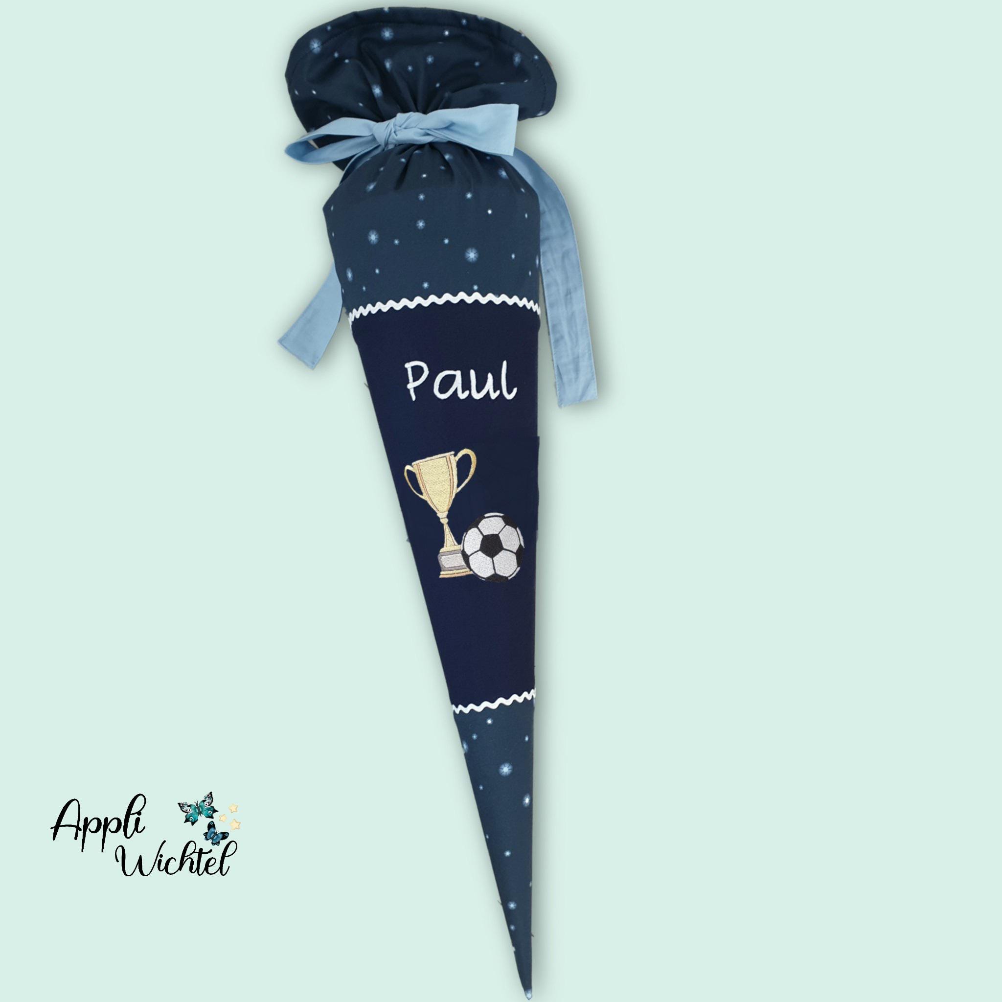 Jede Schultüte wird mit einem gestickten Motiv und dem Namen deines Kindes individuell gestaltet. Auf Wunsch fügen wir auch das Datum des ersten Schultages hinzu.