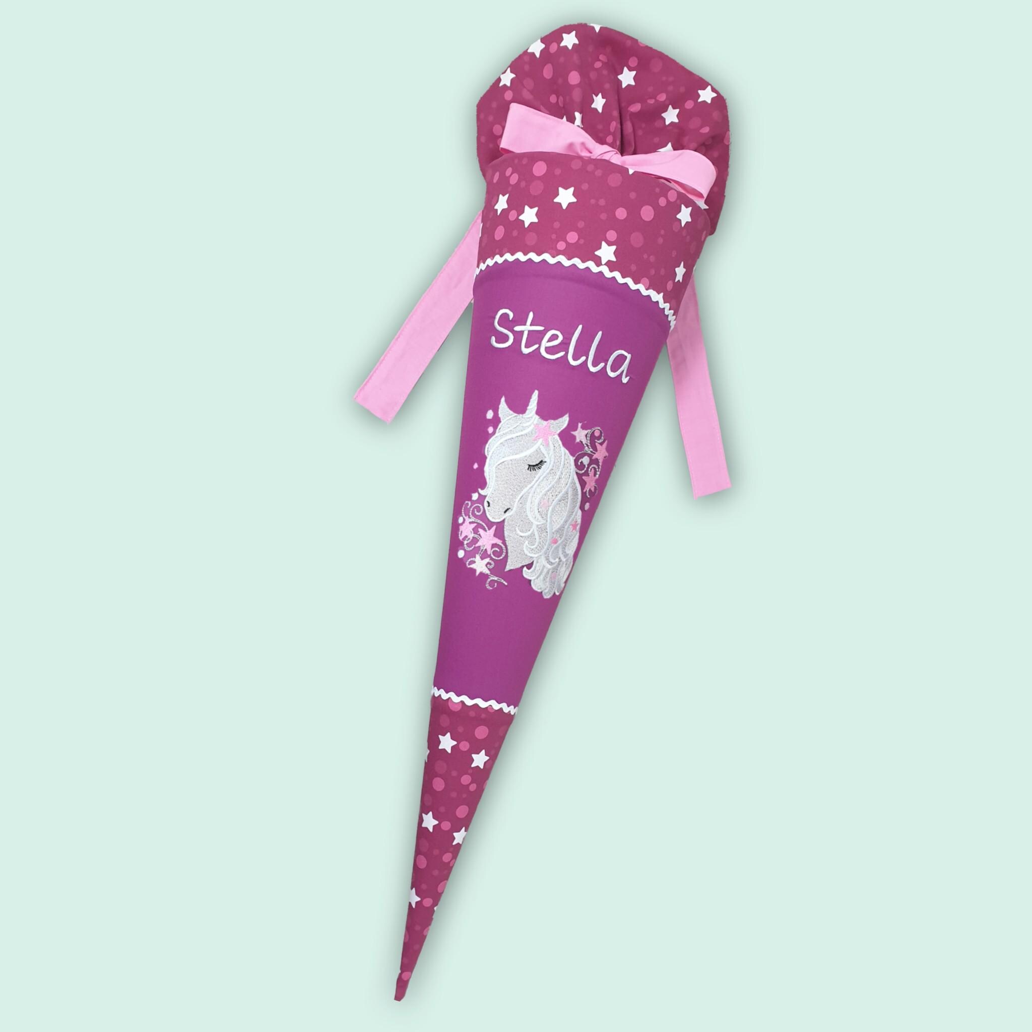 Schultüte mit Einhorn und Namen farblich auf den Step by step sweet Unicorn Nuala Schulranzen abgestimmt.