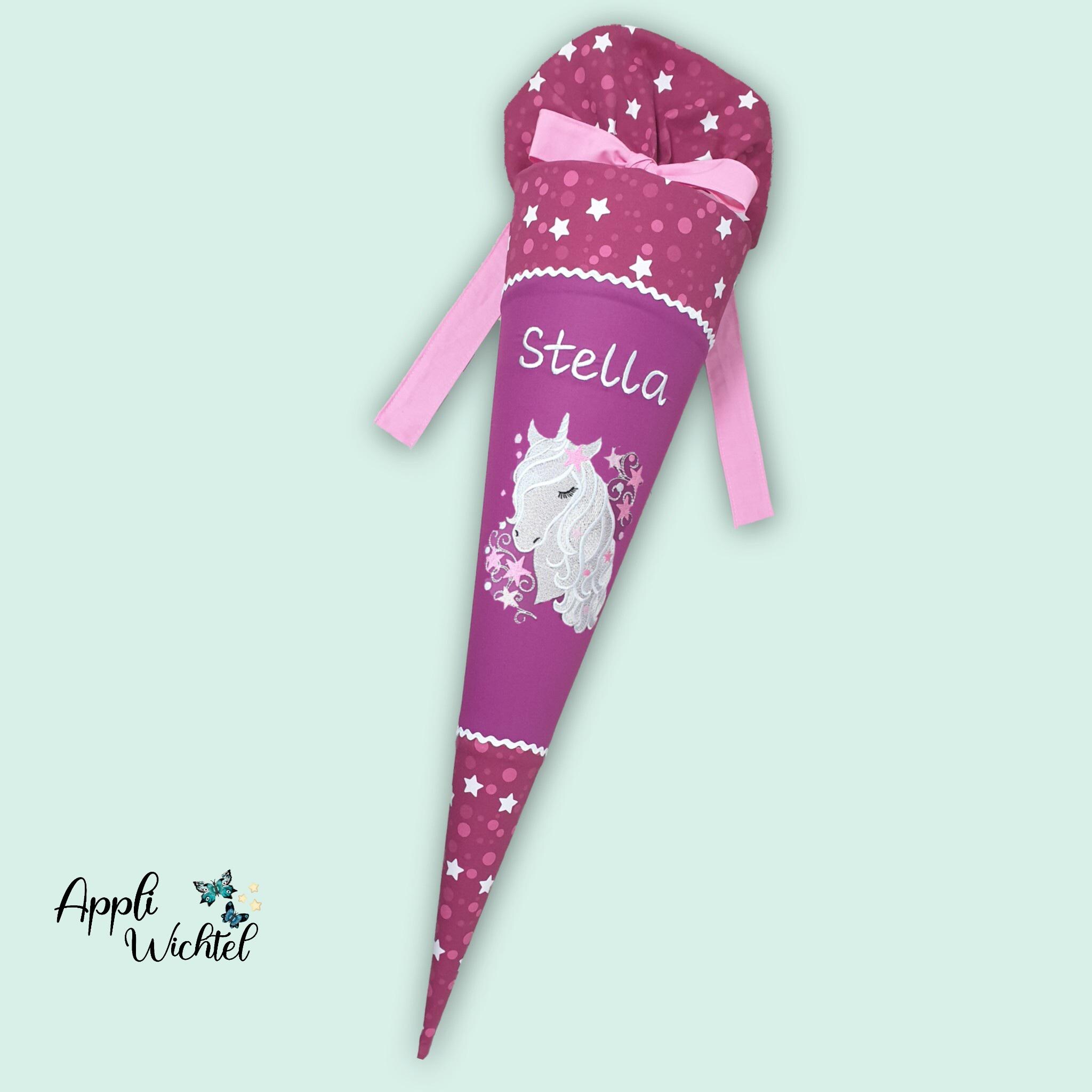 Jede Schultüte wird mit einem gestickten Motiv und dem Namen deines Kindes individuell gestaltet. Auf Wunsch fügen wir auch das Datum des ersten Schultages hinzu.