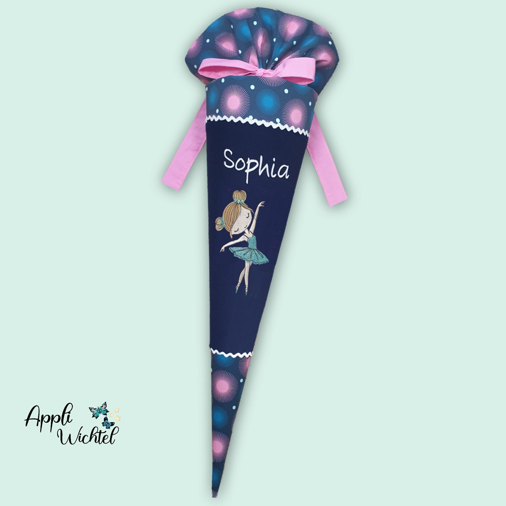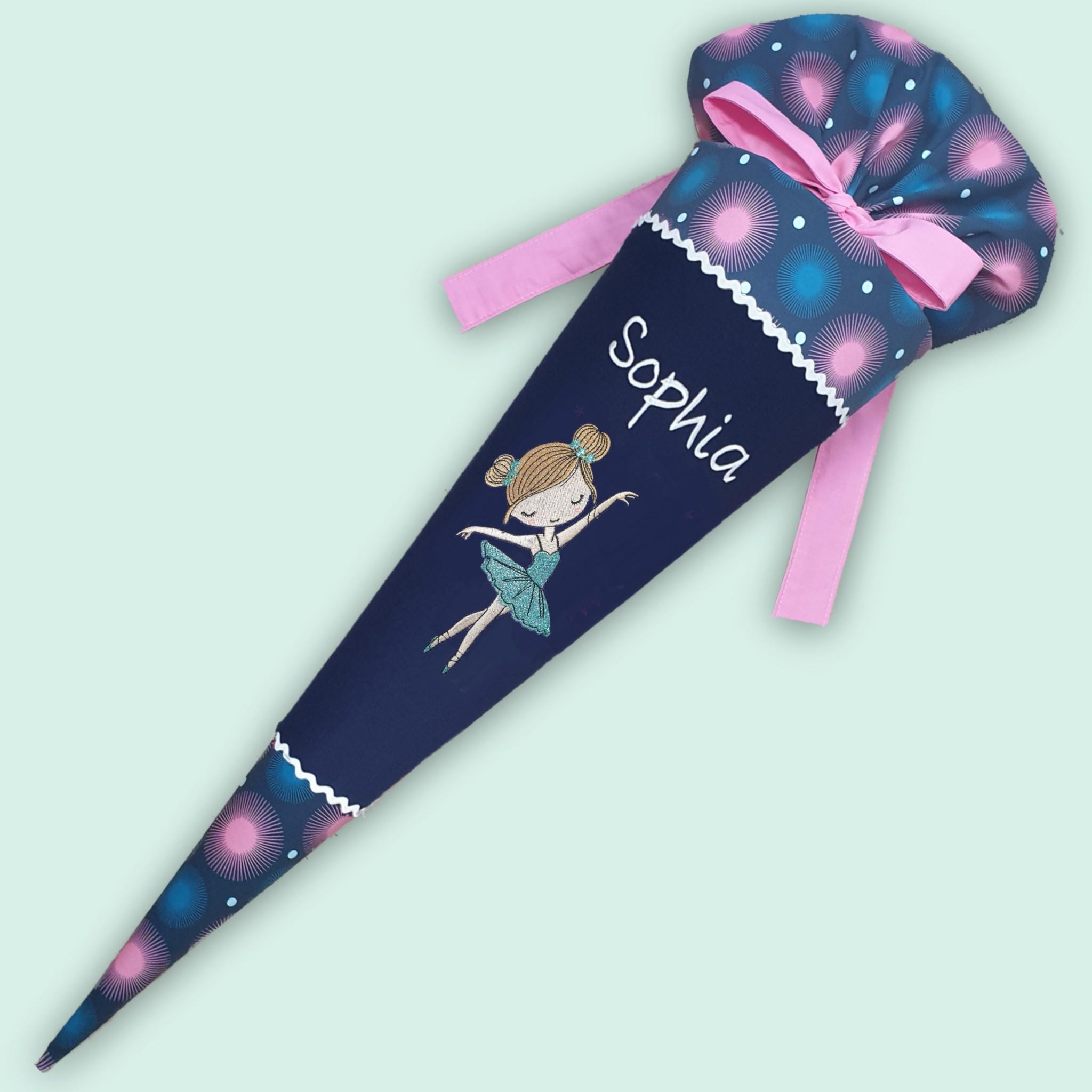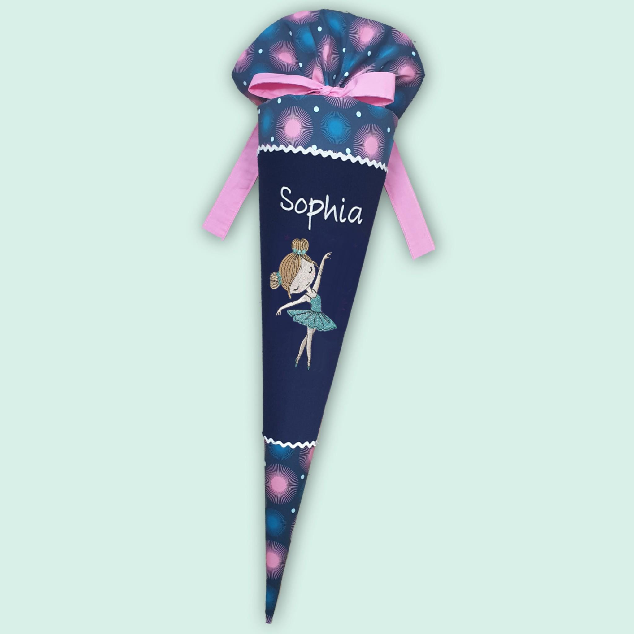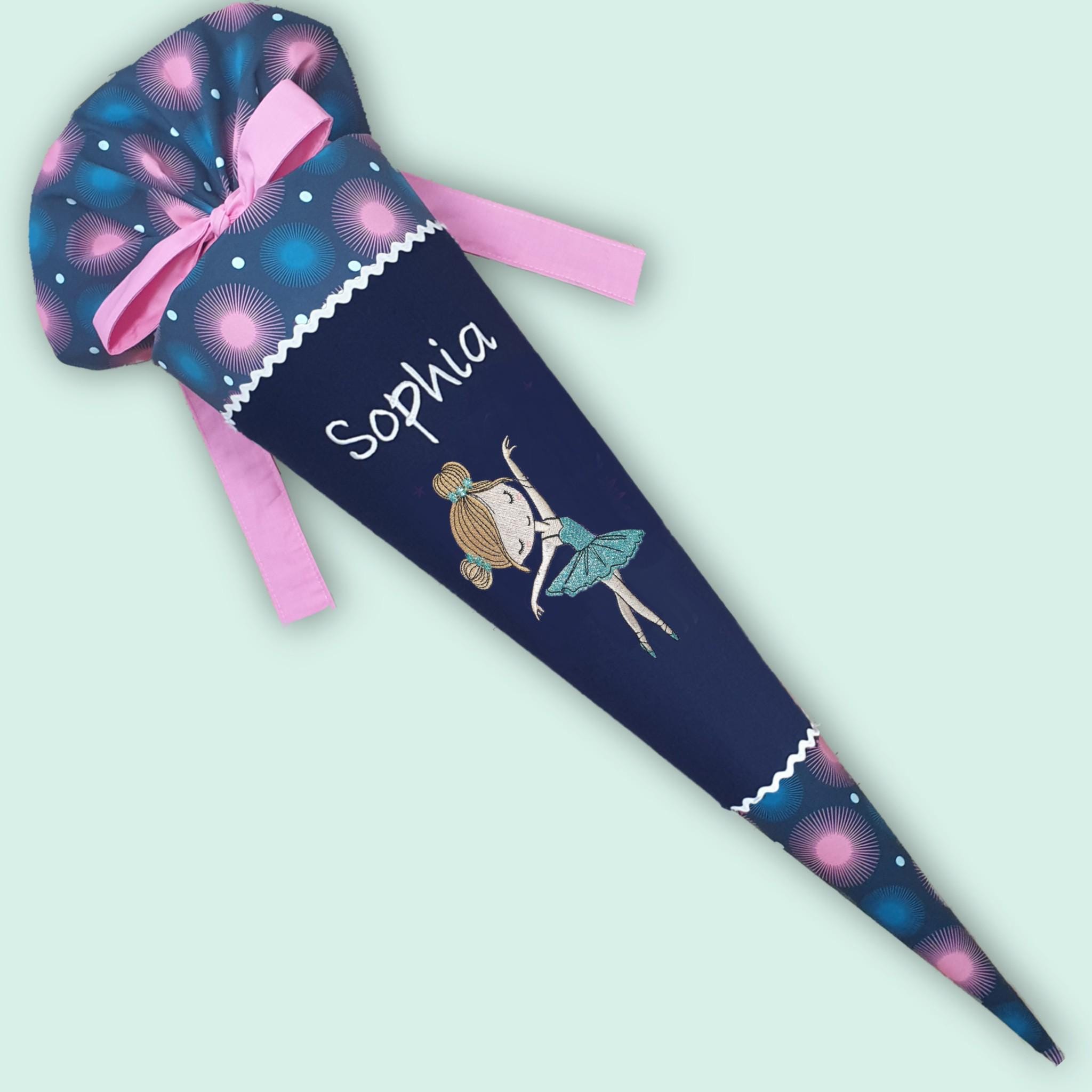 Schultüte mit Tänzerin und Namen farblich auf den Step by step Mermaid Delia Schulranzen abgestimmt.