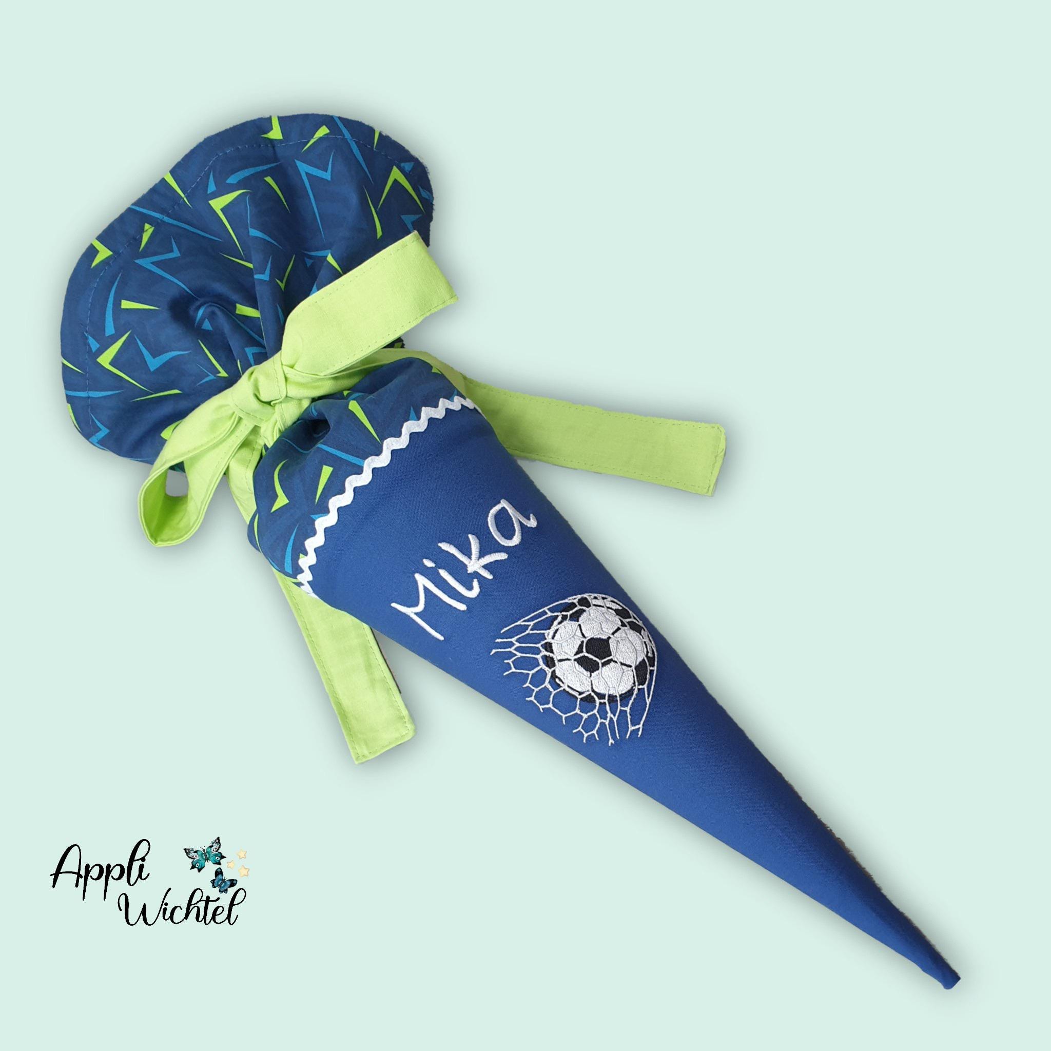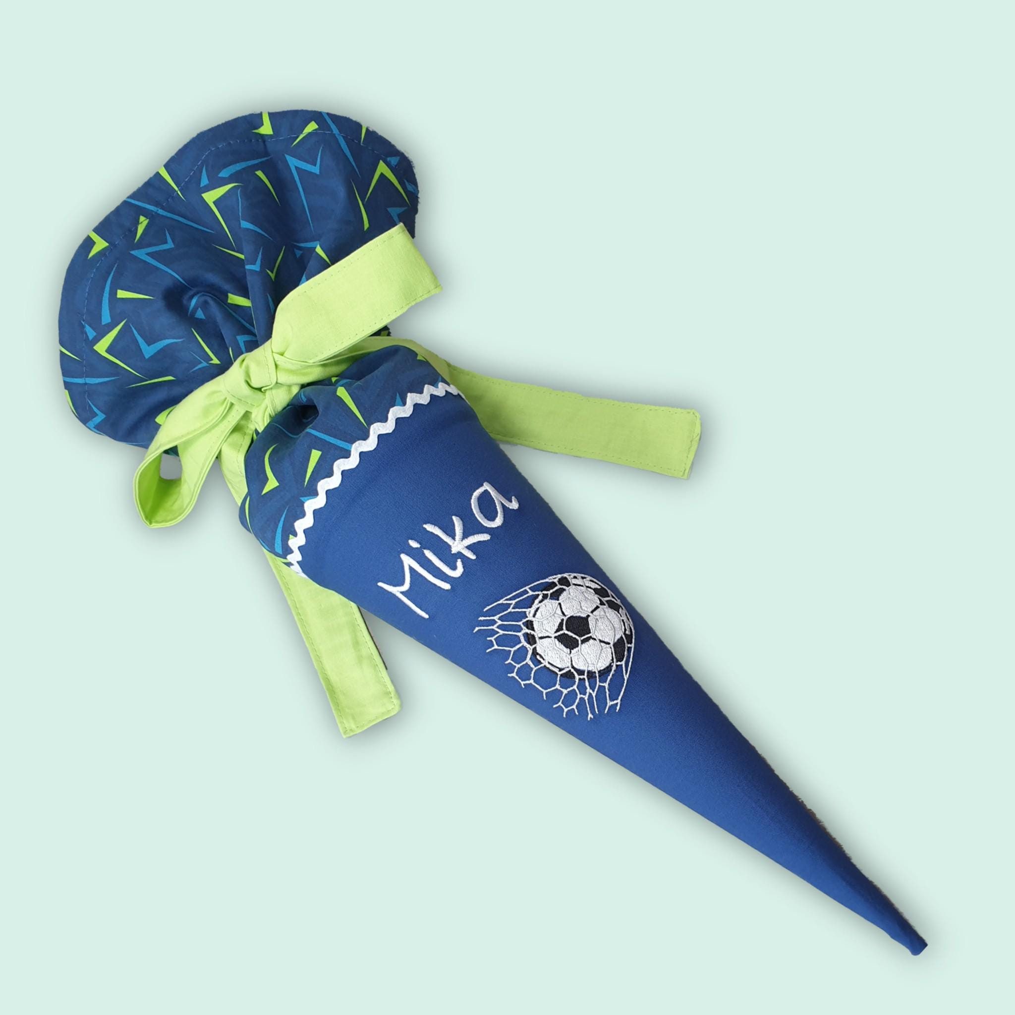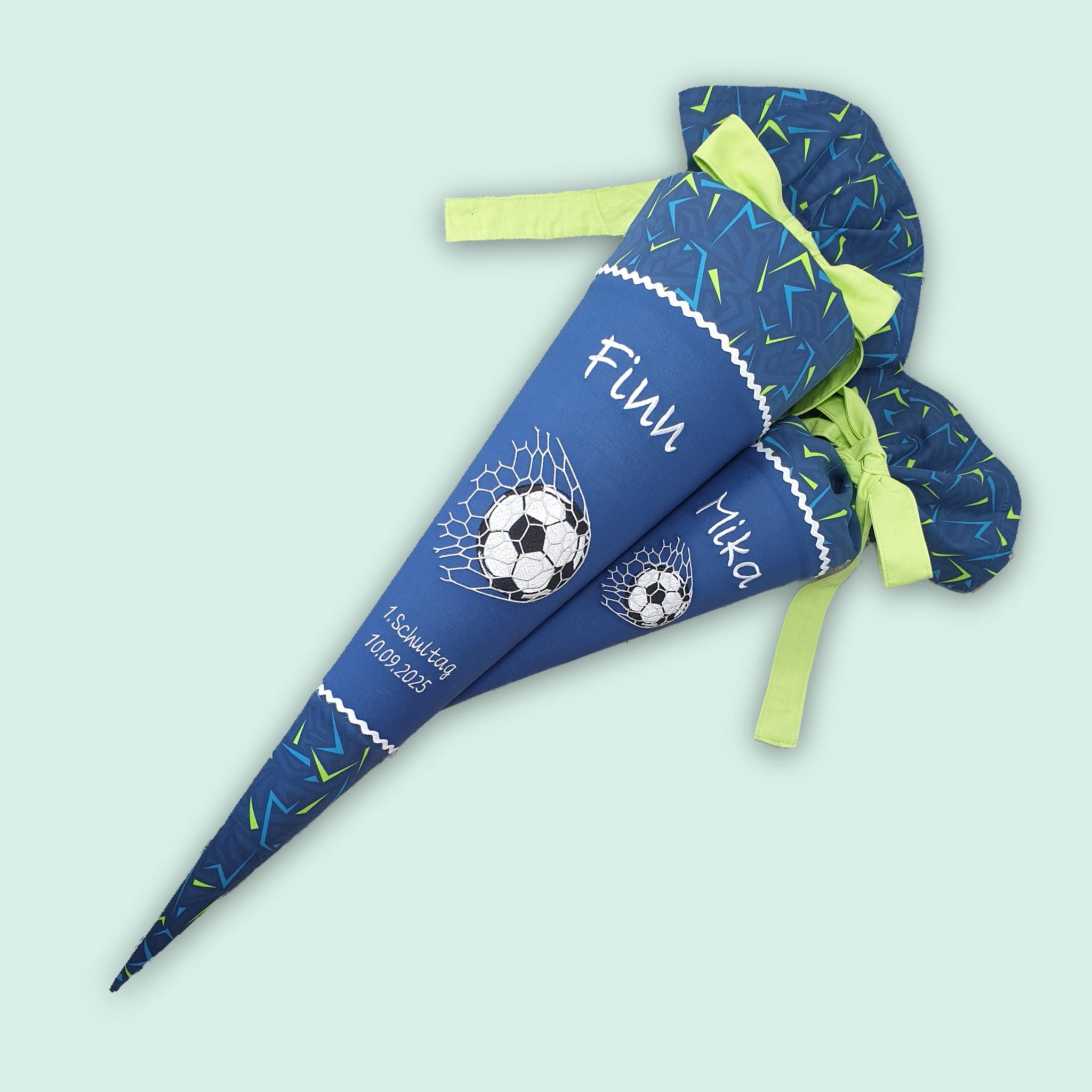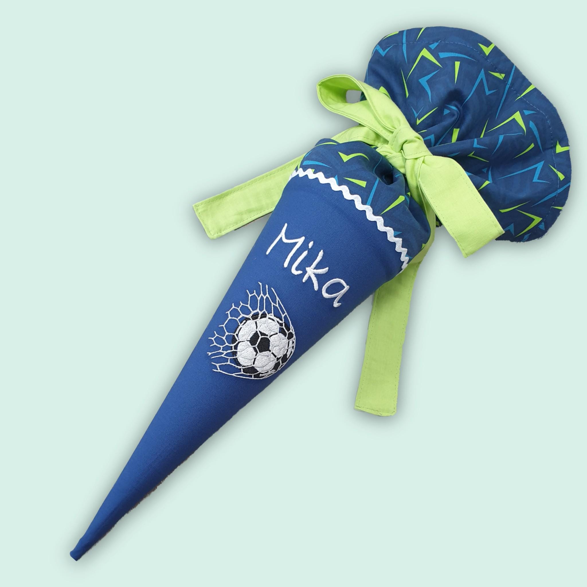 35 cm Geschwistertüte Fussball und Namen farblich auf den Spitzenreitbär Schulranzen abgestimmt.