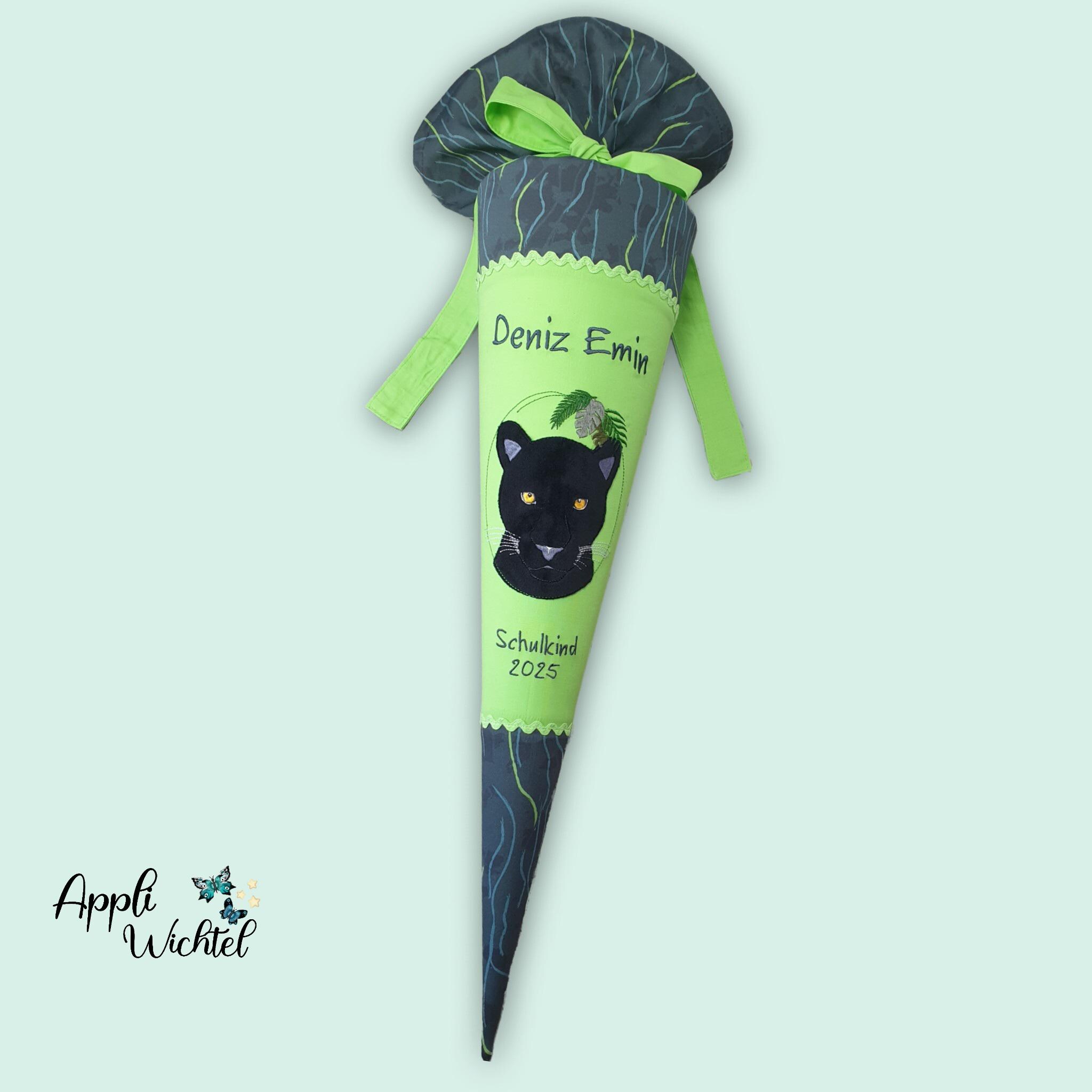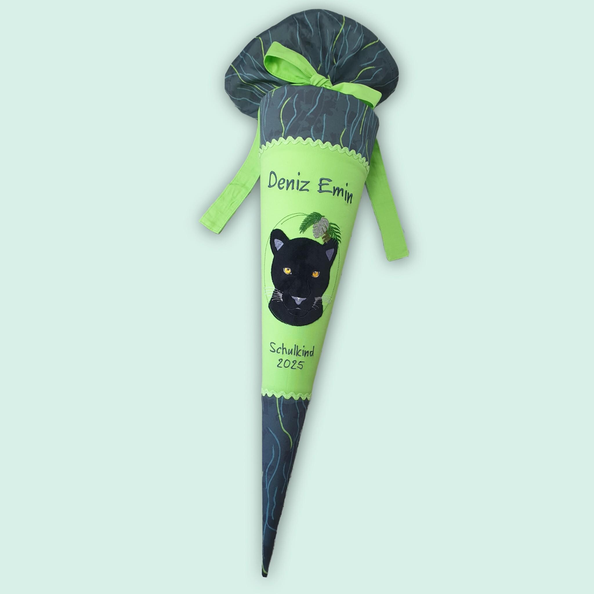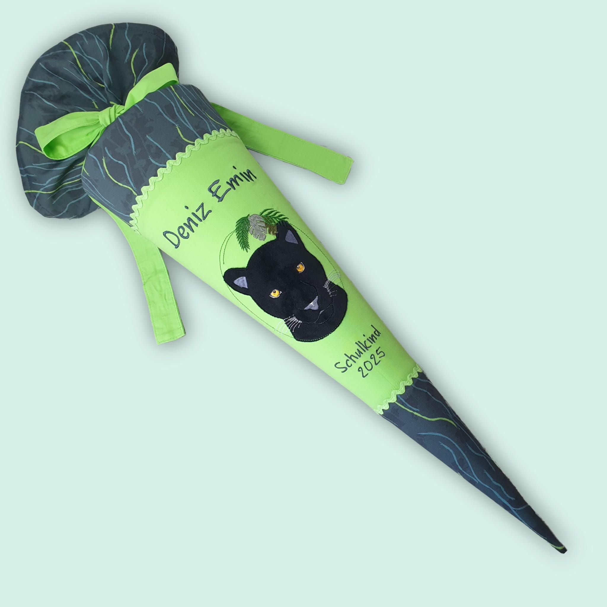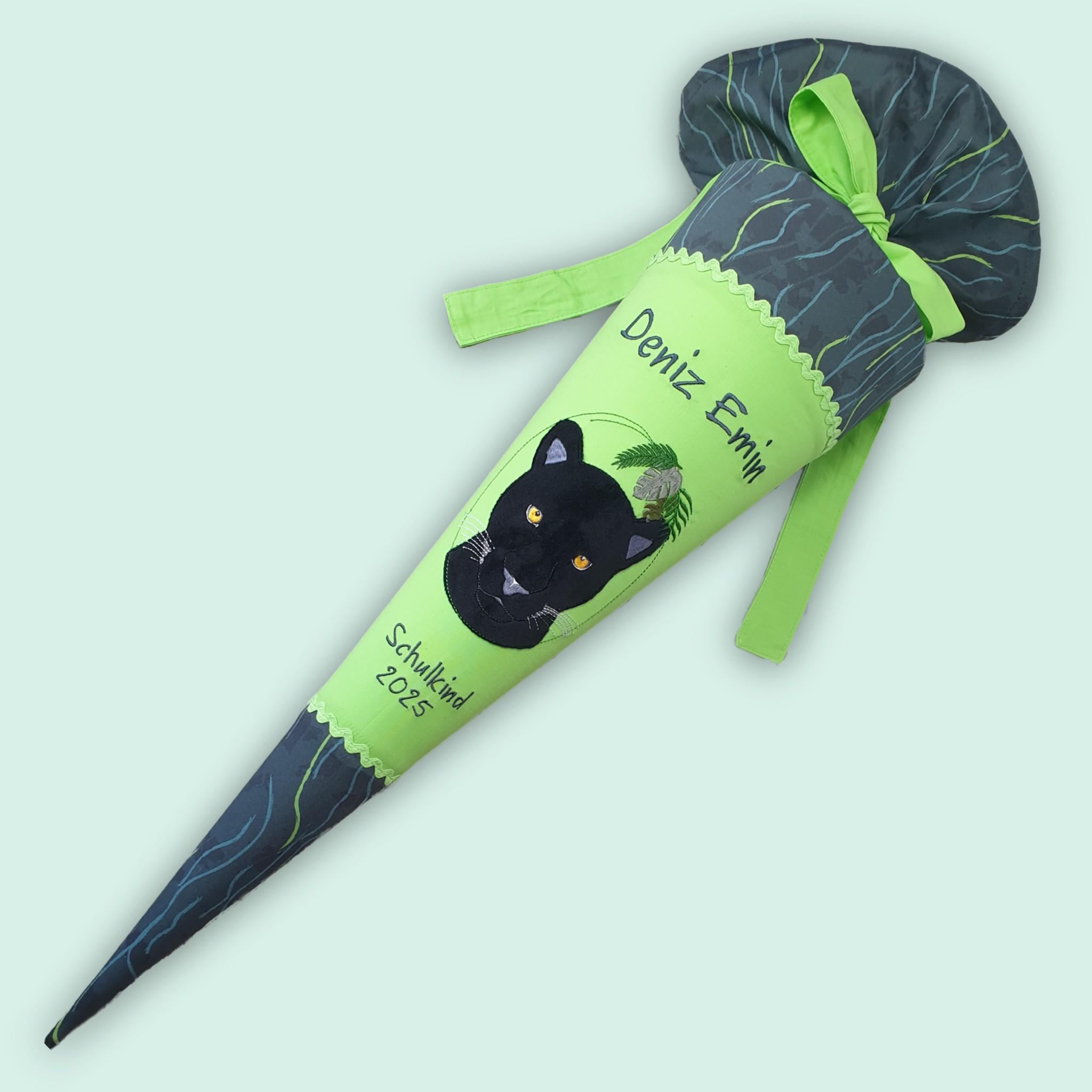 Schultüte mit Panther und Namen farblich auf den Step by Step Danger Cat Chiko Schulranzen abgestimmt.