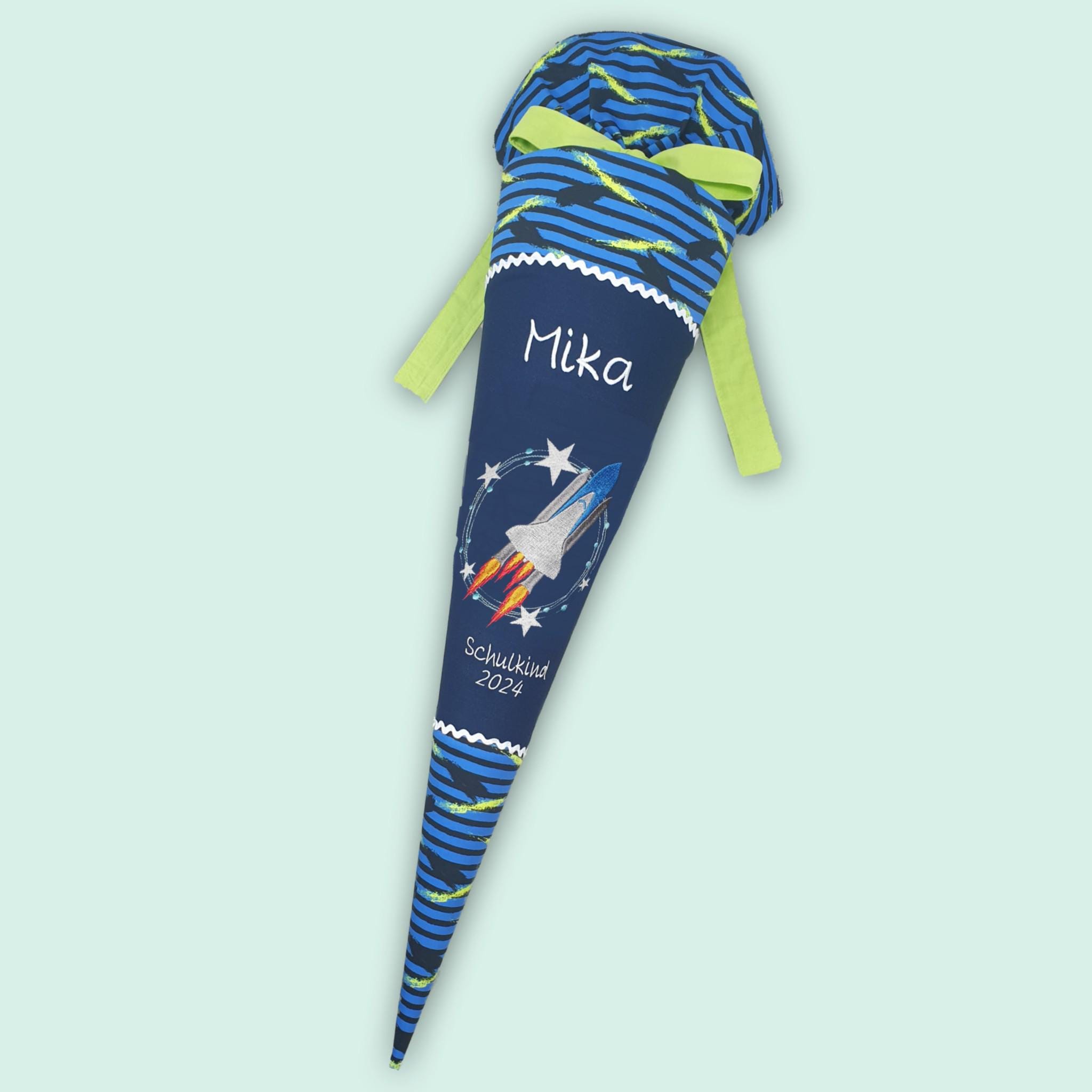 Die Stoffhülle ist aus Baumwollstoffen gefertigt und mindestens 20 cm länger als die eigentliche Schultüte, sodass sie perfekt passt und sich gut befüllen und verschließen lässt.