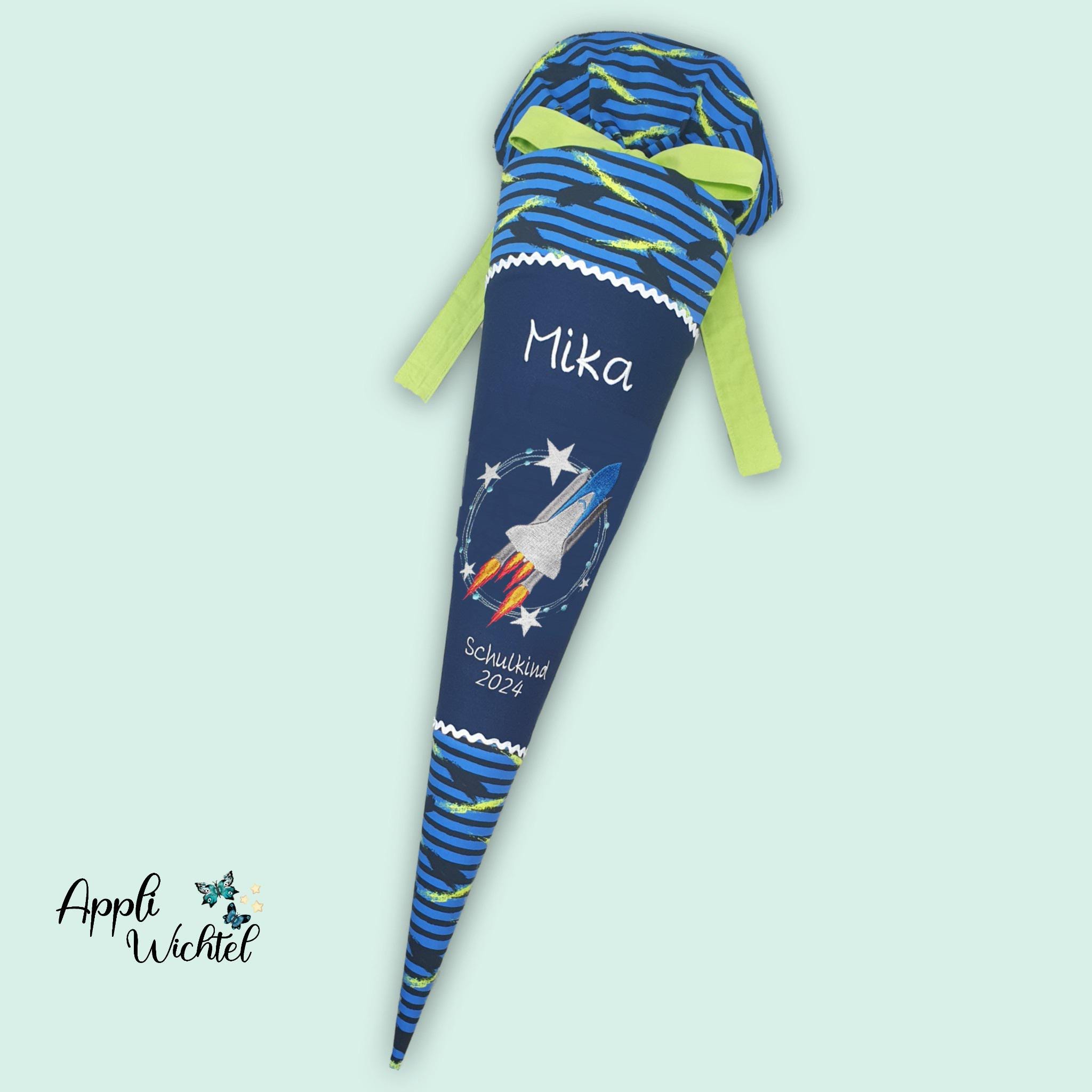 Jede Schultüte wird mit einem gestickten Motiv und dem Namen deines Kindes individuell gestaltet. Auf Wunsch fügen wir auch das Datum des ersten Schultages hinzu.