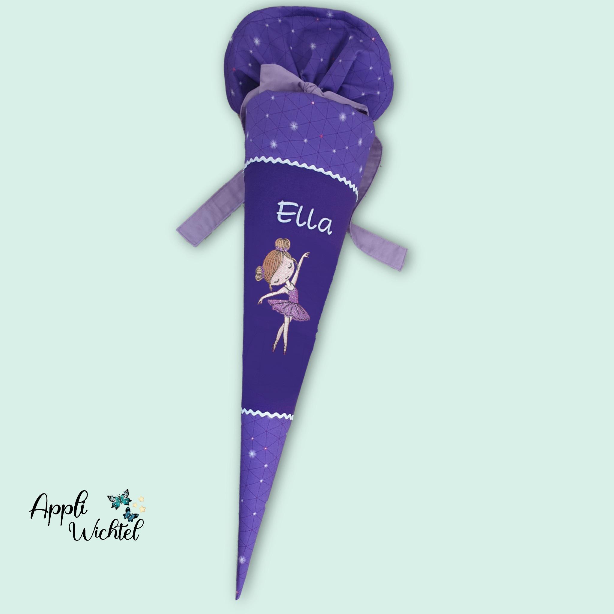 Schultüte mit glitzer Ballerina Tänzerin und Namen farblich auf den Step by step Dreamy Pegasus Schulranzen abgestimmt.