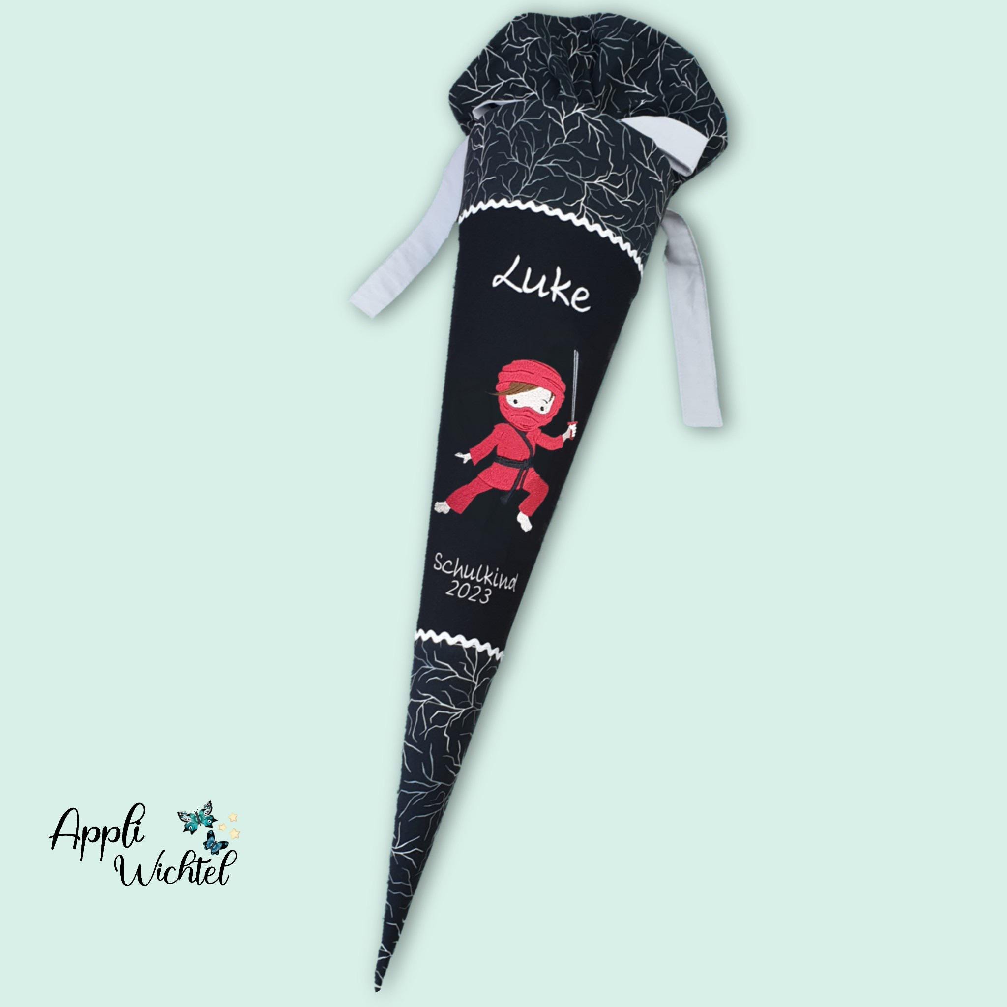 Jede Schultüte wird mit einem gestickten Motiv und dem Namen deines Kindes individuell gestaltet. Auf Wunsch fügen wir auch das Datum des ersten Schultages hinzu.