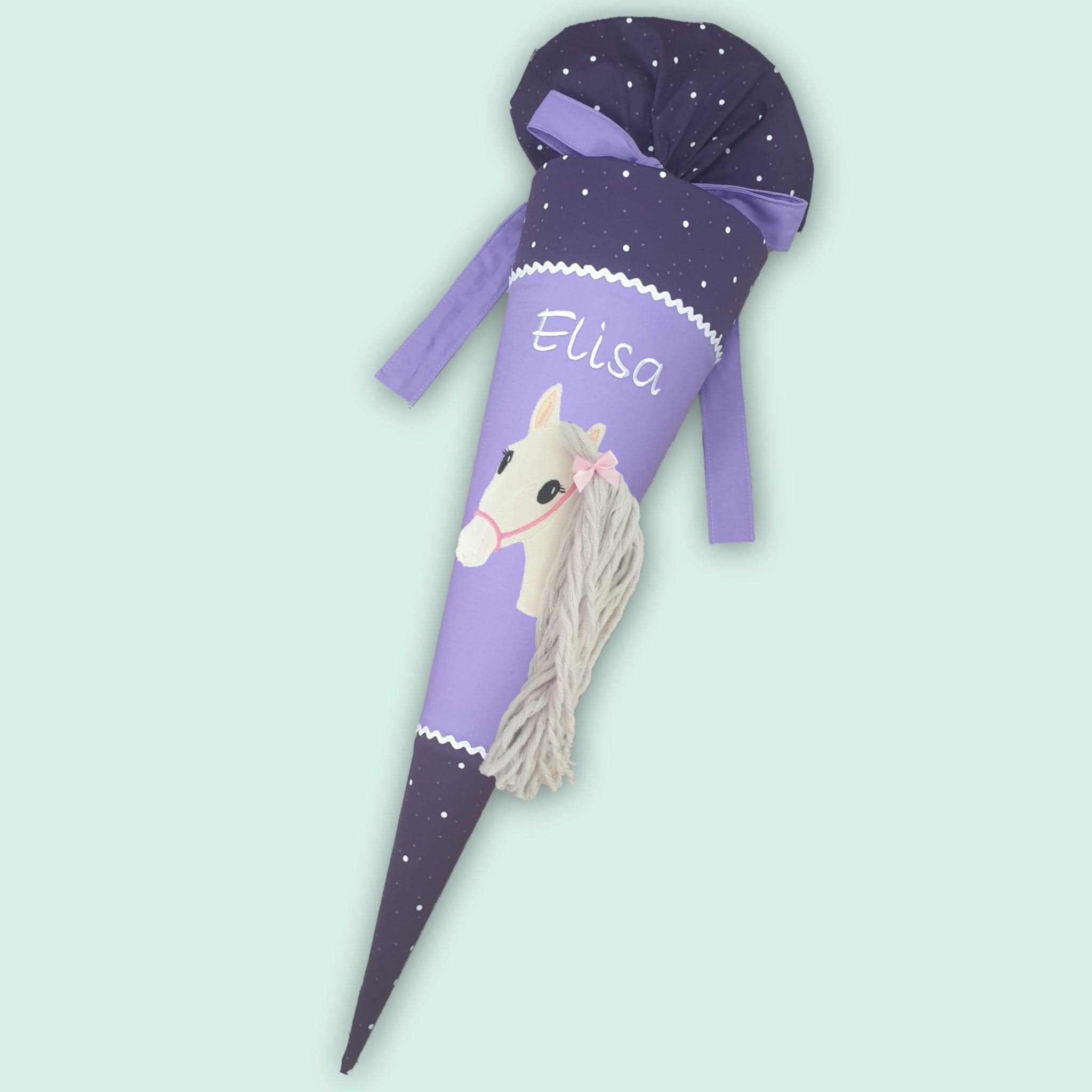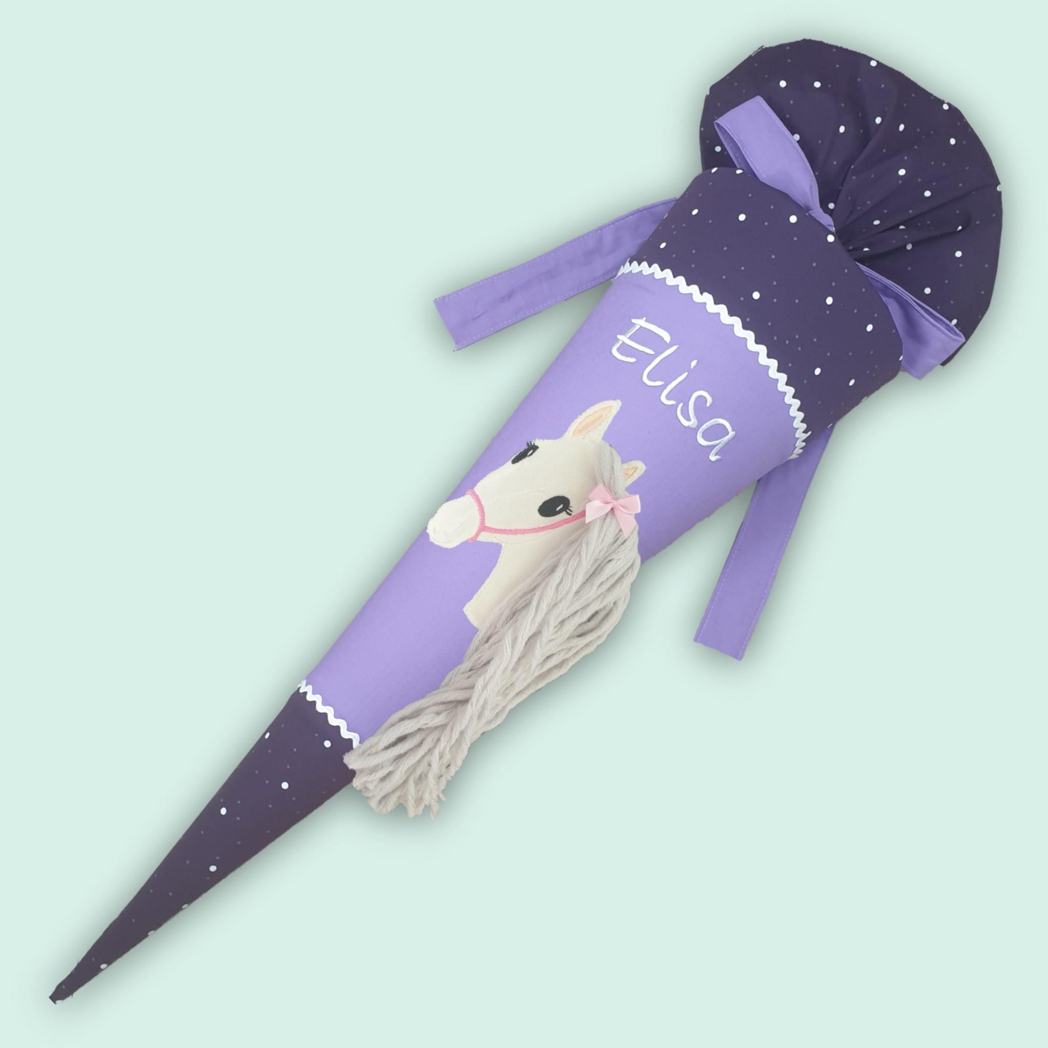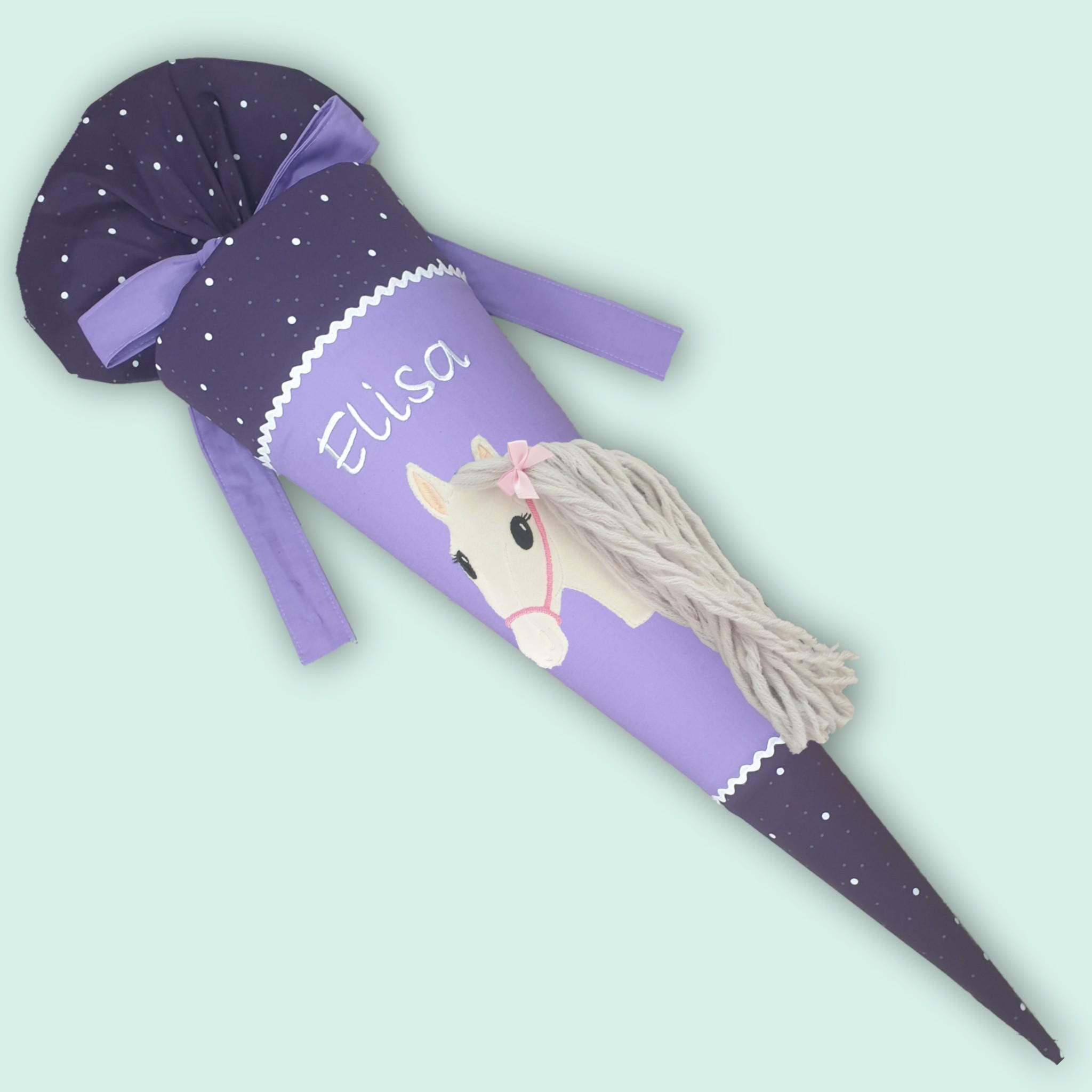 Schultüte mit Pferd und Namen farblich auf den Sternguckbär Schulranzen abgestimmt.