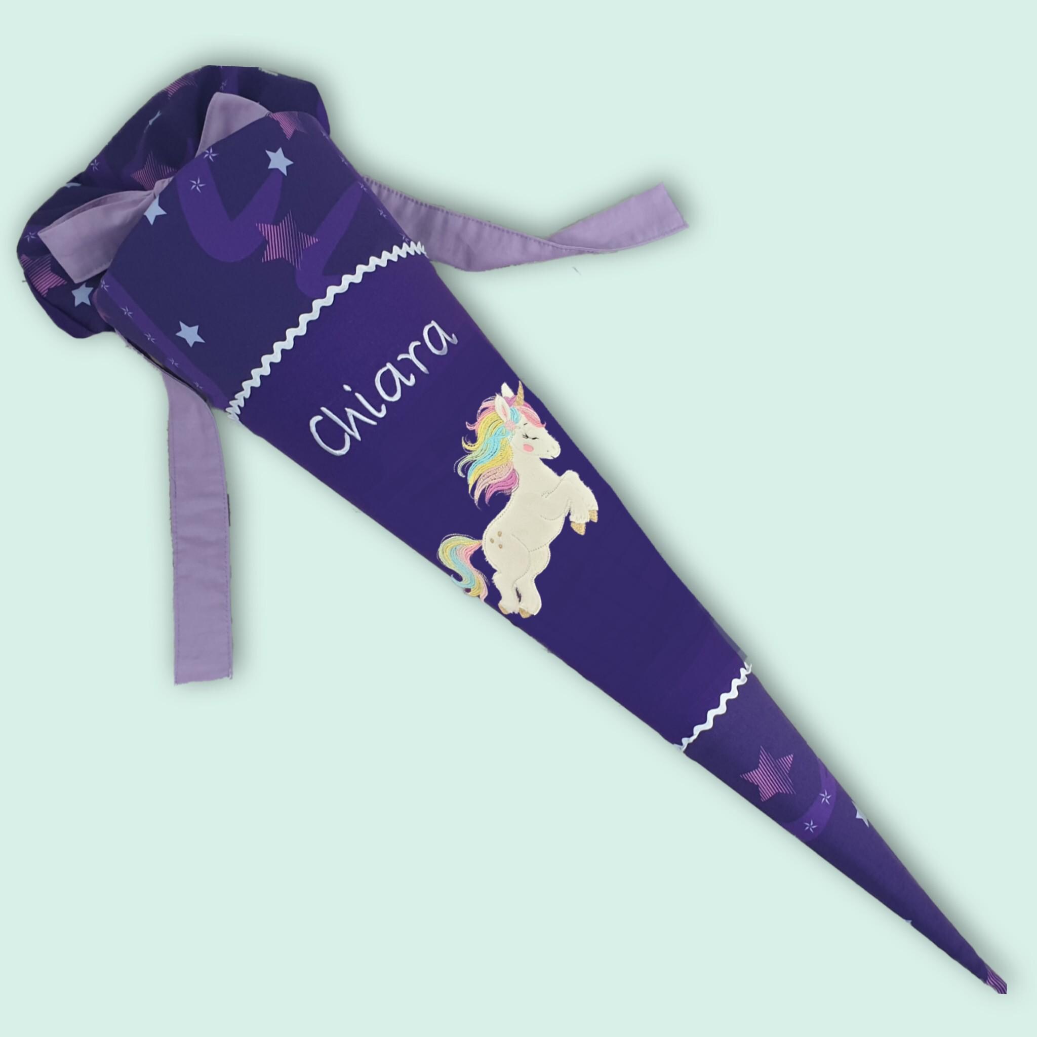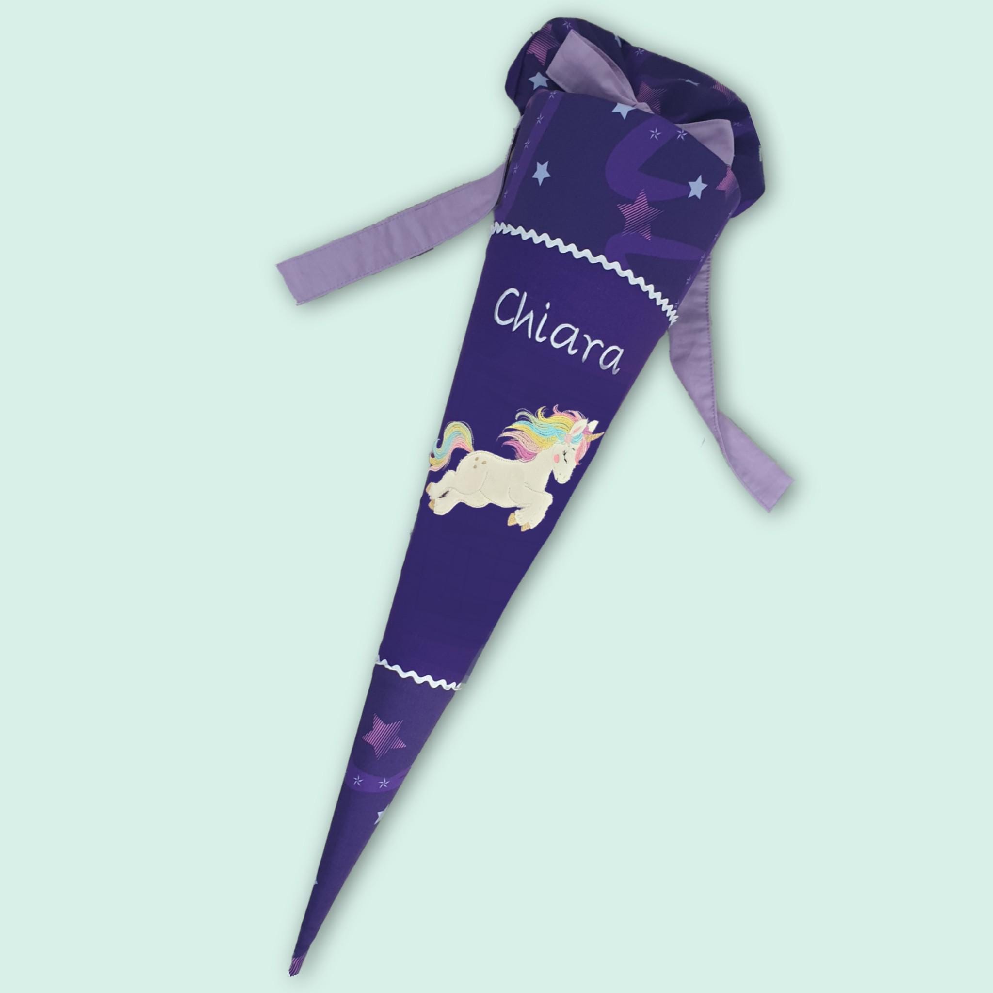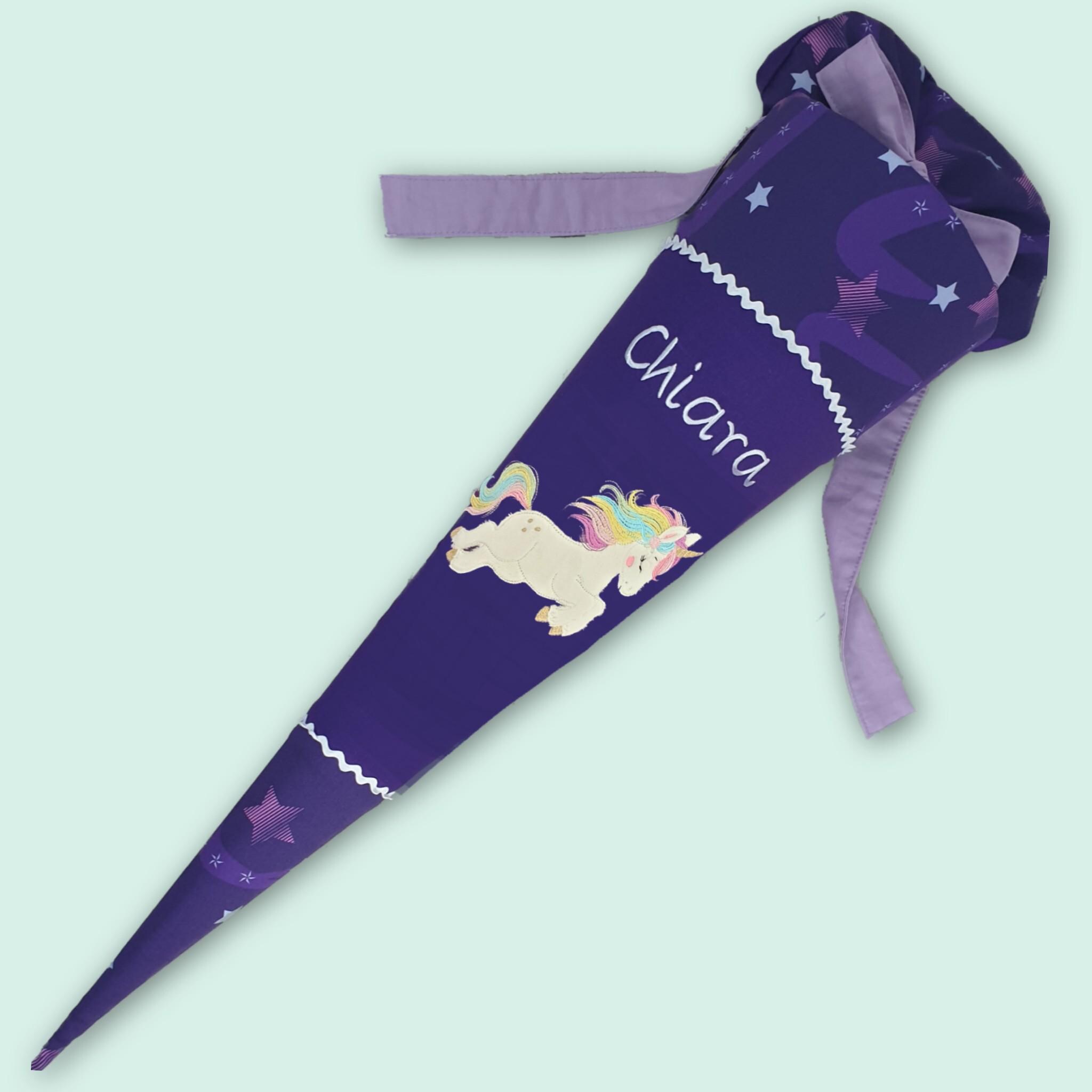 Schultüte mit Einhorn und Namen farblich auf den step by step Pegasus Emily Schulranzen abgestimmt.