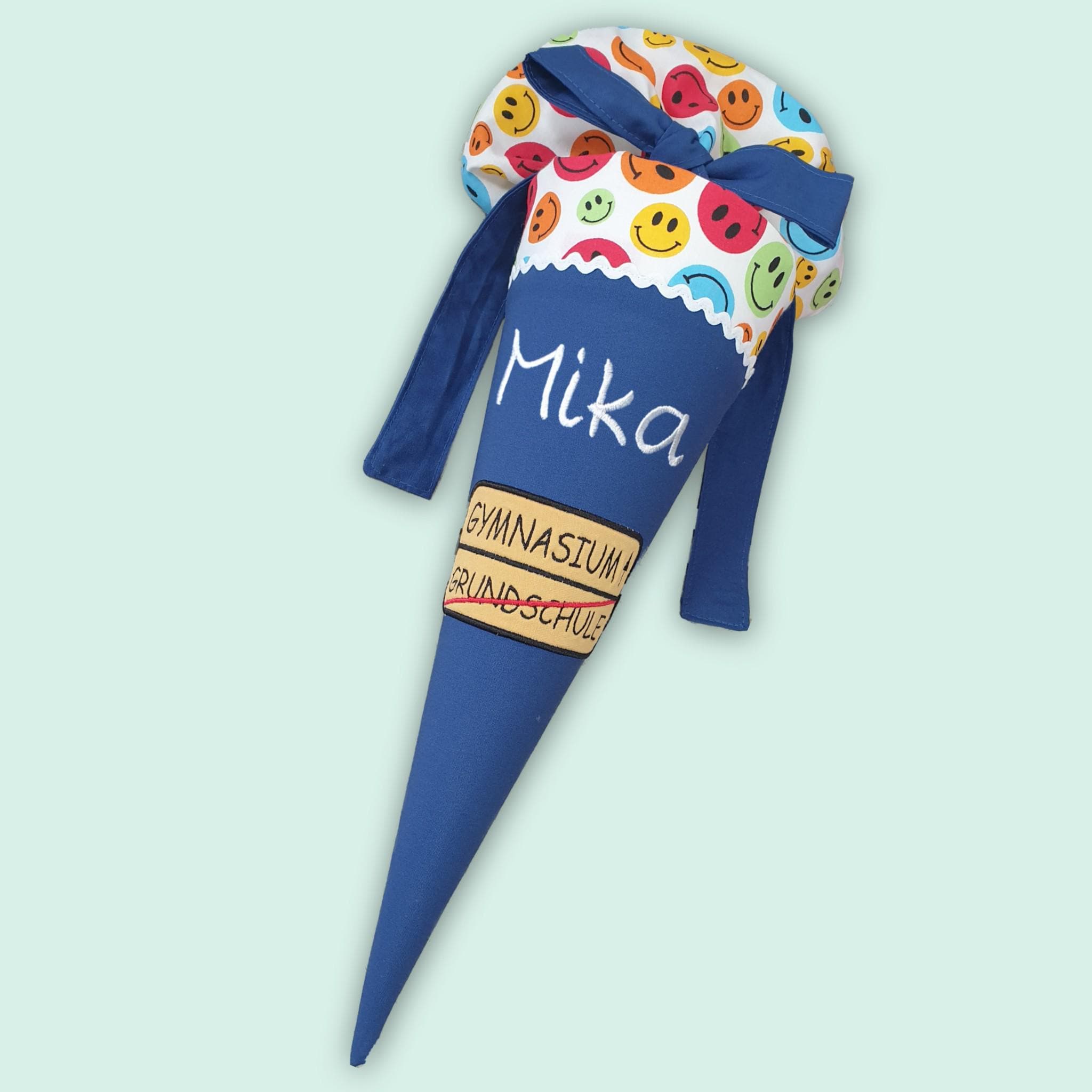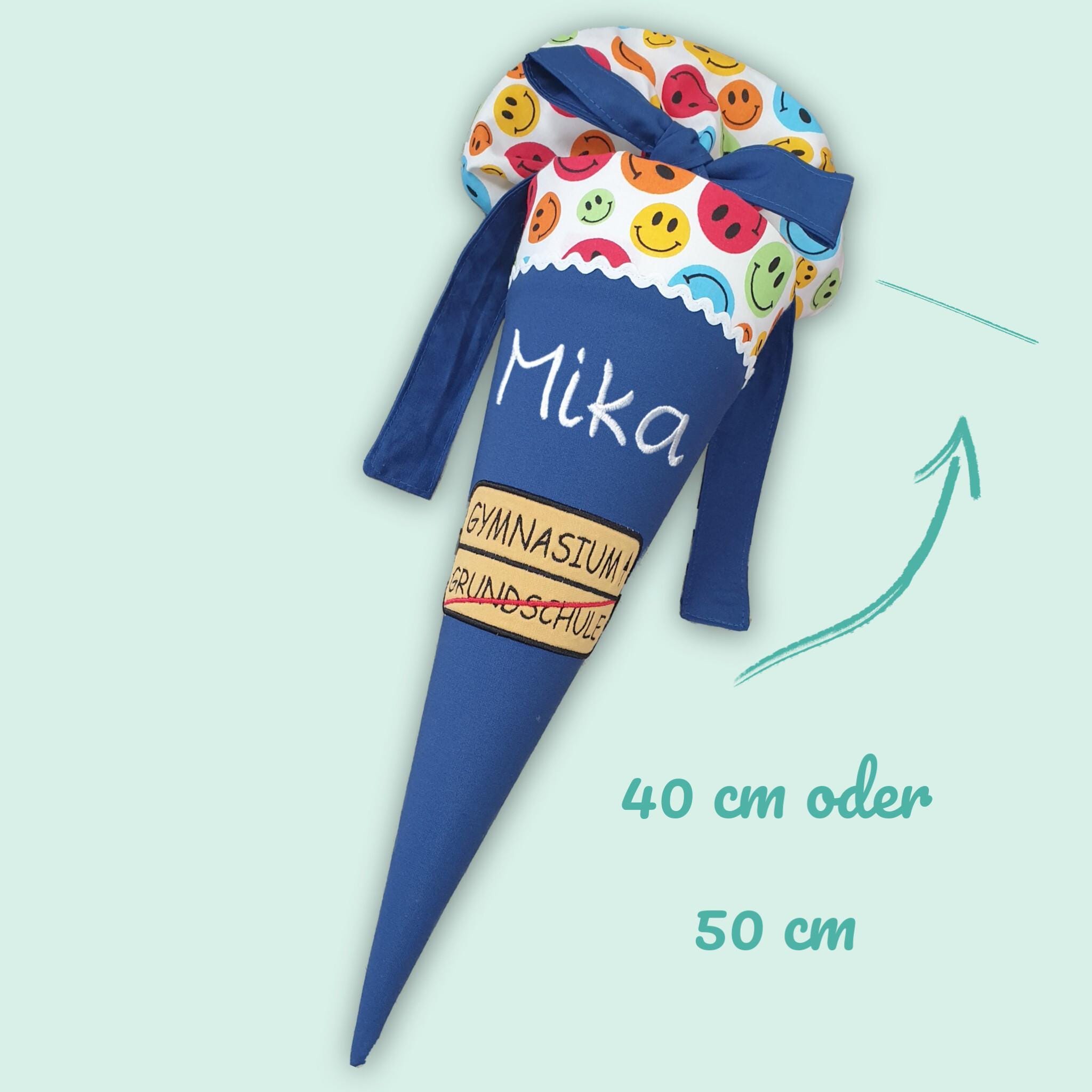40 cm oder 50 cm Schultüte Gymnasium für die 5. Klasse mit Namen und Stoff mit Lachgesichtern :-)