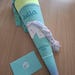 Schultüte mit Wunschmotiv (die Schmetterling leuchtet im Dunkeln) und Namen farblich auf den Zaubärwelt abgestimmt.