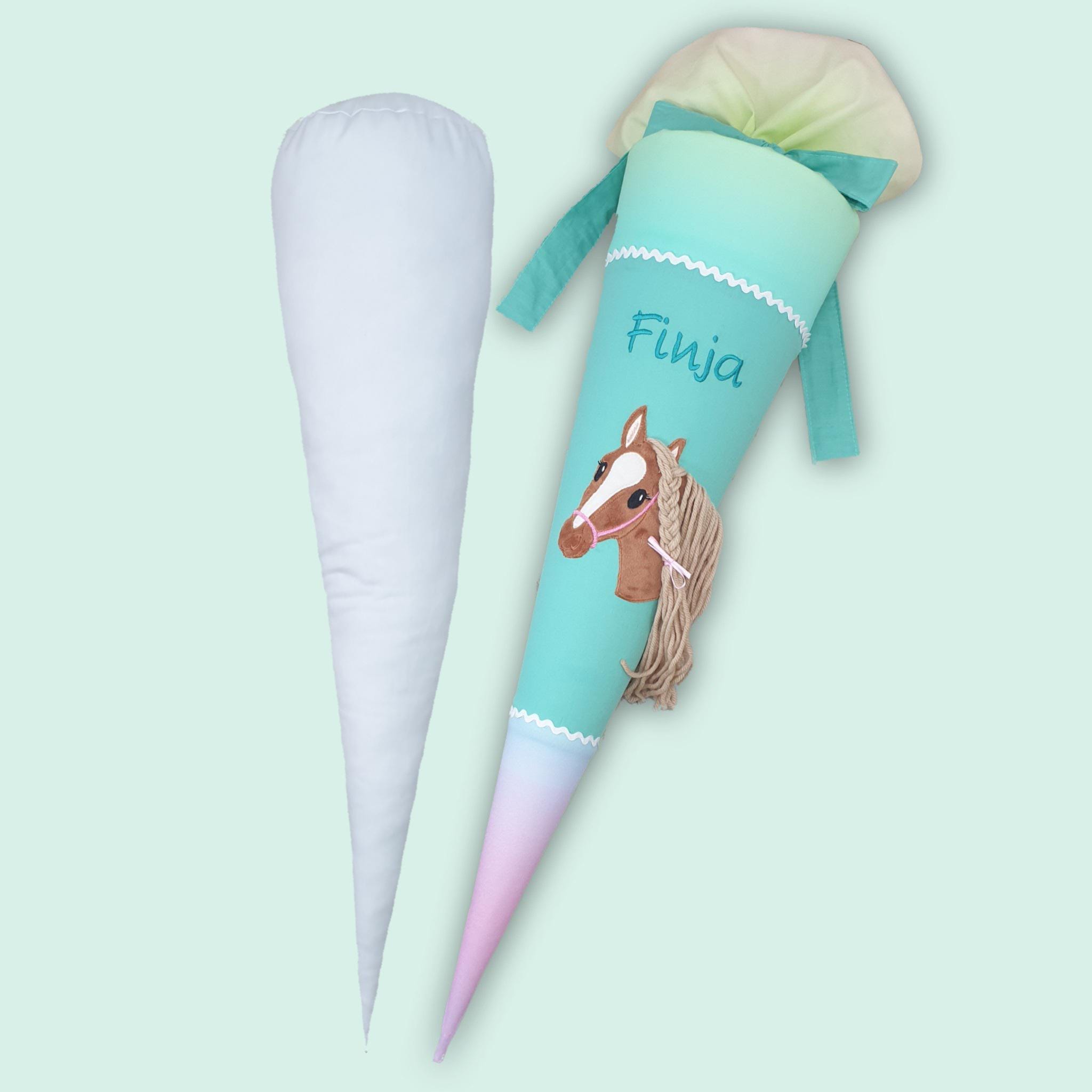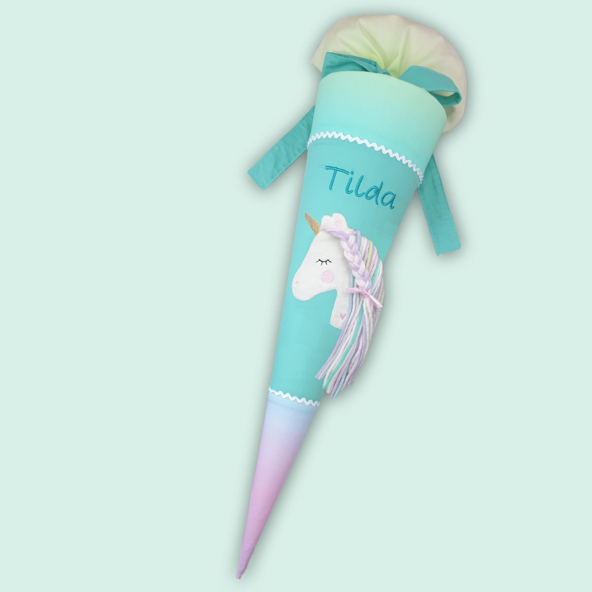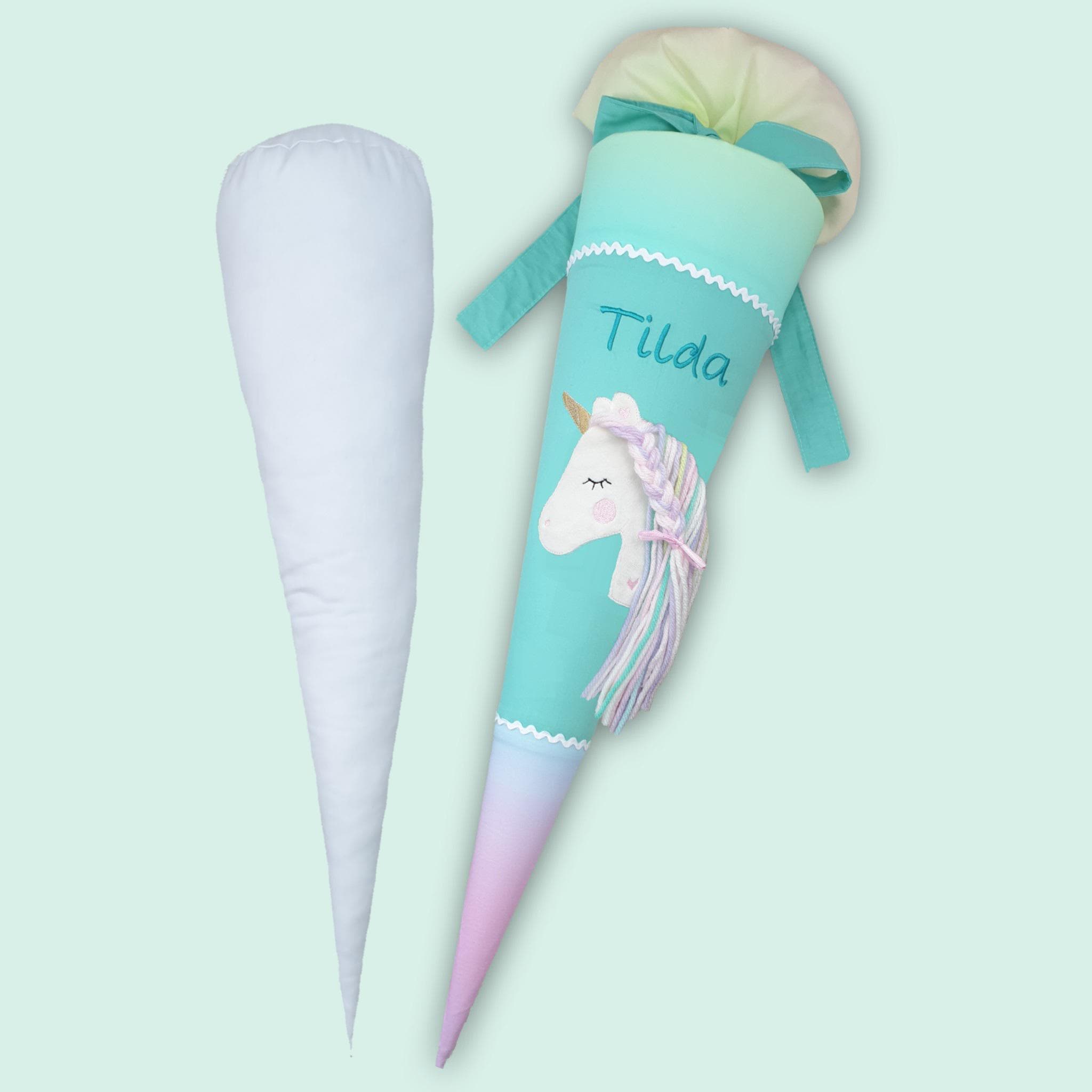 70 cm Schultüte Regenbogen Schmetterling Einhorn Pferd (Schmetterling leuchtet im Dunkeln) passend zum Zaubärwelt Schulranzen