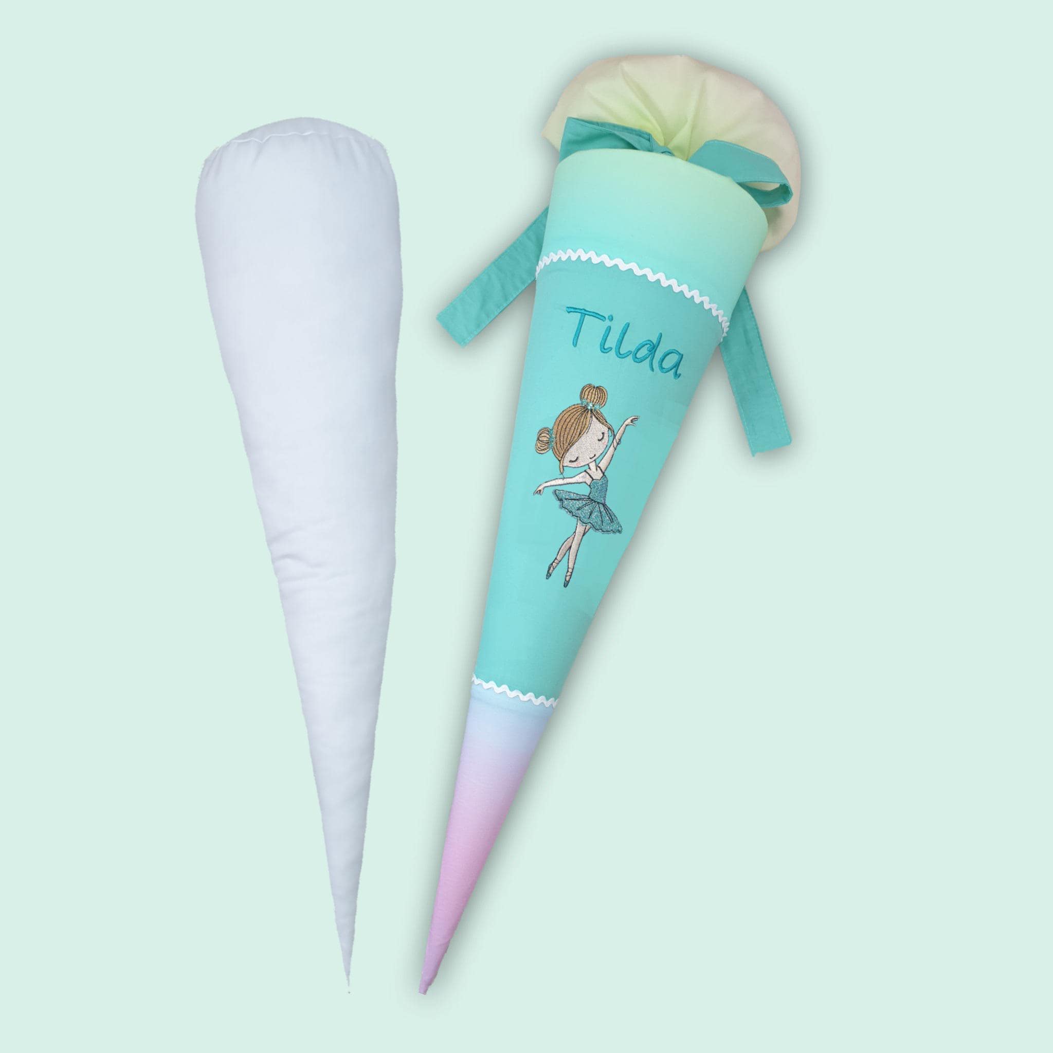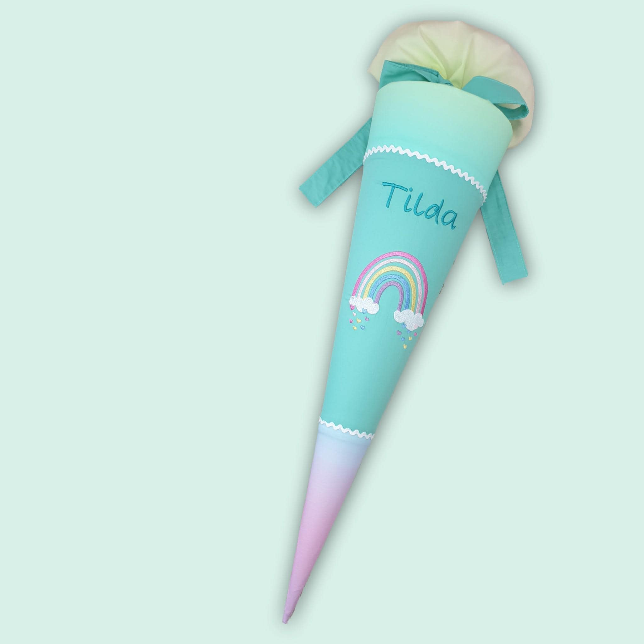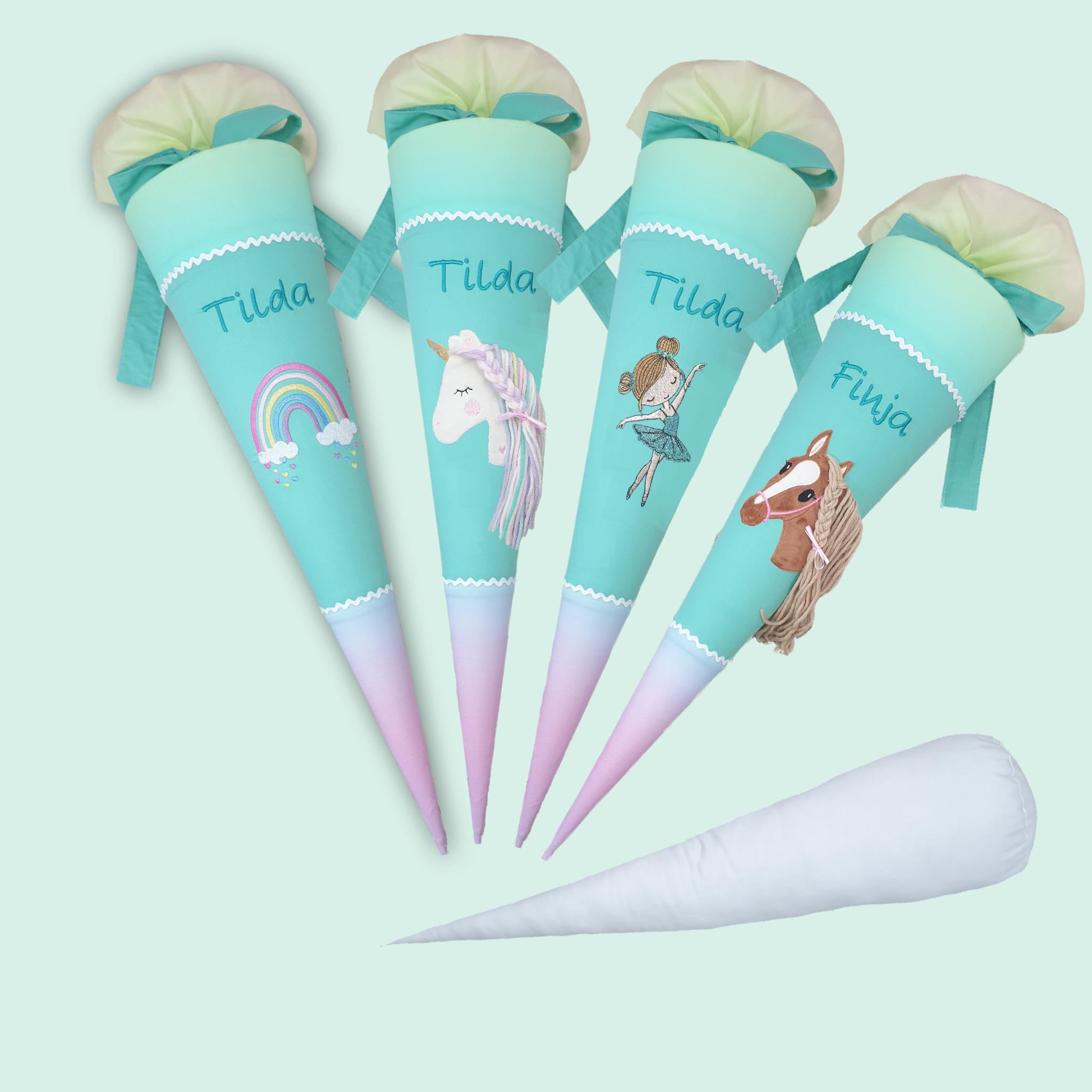 Jede Schultüte wird mit einem gestickten Motiv und dem Namen deines Kindes individuell gestaltet. Auf Wunsch fügen wir auch das Datum des ersten Schultages hinzu.