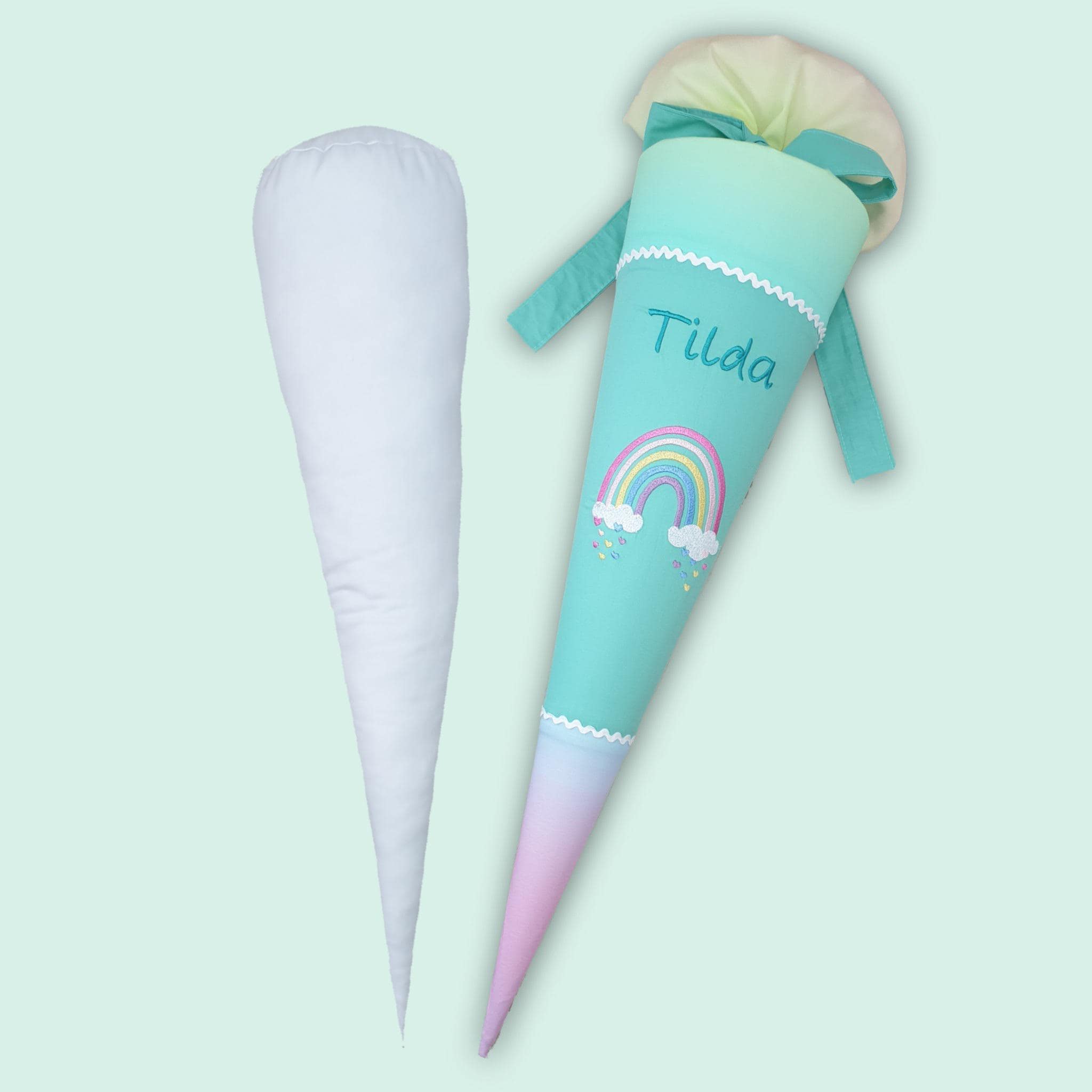 Die Stoffhülle ist aus Baumwollstoffen gefertigt und mindestens 20 cm länger als die eigentliche Schultüte, sodass sie perfekt passt und sich gut befüllen und verschließen lässt.