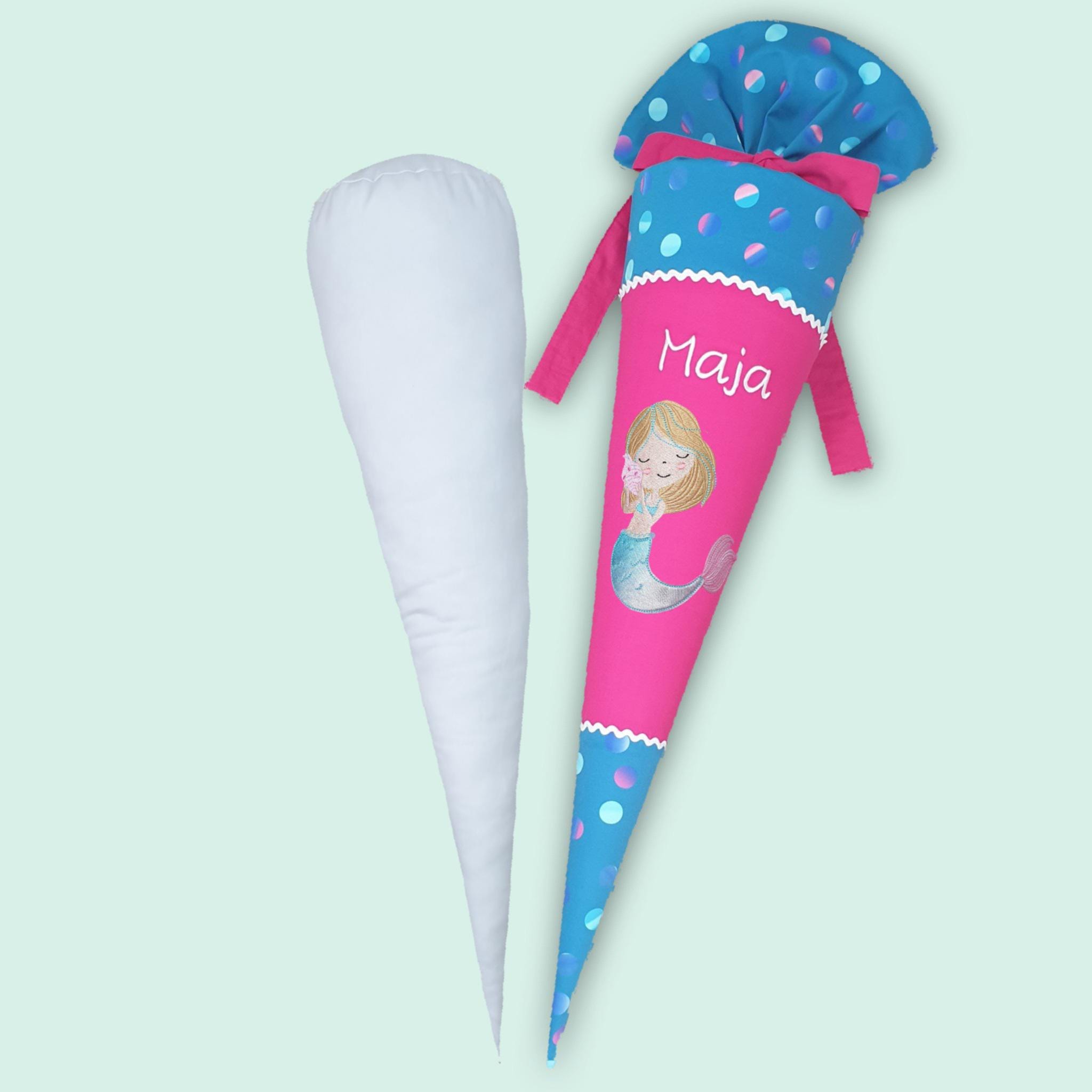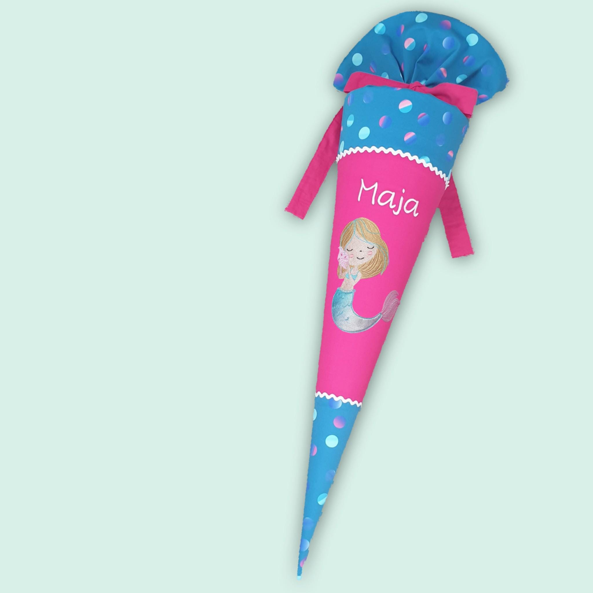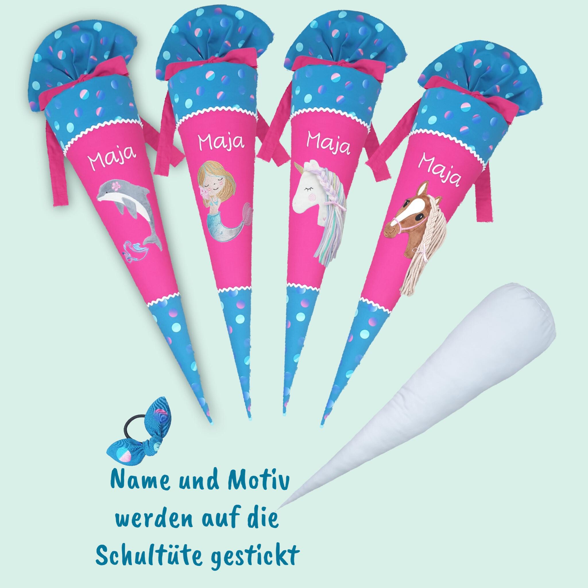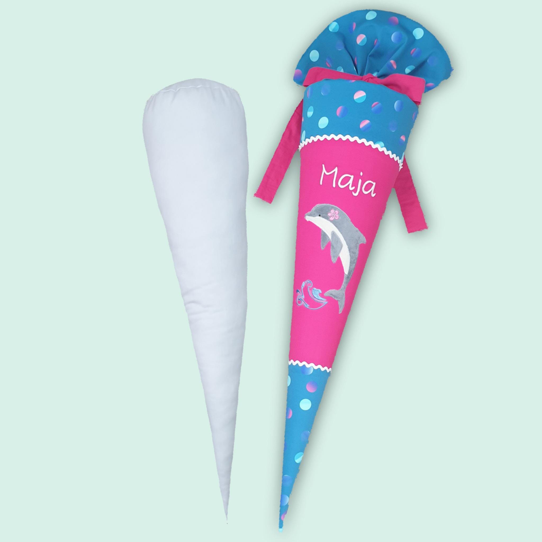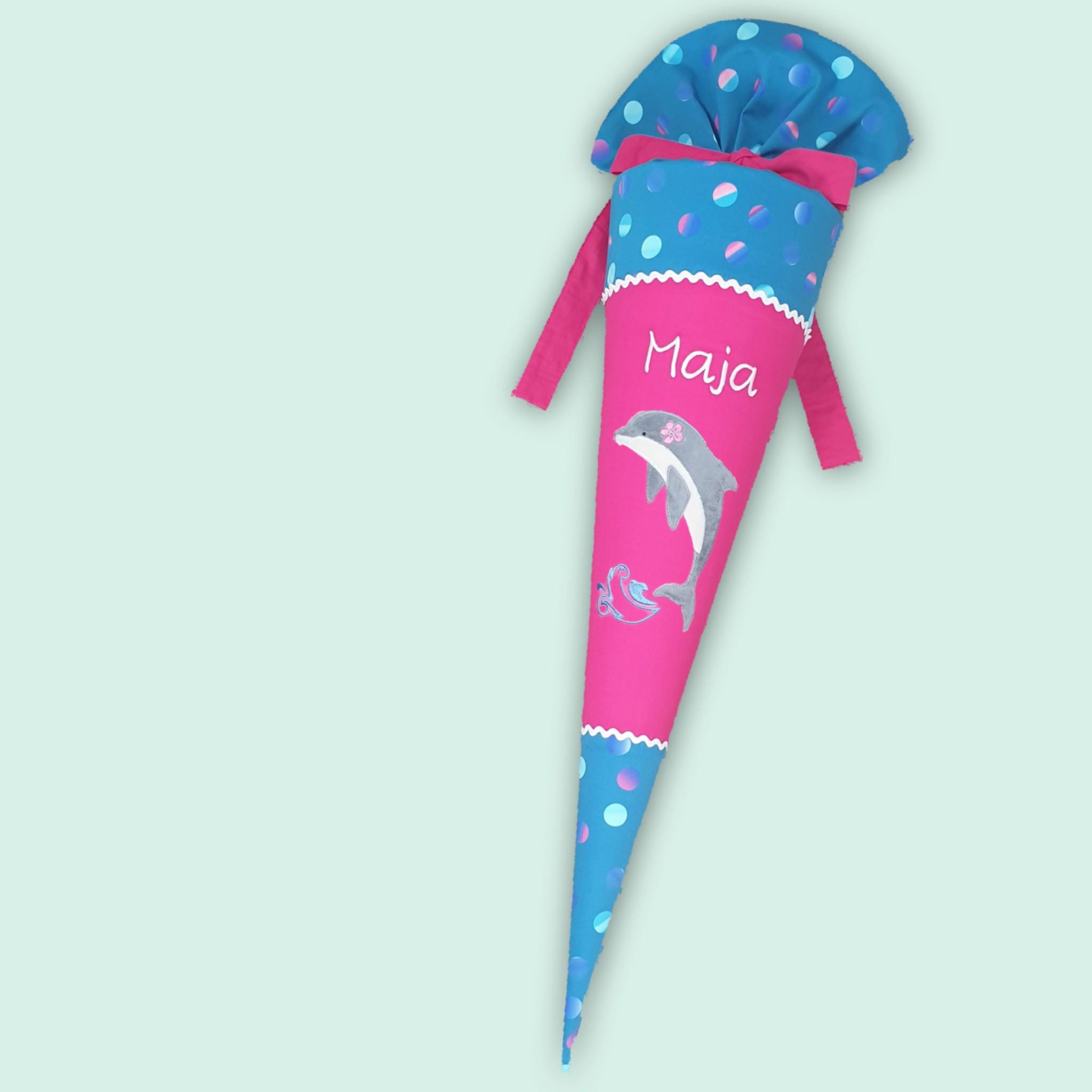 Schultüte mit Wunschmotiv und Namen farblich auf den Step by step Dolphin Finja abgestimmt.