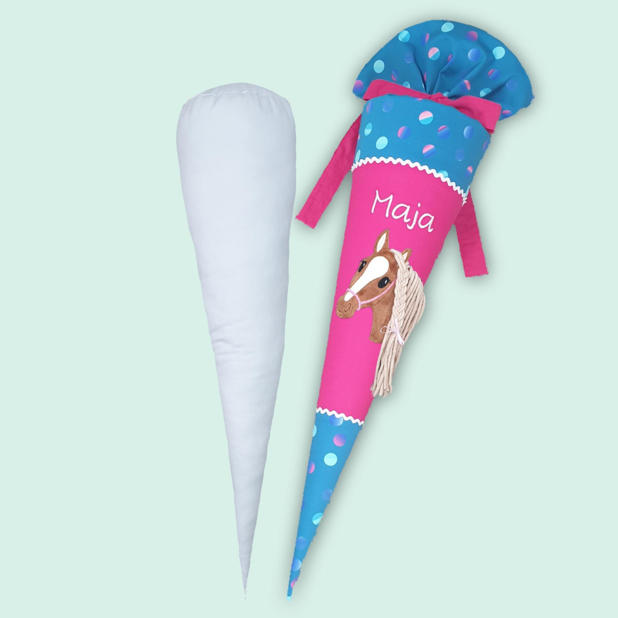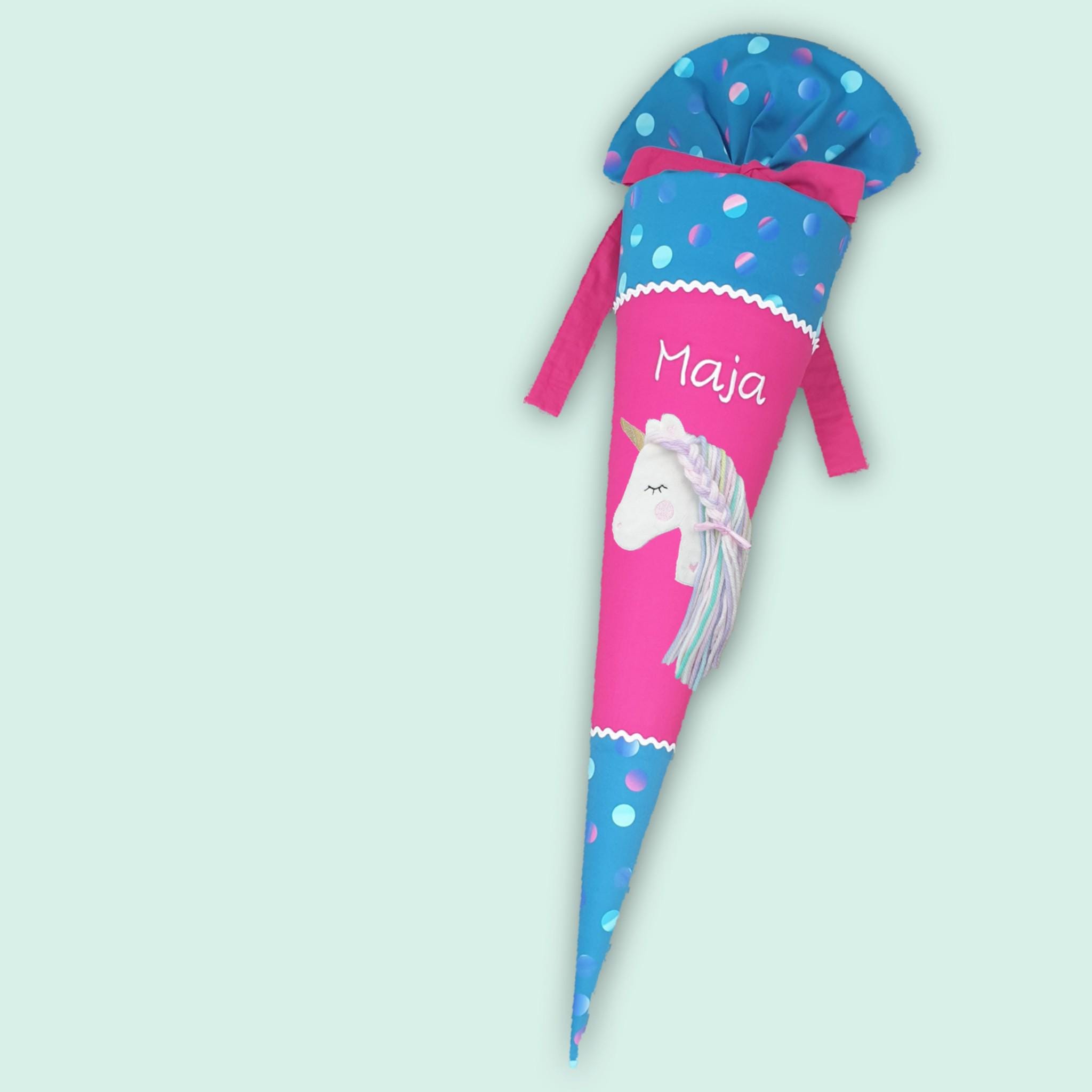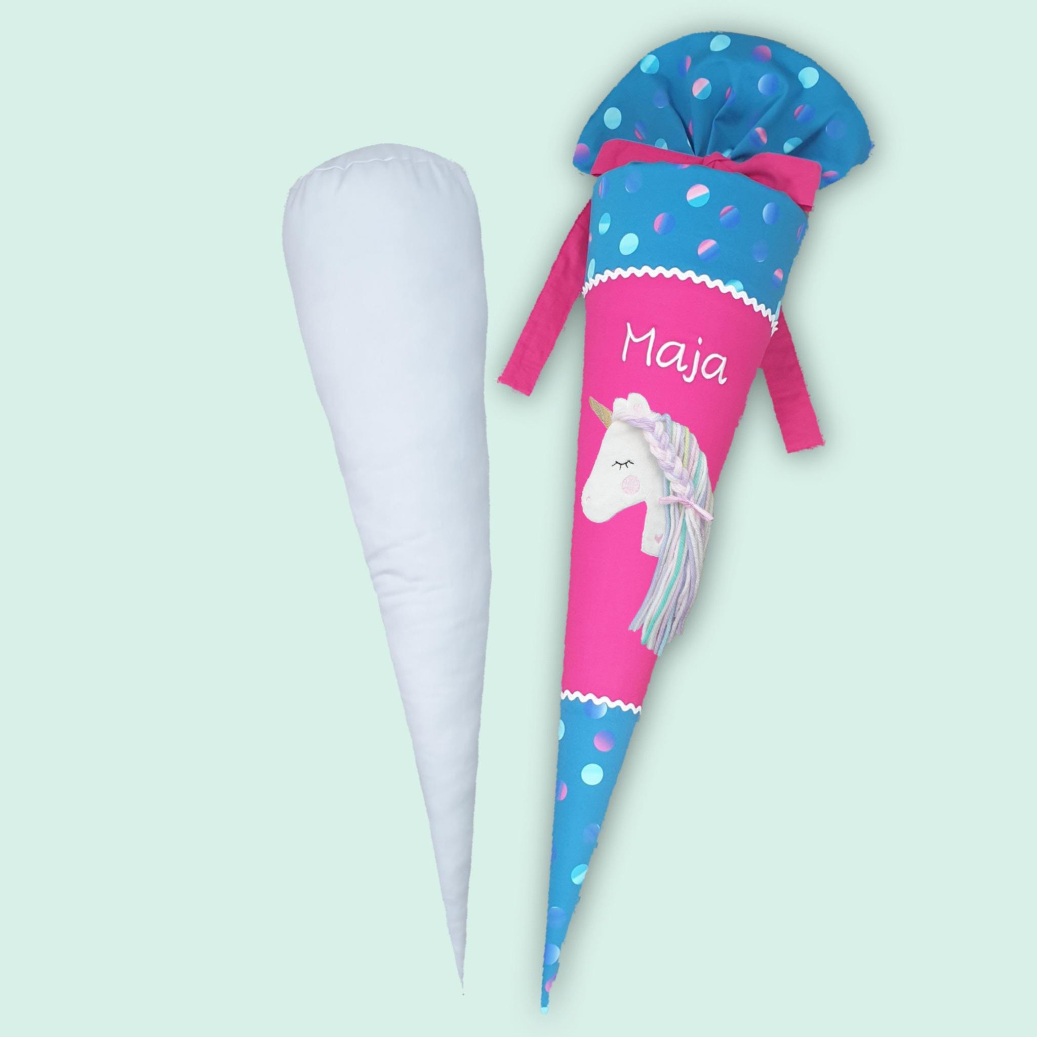 Die Stoffhülle ist aus Baumwollstoffen gefertigt und mindestens 20 cm länger als die eigentliche Schultüte, sodass sie perfekt passt und sich gut befüllen und verschließen lässt.