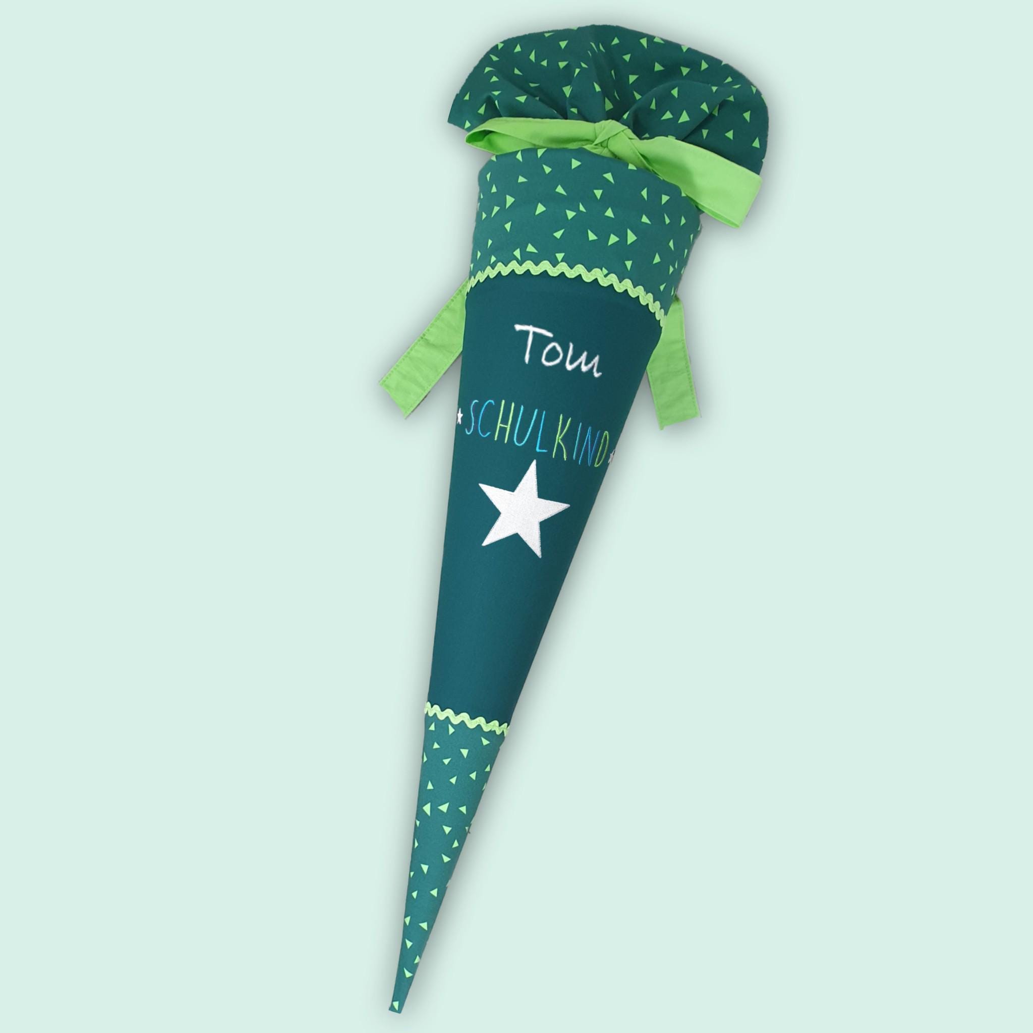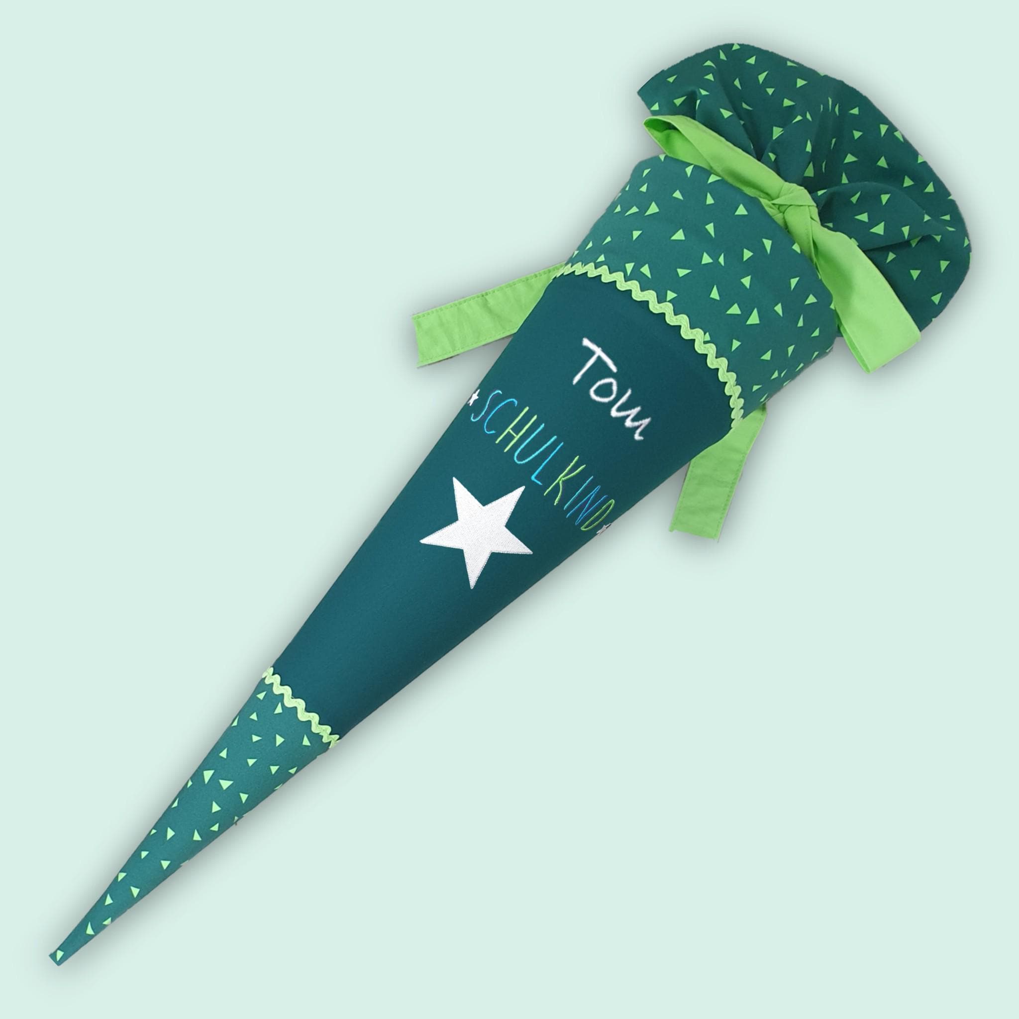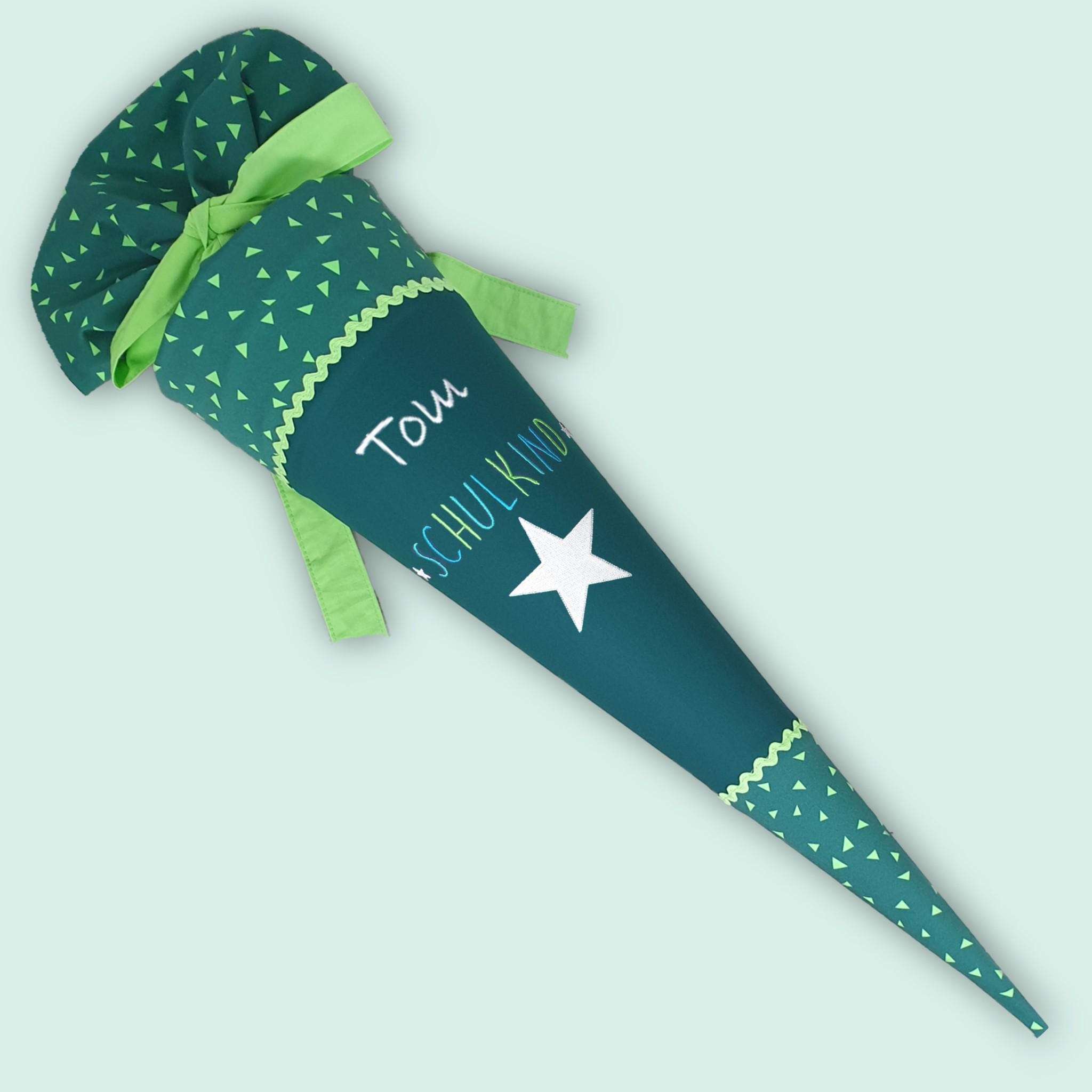 Die Stoffhülle ist aus Baumwollstoffen gefertigt und mindestens 20 cm länger als die eigentliche Schultüte, sodass sie perfekt passt und sich gut befüllen und verschließen lässt.