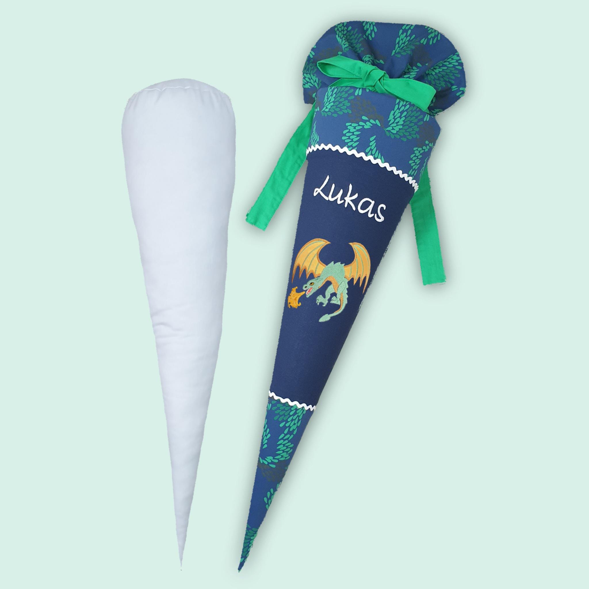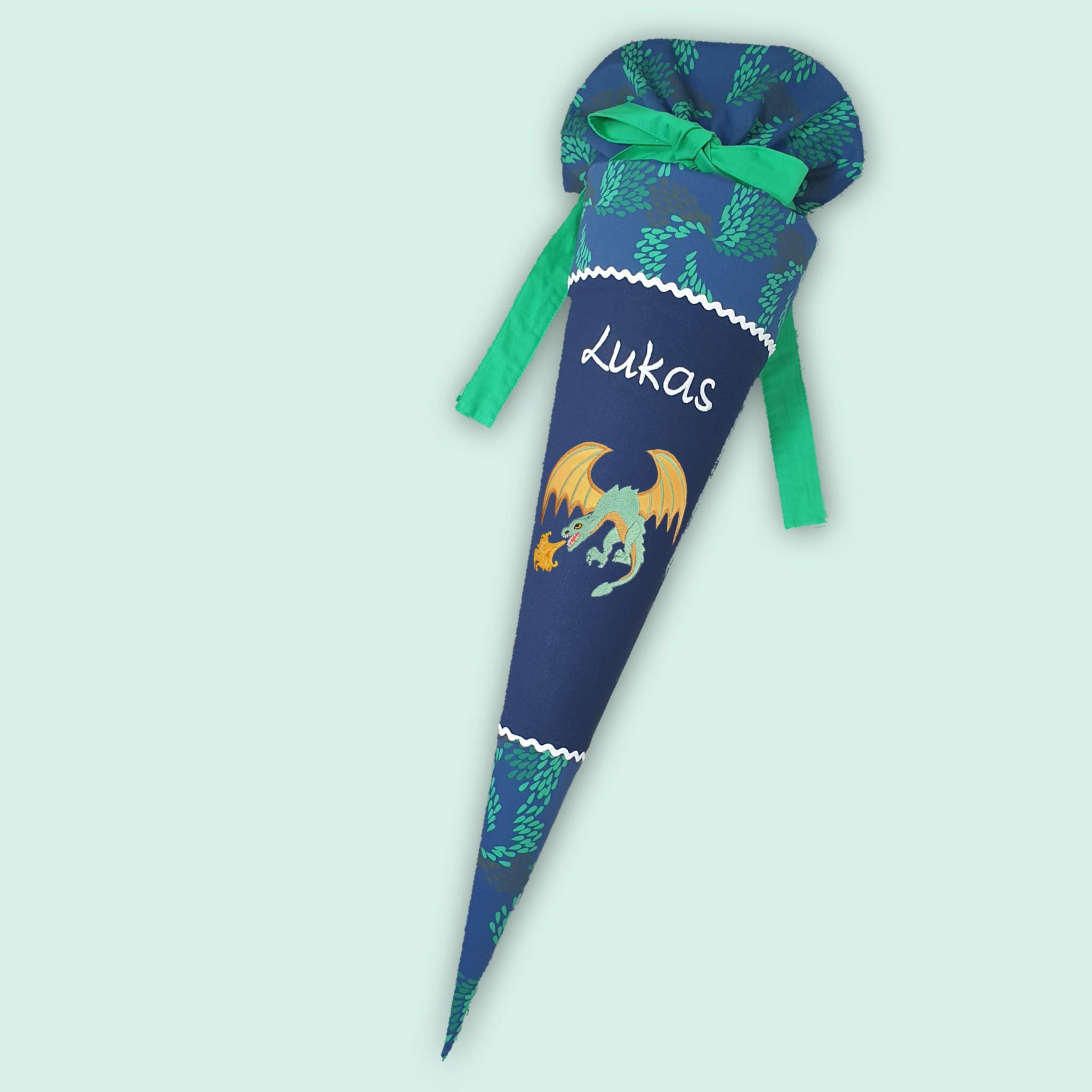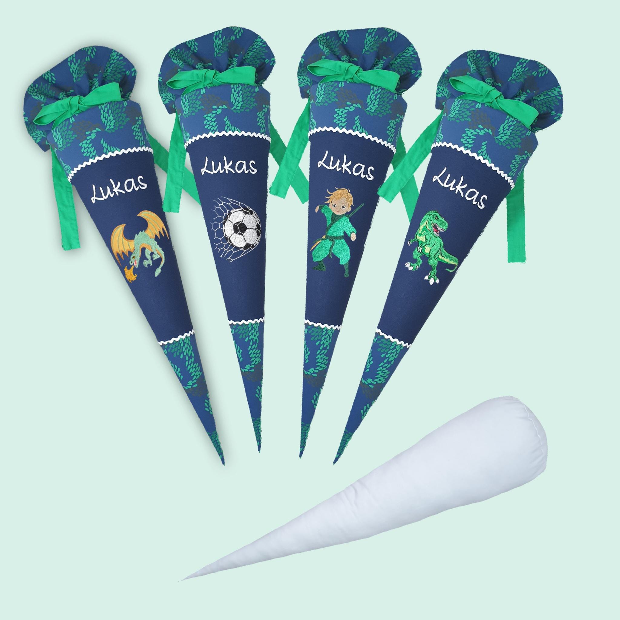 Schultüte mit Drache, Dino Dinosaurier, Fussball oder Ninja und Namen passend zum Dachenbezwingbär Schulranzen