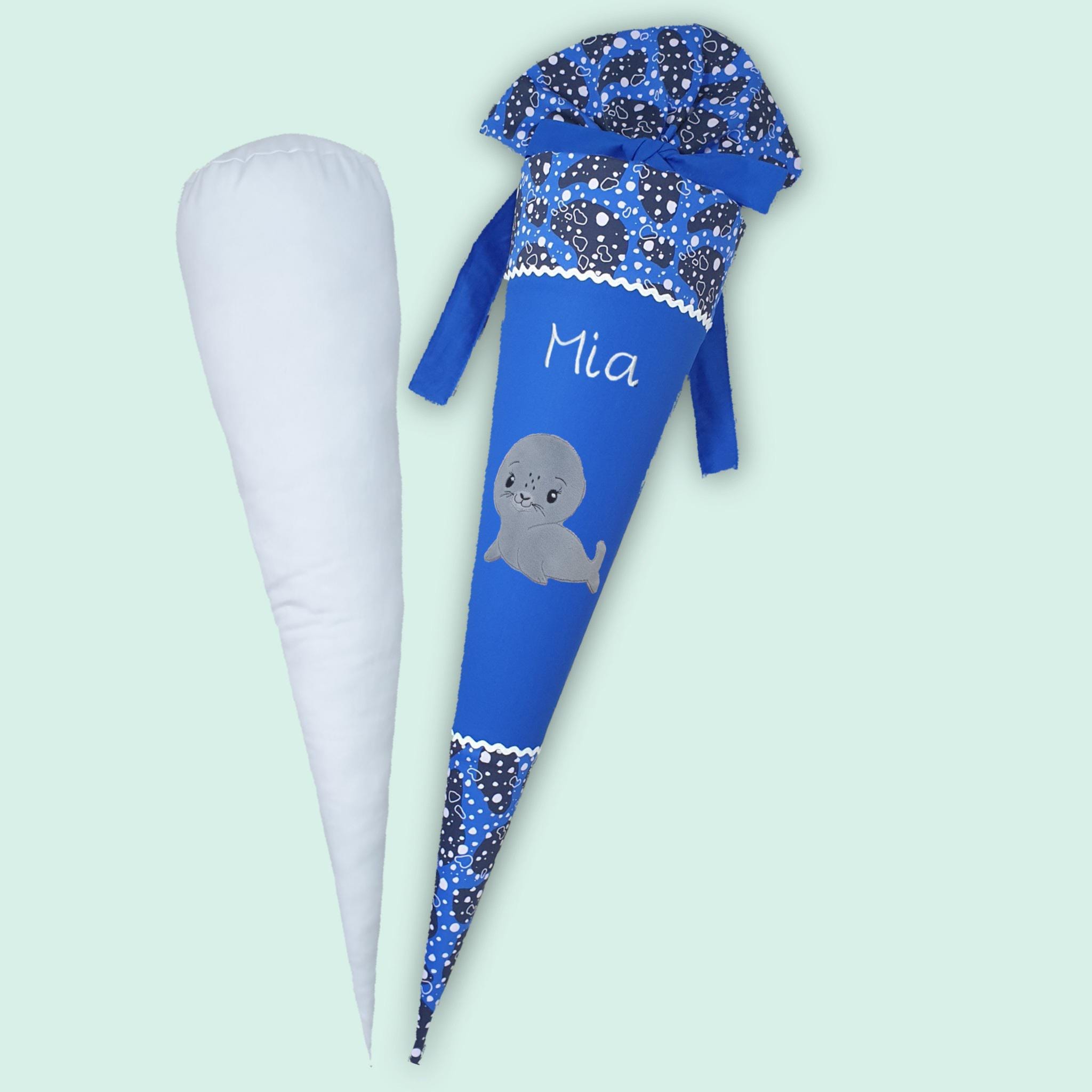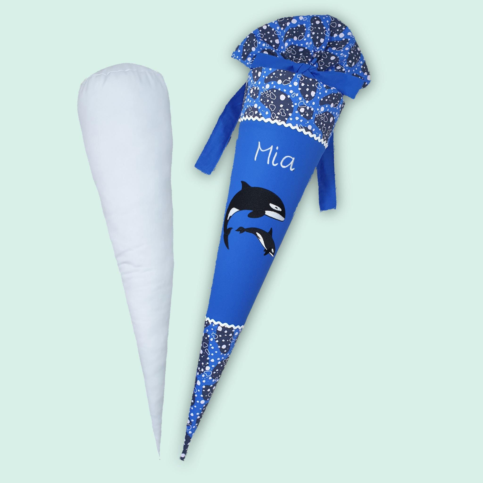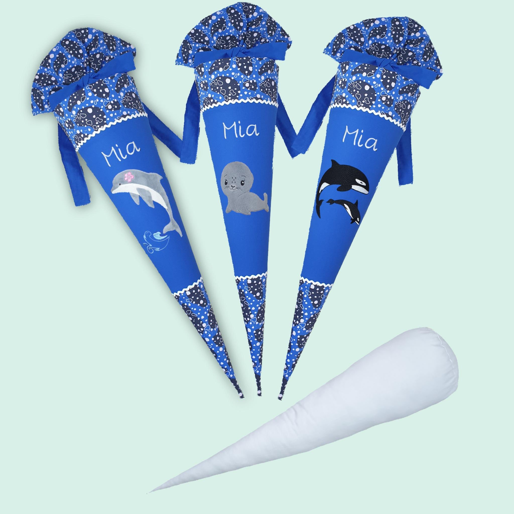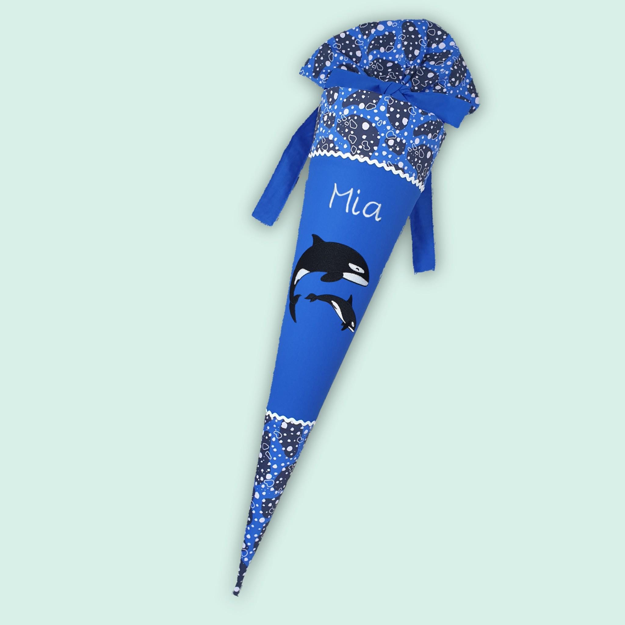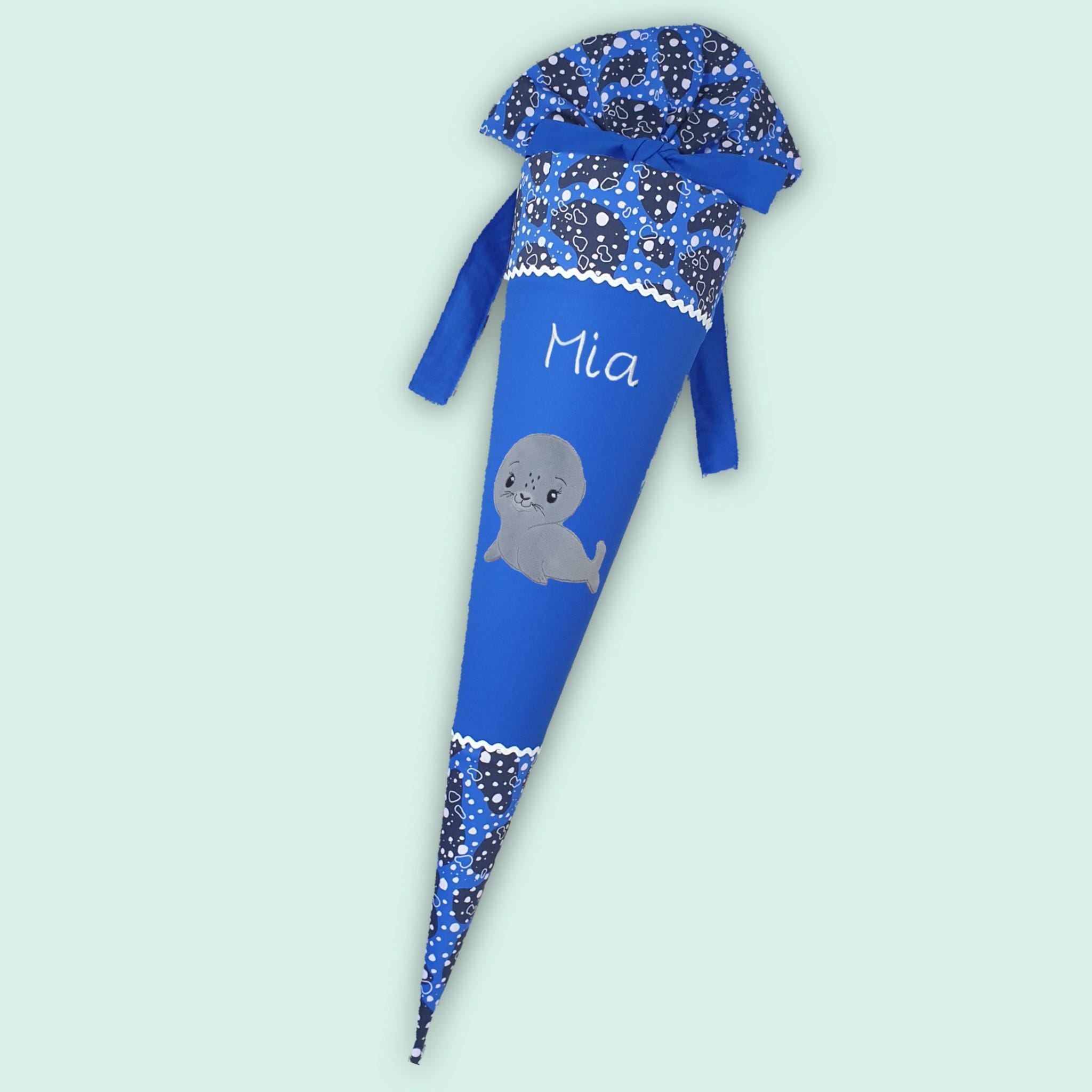 Schultüte mit Wunschmotiv und Namen farblich auf den Ozeanbärwohner abgestimmt.
