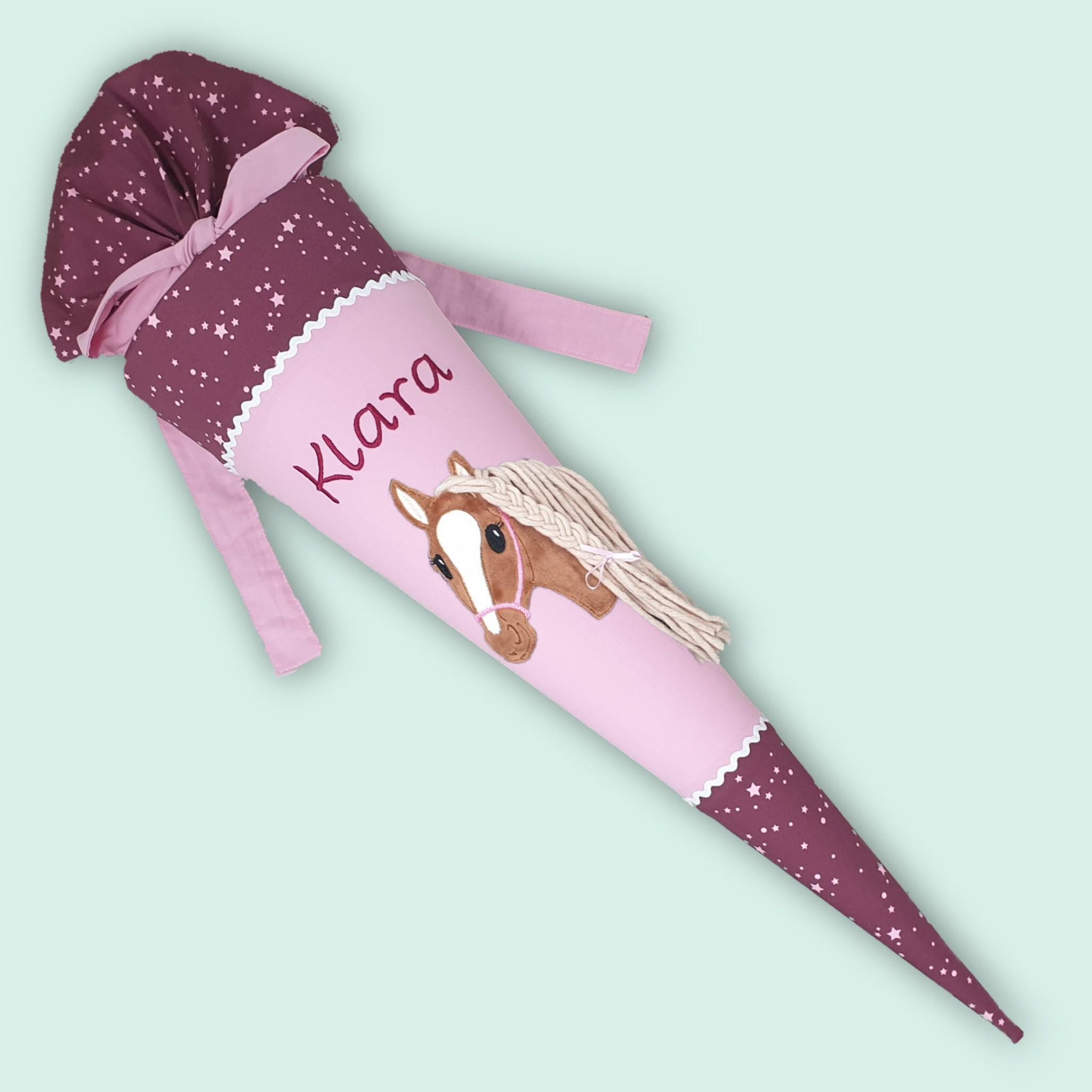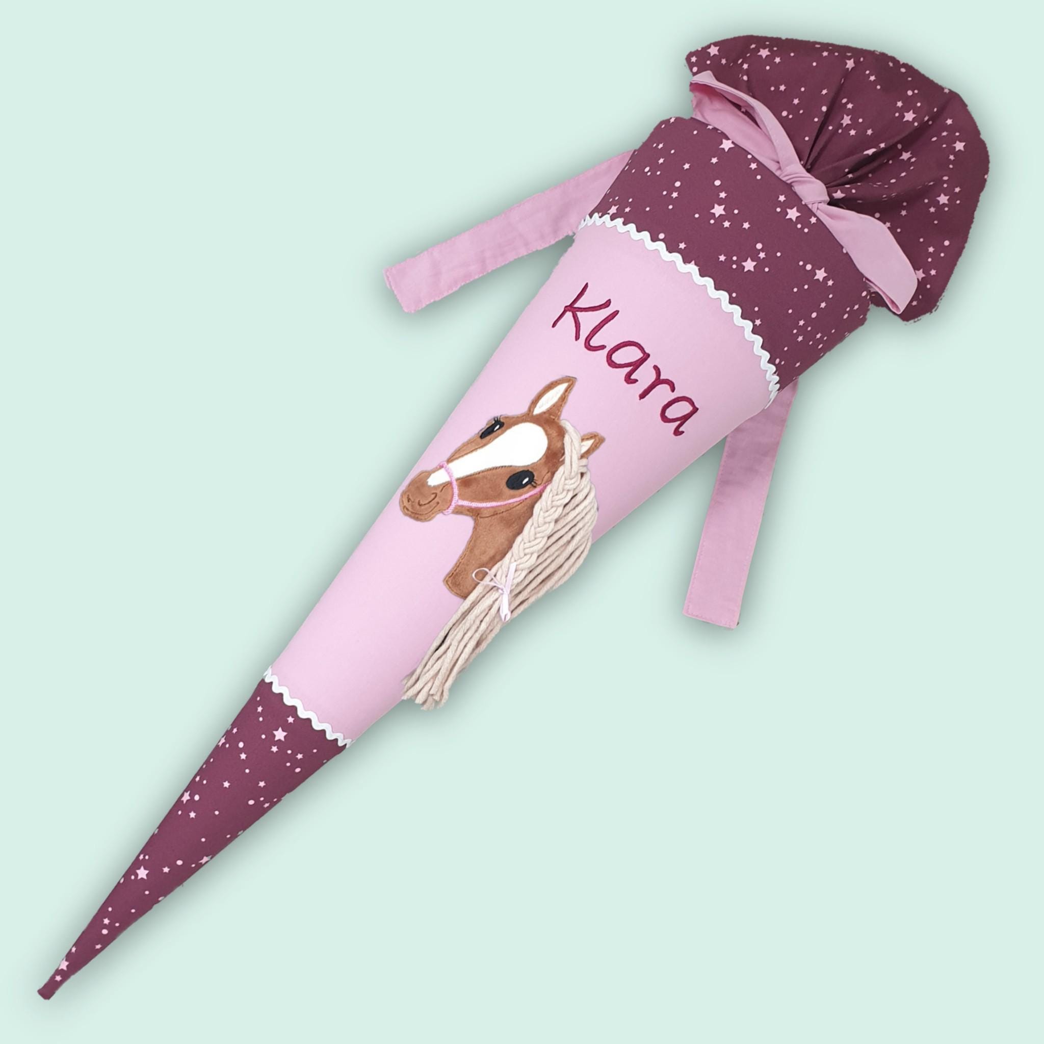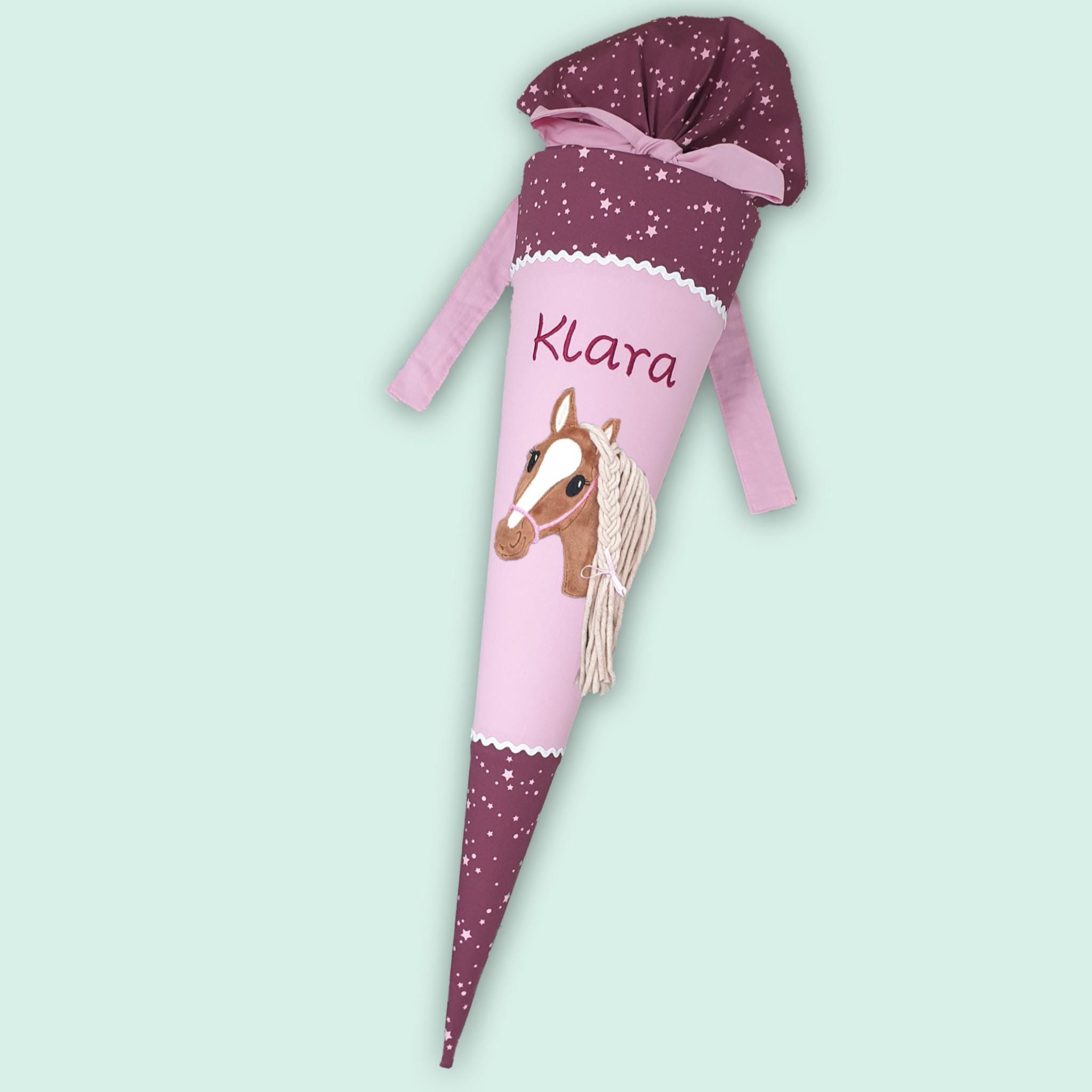 Schultüte Pferd und Namen farblich auf den Berry Stars Schulranzen abgestimmt.