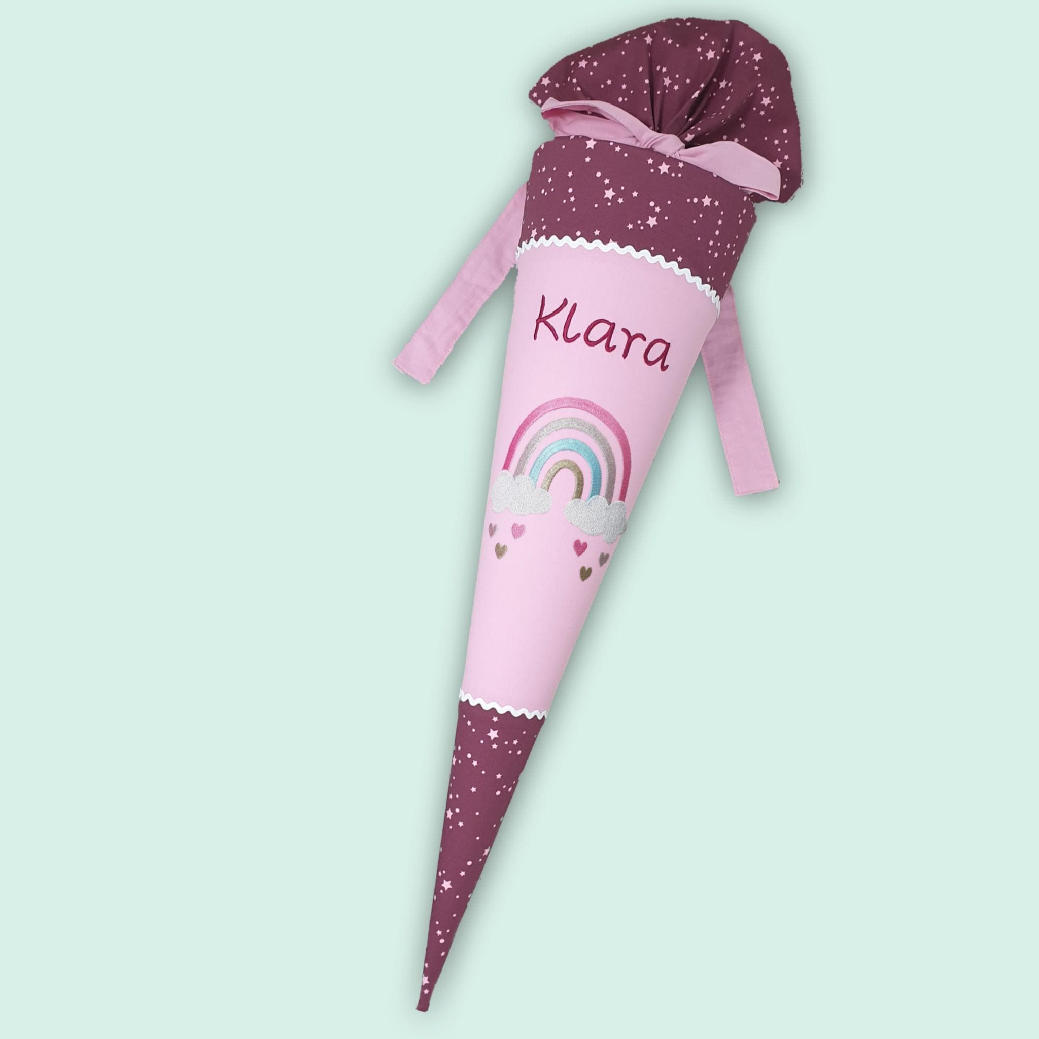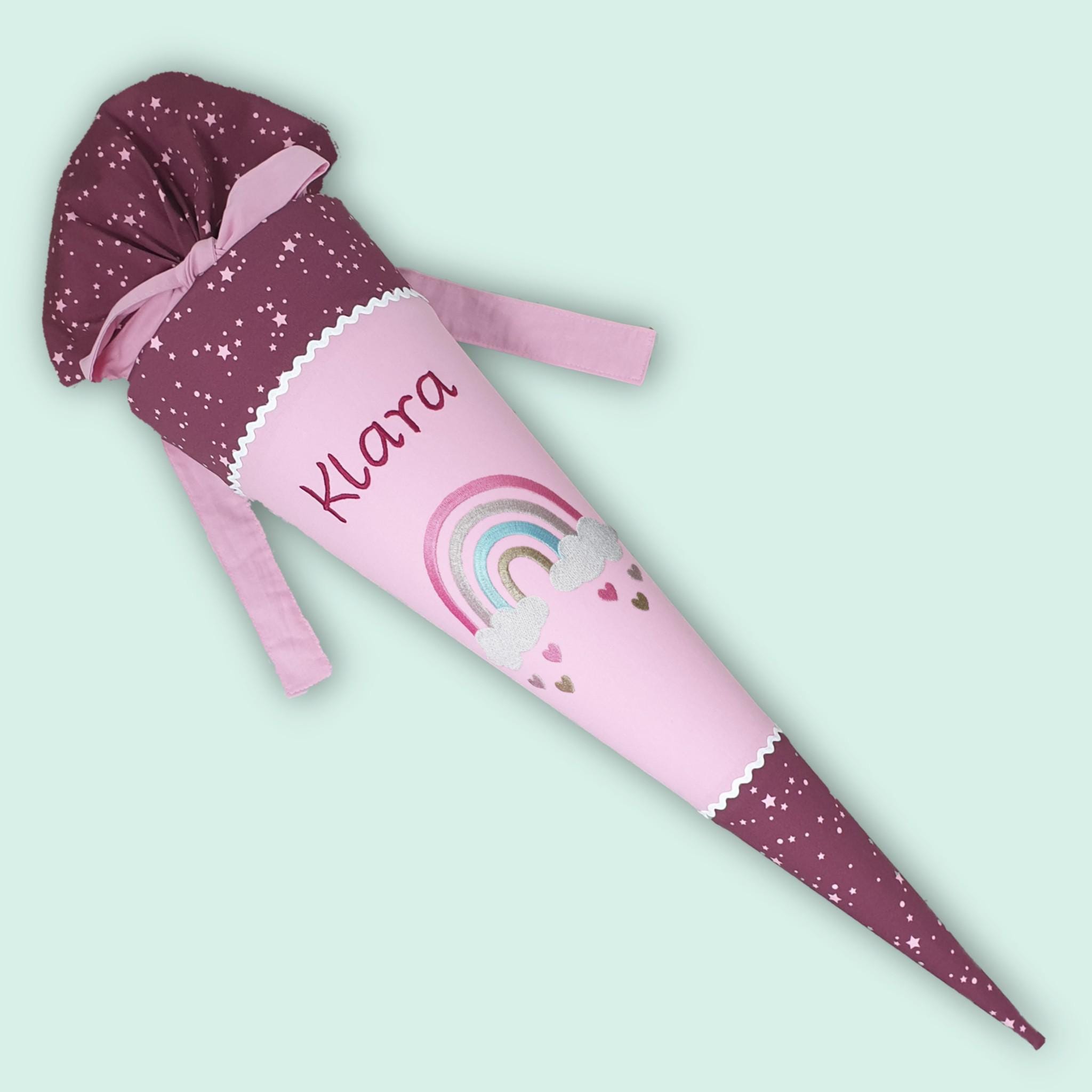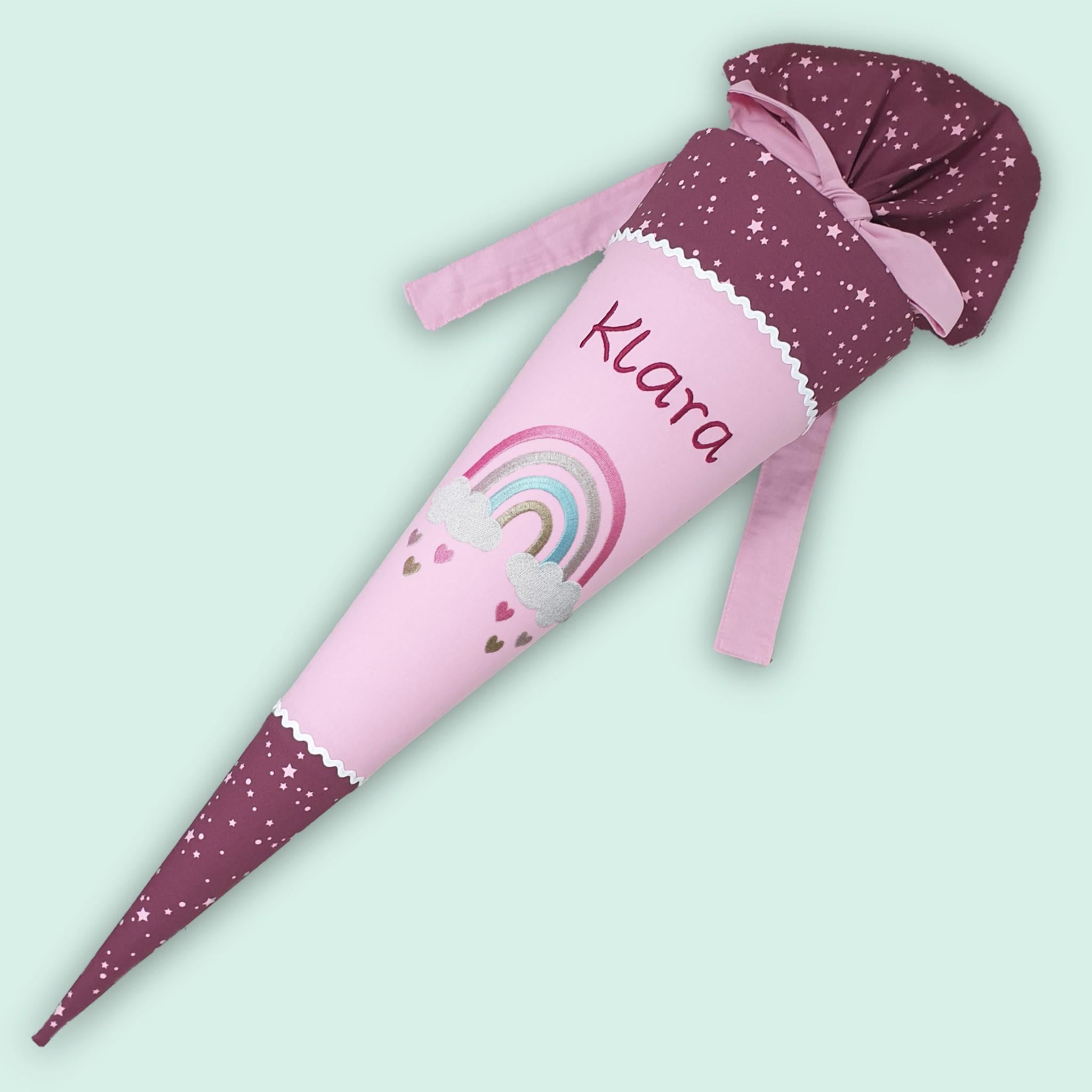 Schultüte Regenbogen und Namen farblich auf den Berry Stars Schulranzen abgestimmt.