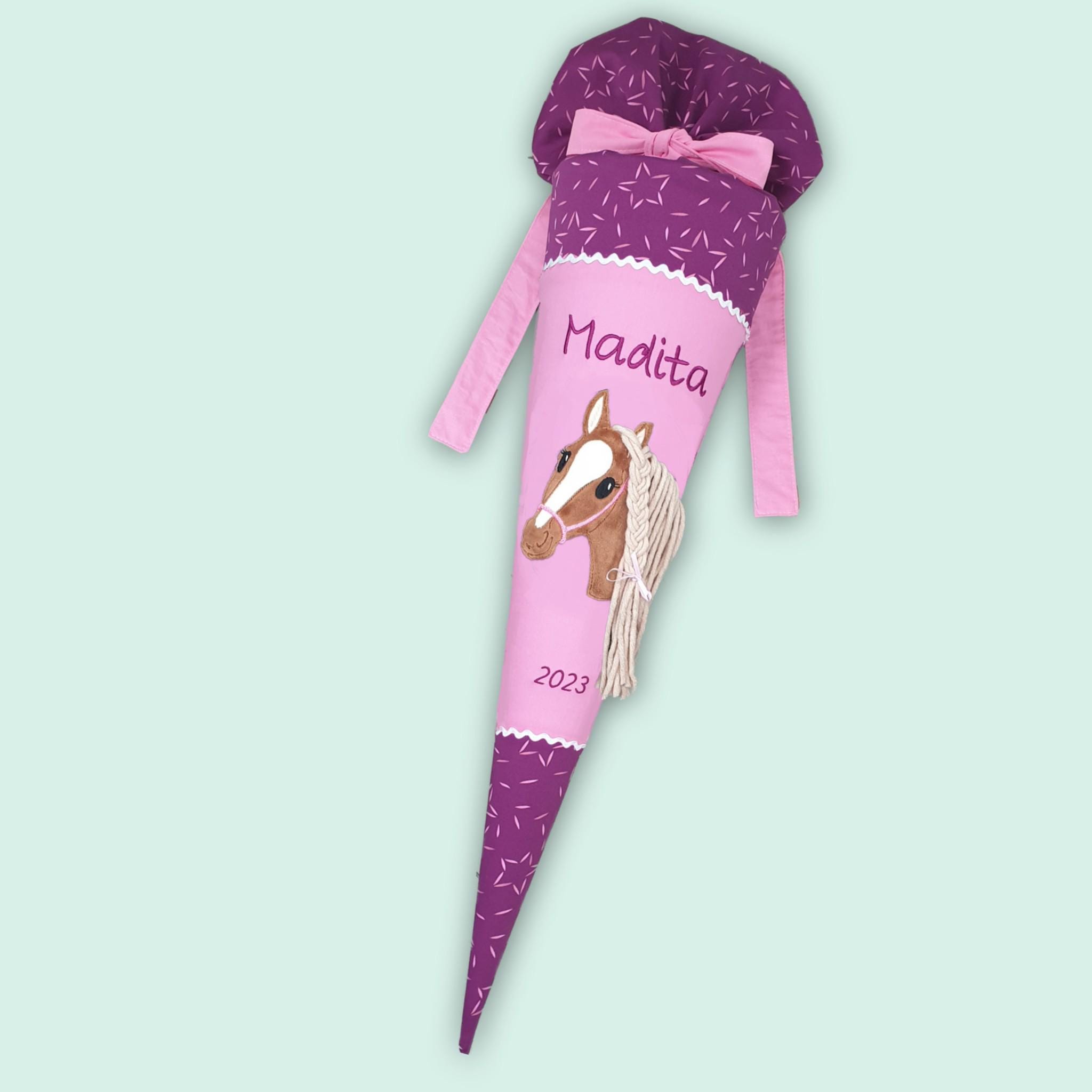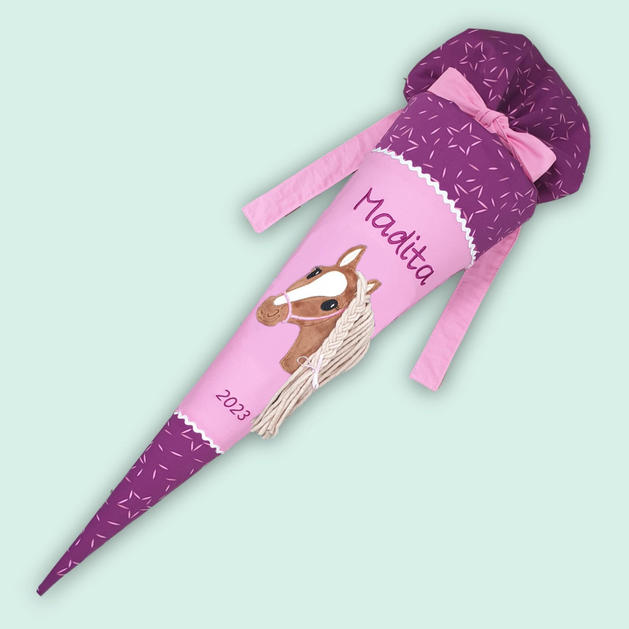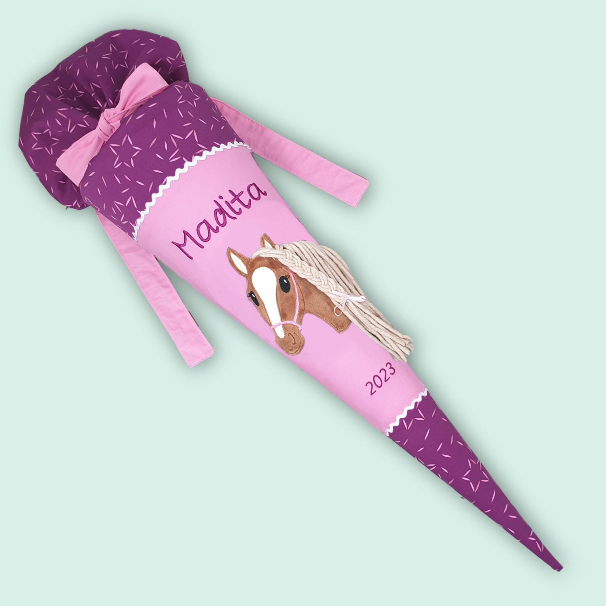 Schultüte Pferd und Namen farblich auf den Pretty Unicorn Nuala Schulranzen abgestimmt.