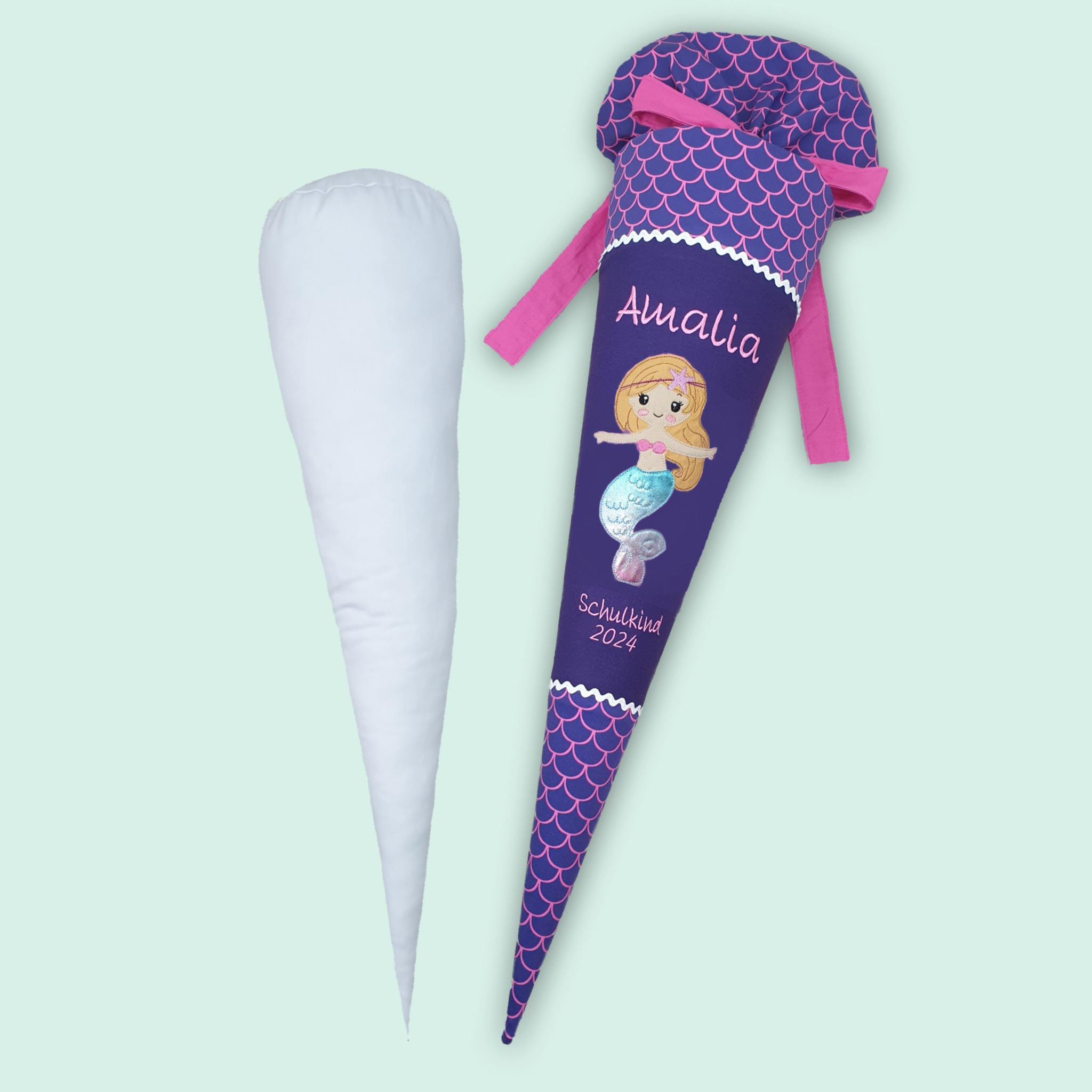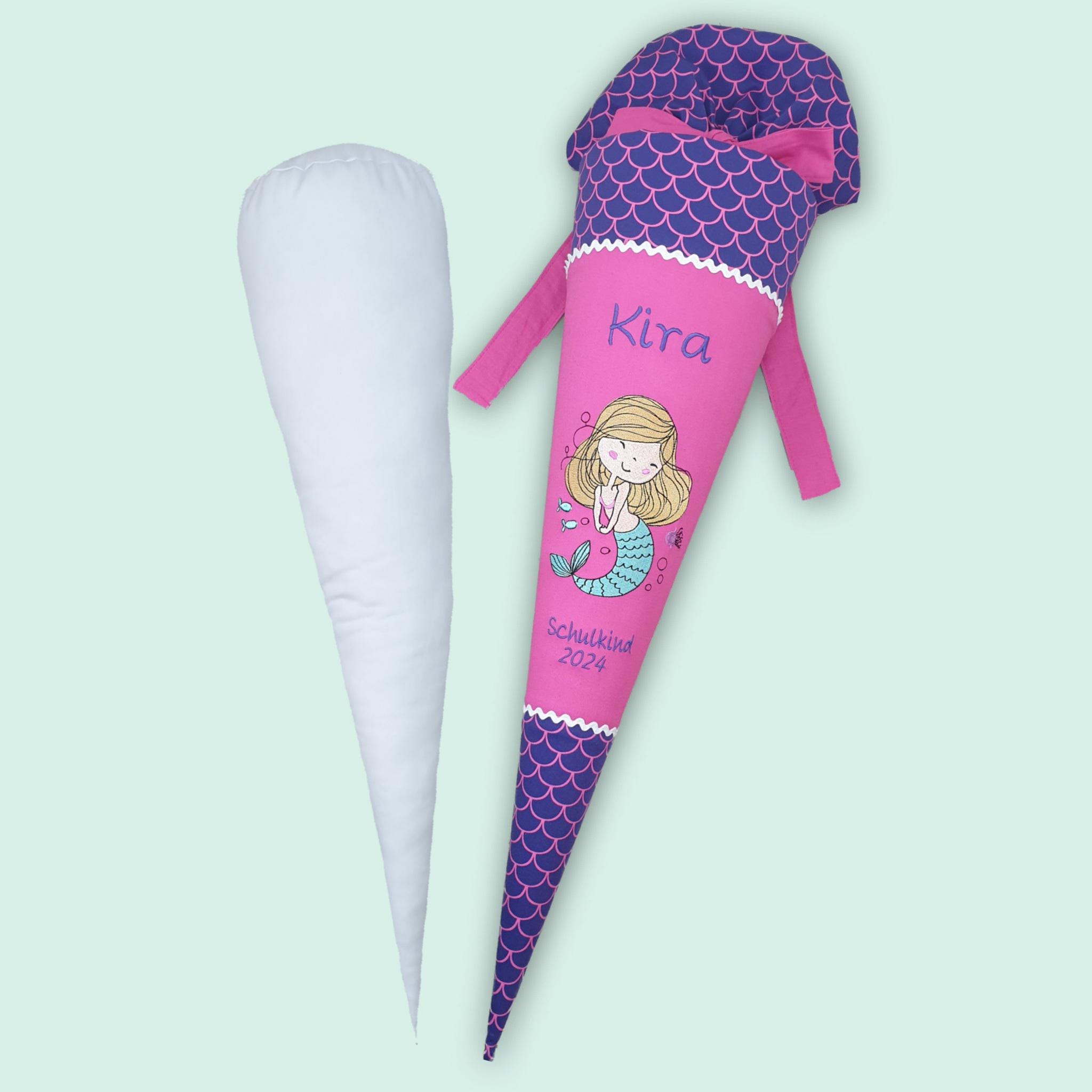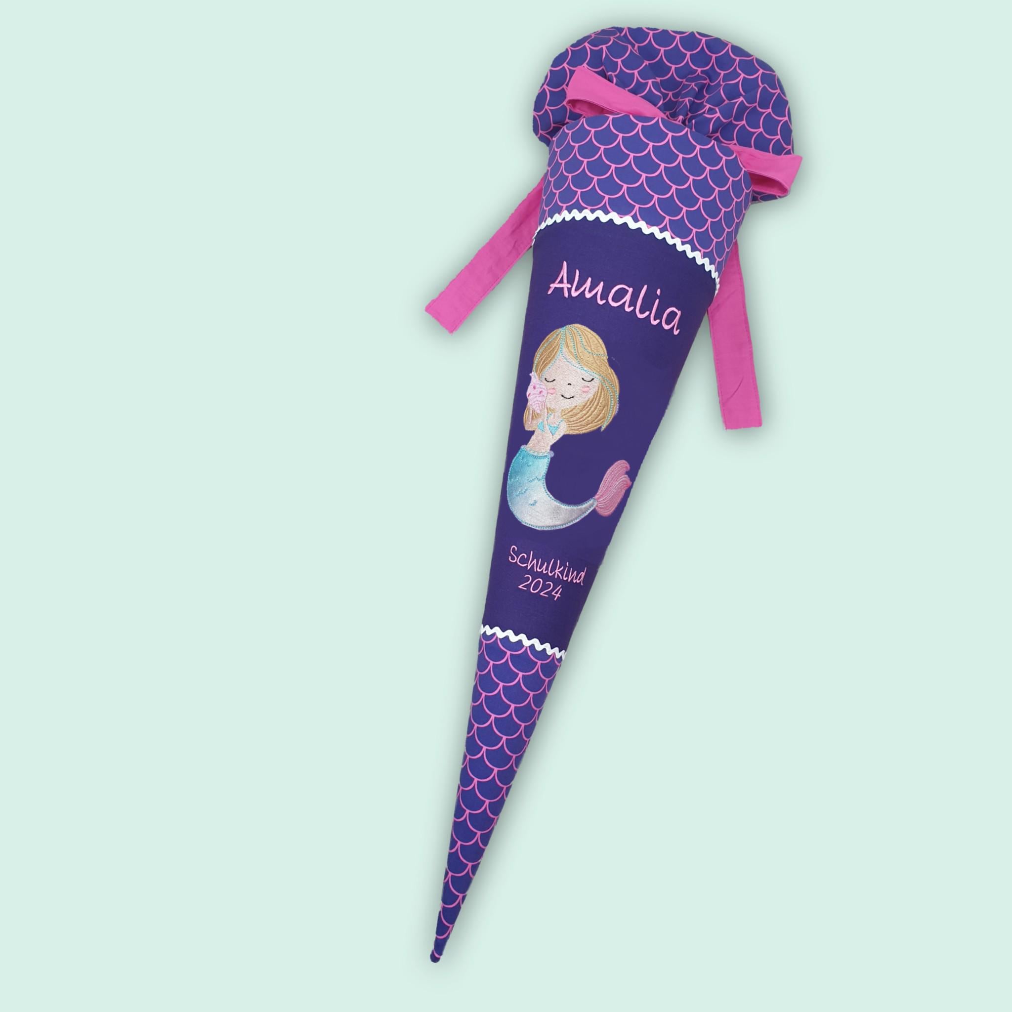 Die Stoffhülle ist aus Baumwollstoffen gefertigt und mindestens 20 cm länger als die eigentliche Schultüte, sodass sie perfekt passt und sich gut befüllen und verschließen lässt.