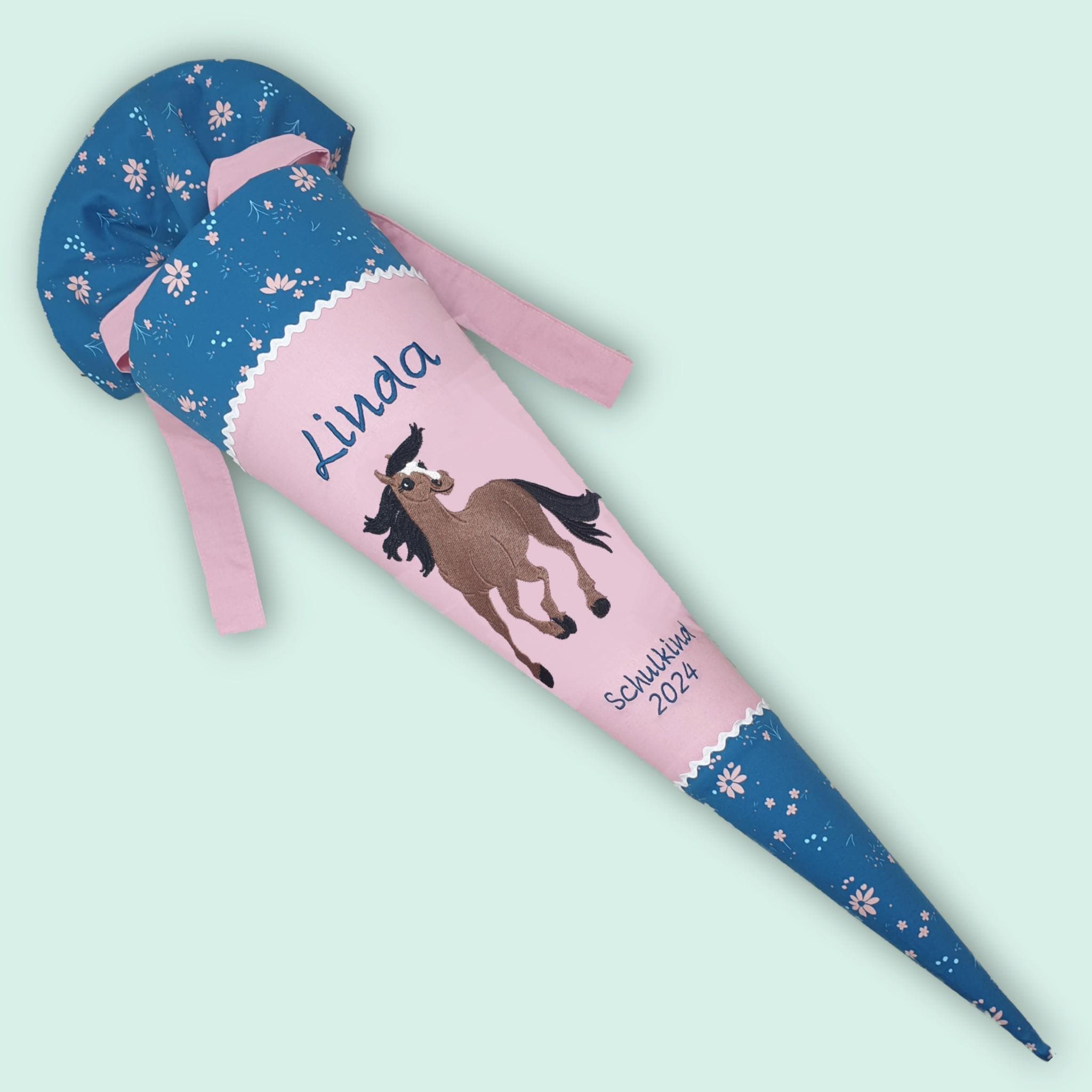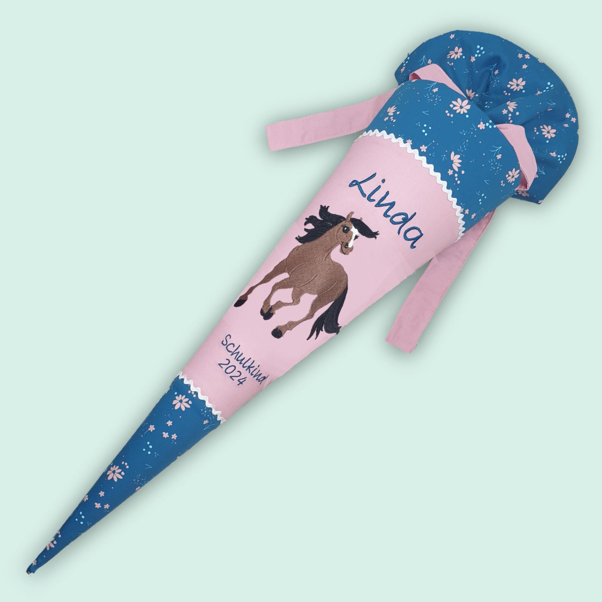 Schultüte mit Pferd und Namen farblich auf den Step by step Wild Horse Ronja abgestimmt.