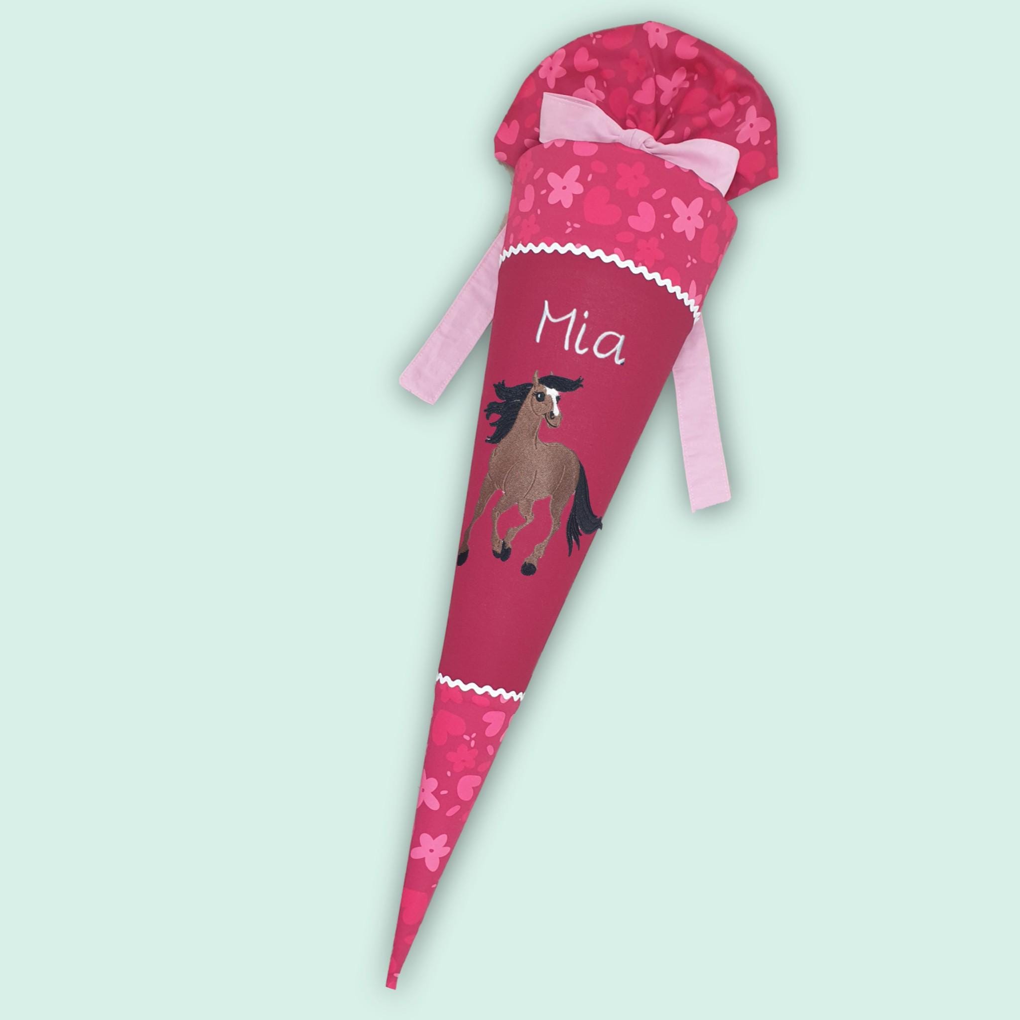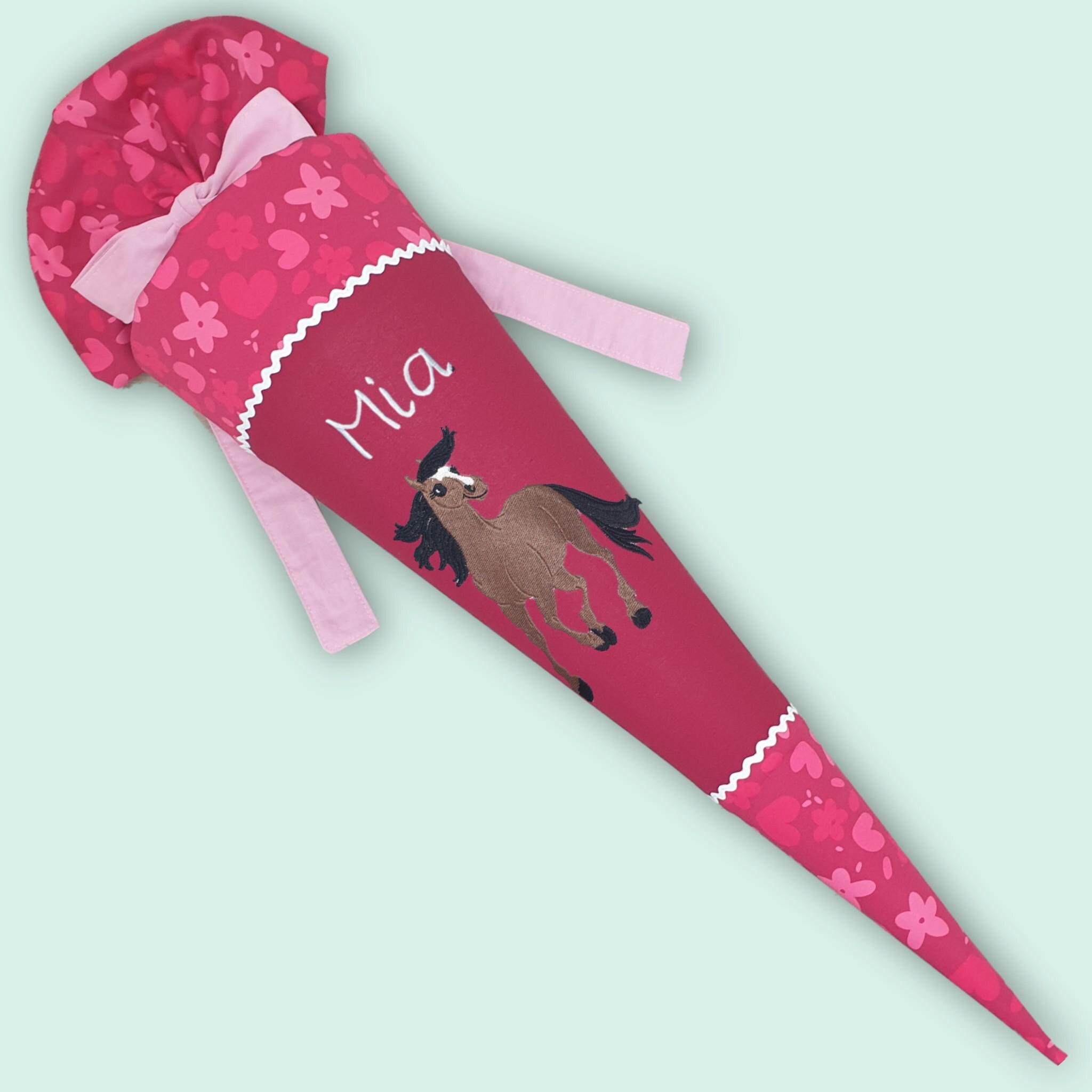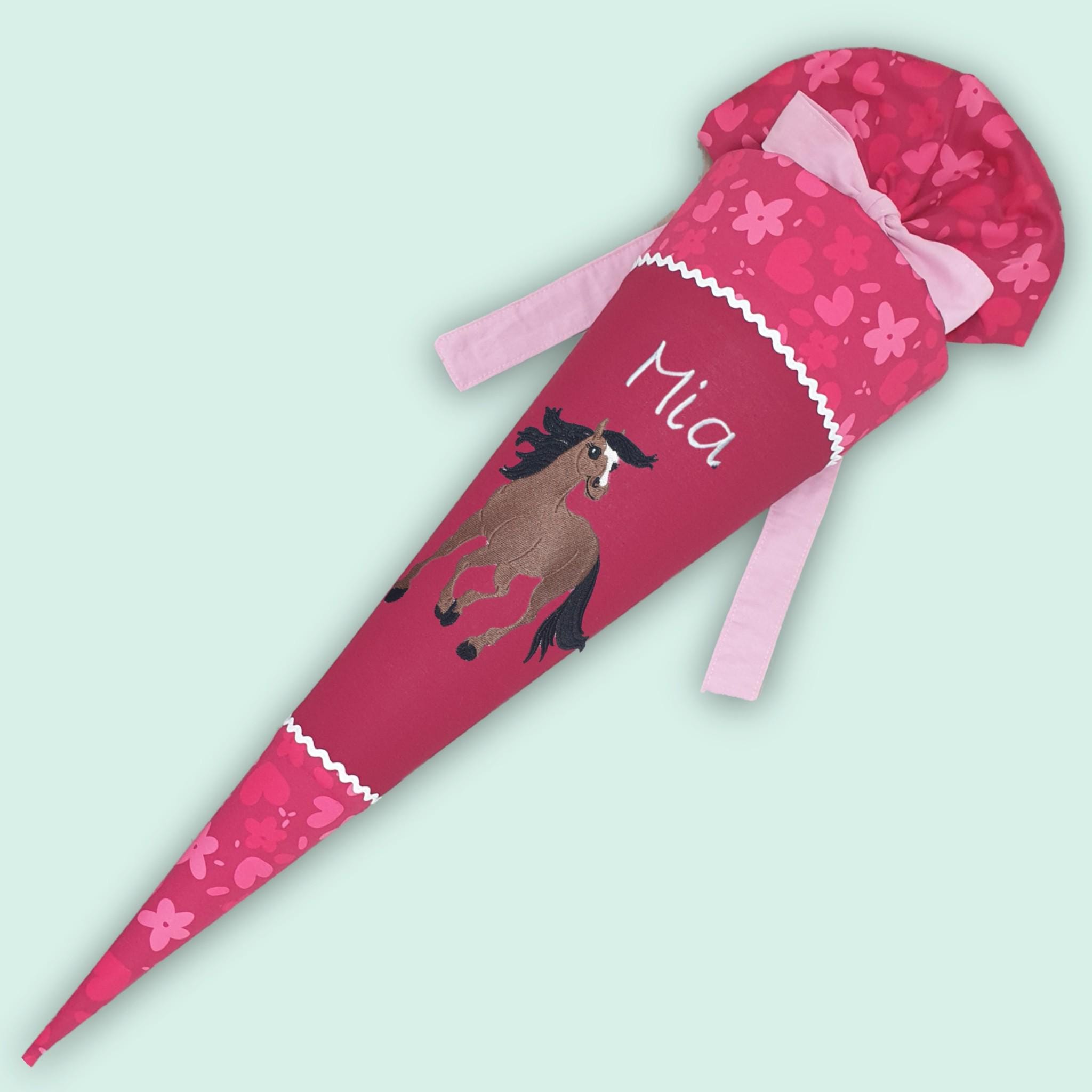 70 cm Schultüte oder 85 cm Schultüte mit Pferd und Namen farblich auf den Wild Horse Nora Schulranzen abgestimmt.