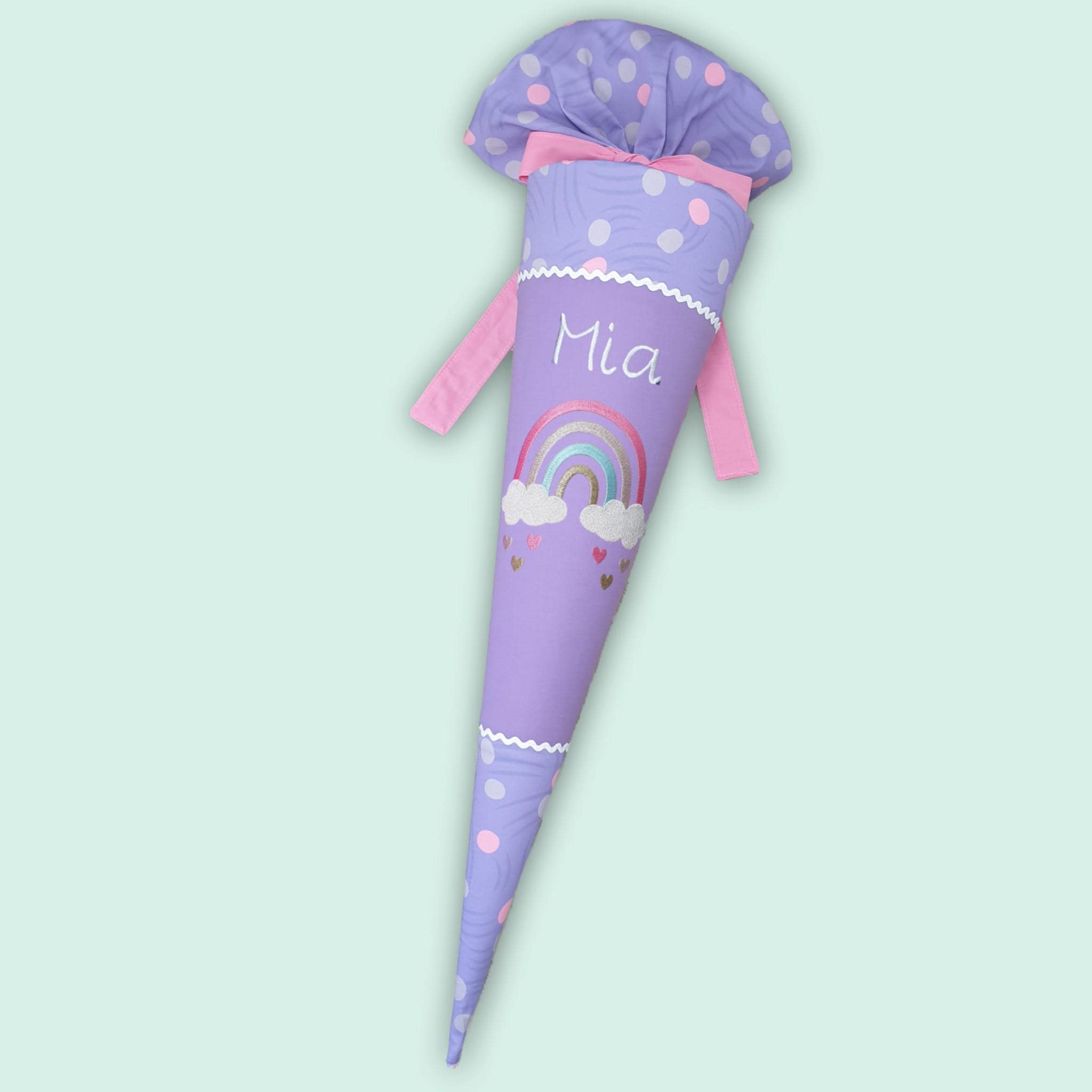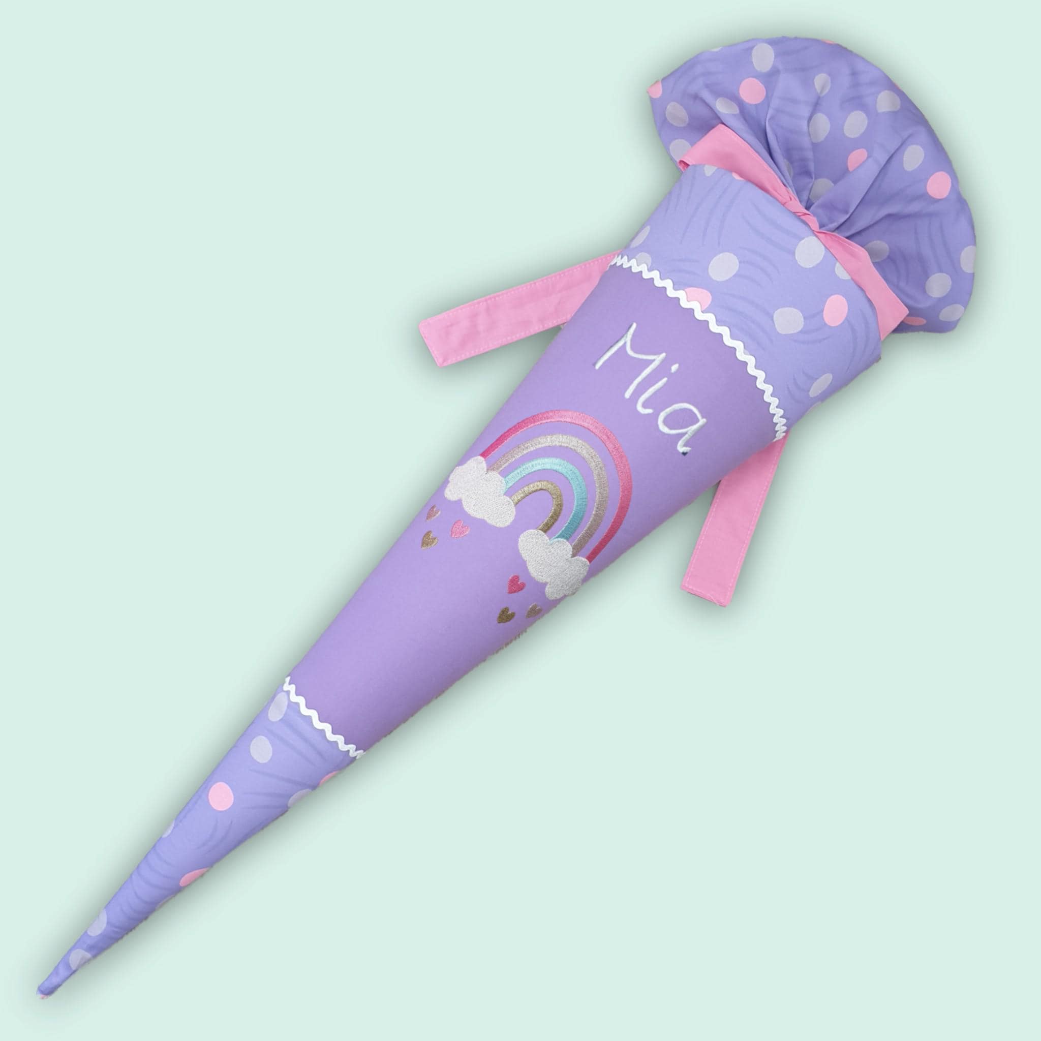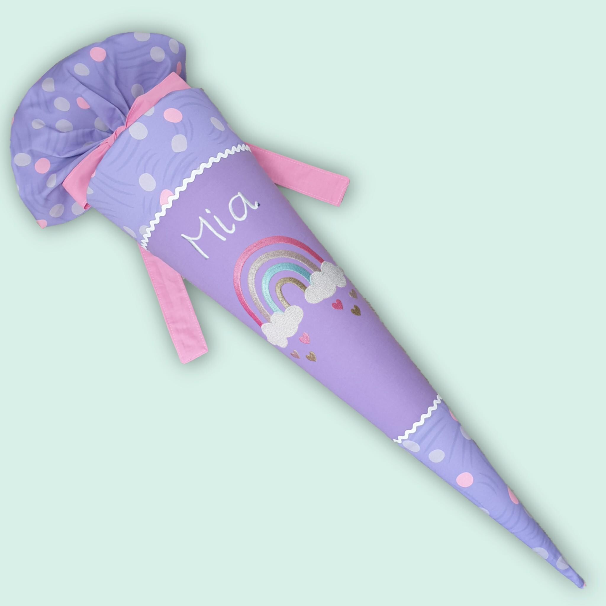 70 cm Schultüte oder 85 cm Schultüte mit Regenbogen und Namen farblich auf den Ponybäradies Schulranzen abgestimmt.