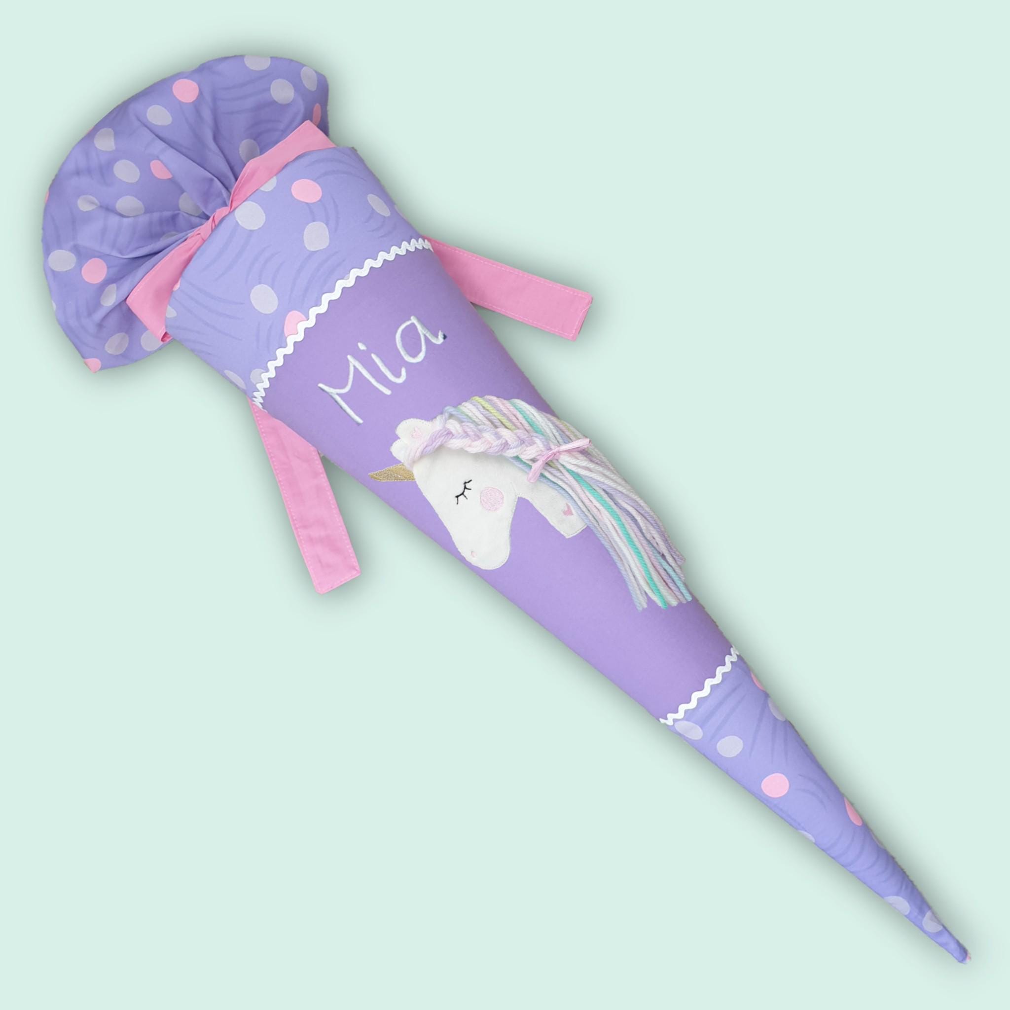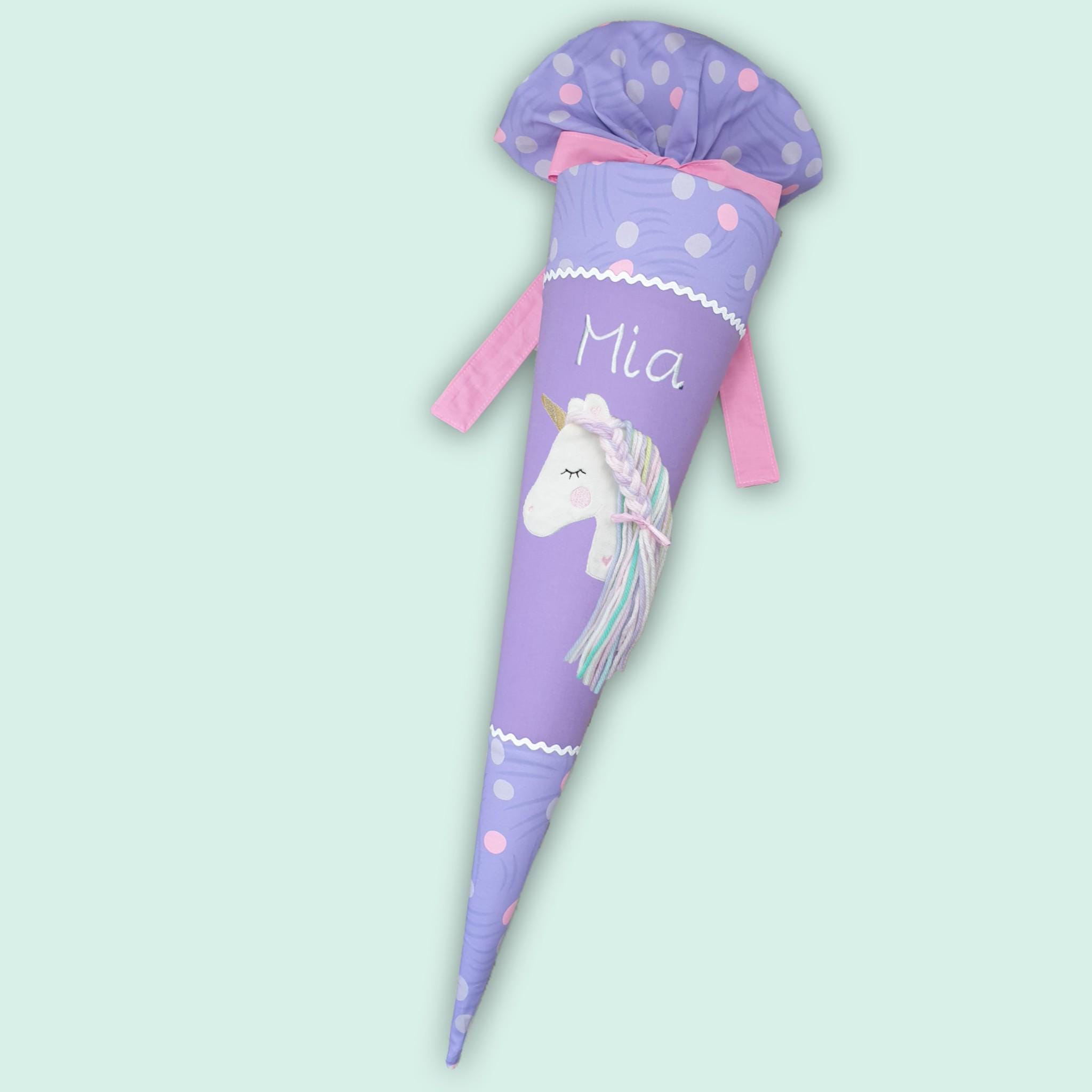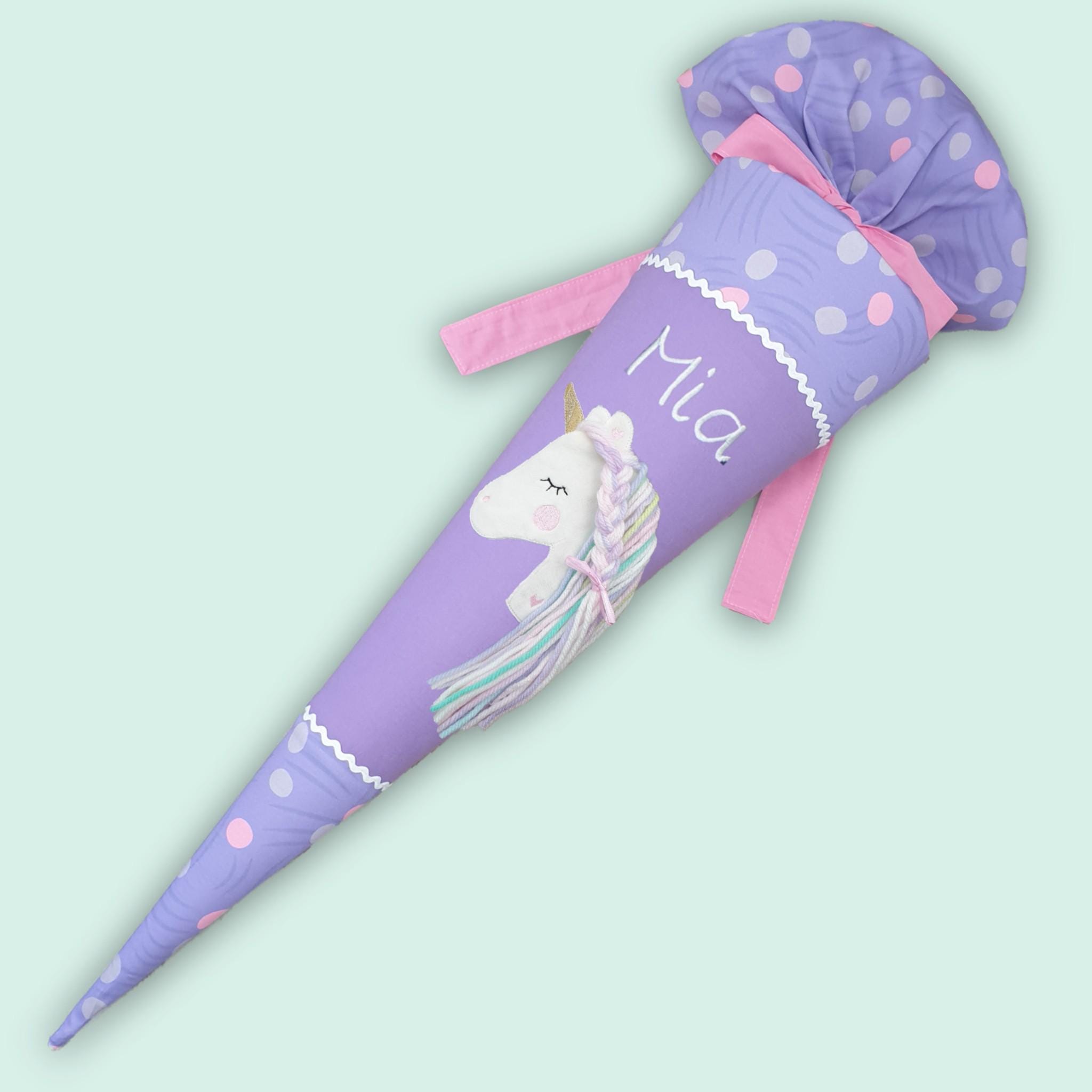 70 cm Schultüte oder 85 cm Schultüte mit Einhorn und Namen farblich auf den Ponybäradies Schulranzen abgestimmt.