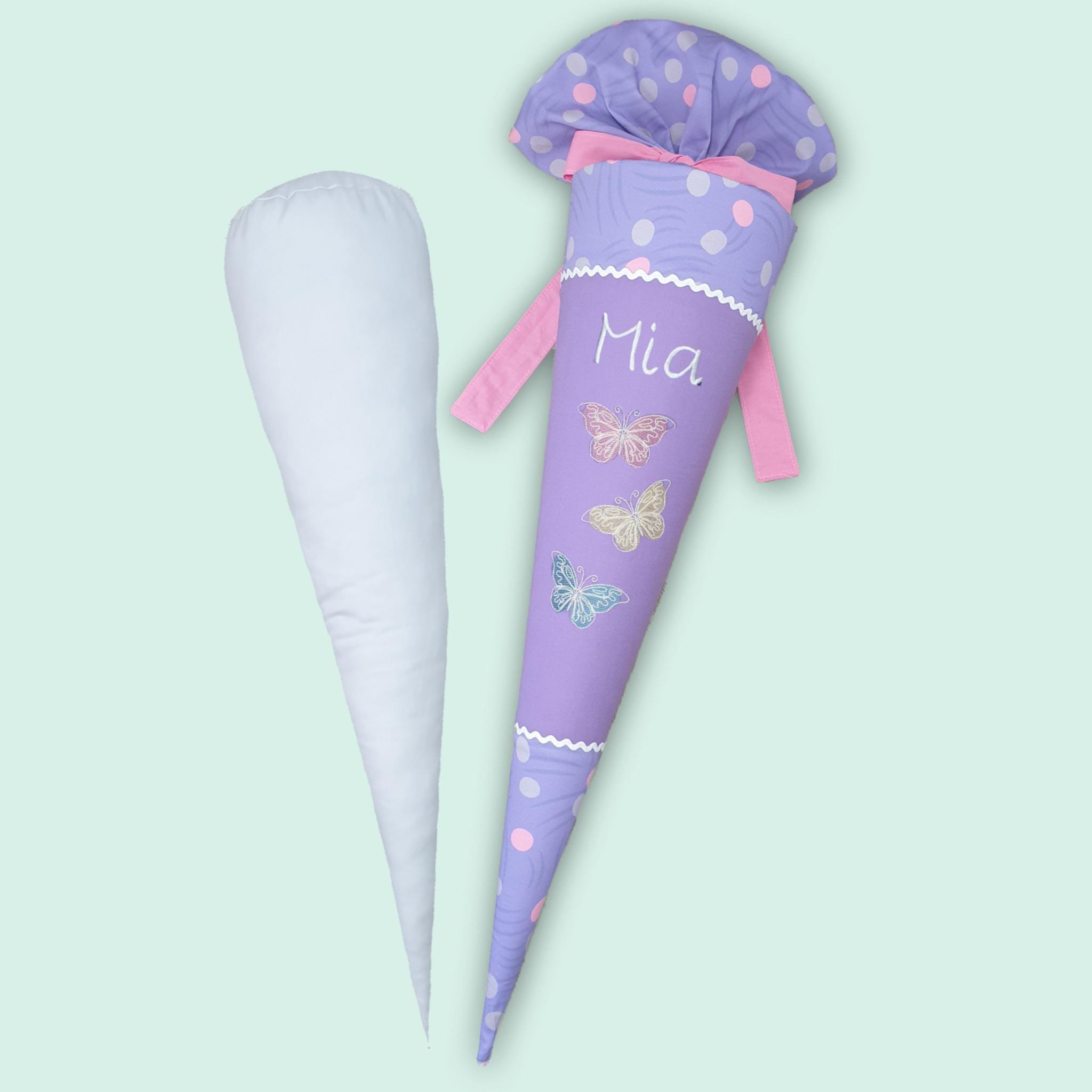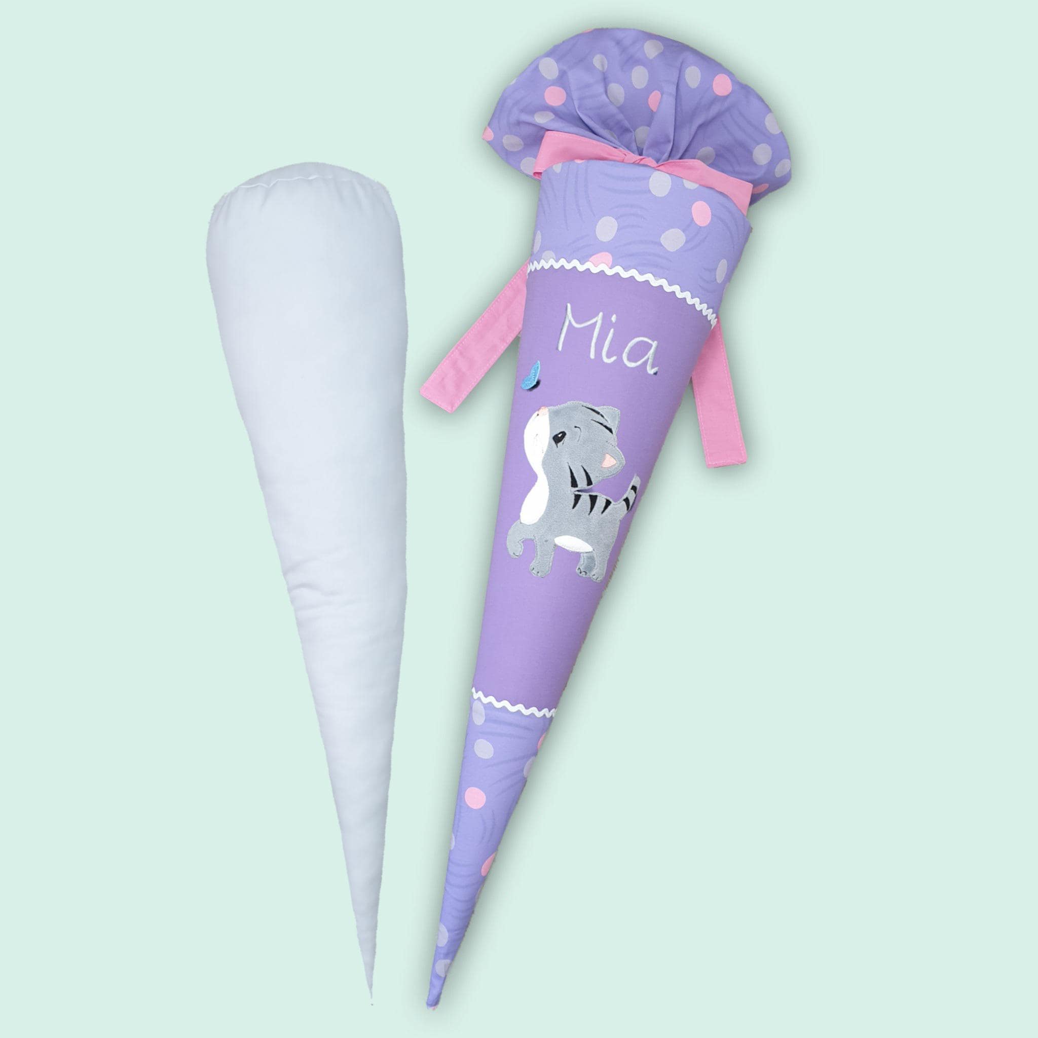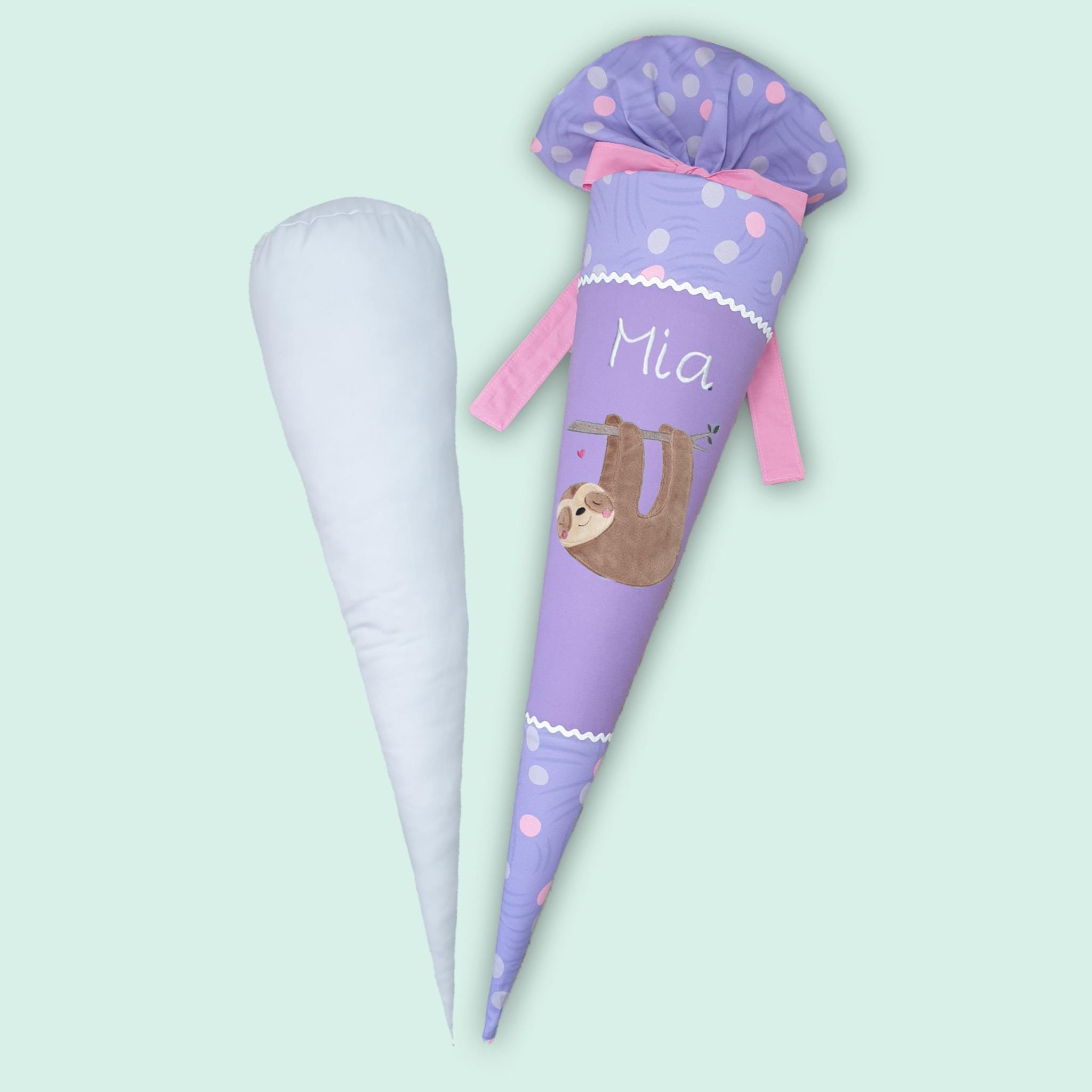 Die Stoffhülle ist aus Baumwollstoffen gefertigt und mindestens 20 cm länger als die eigentliche Schultüte, sodass sie perfekt passt und sich gut befüllen und verschließen lässt.