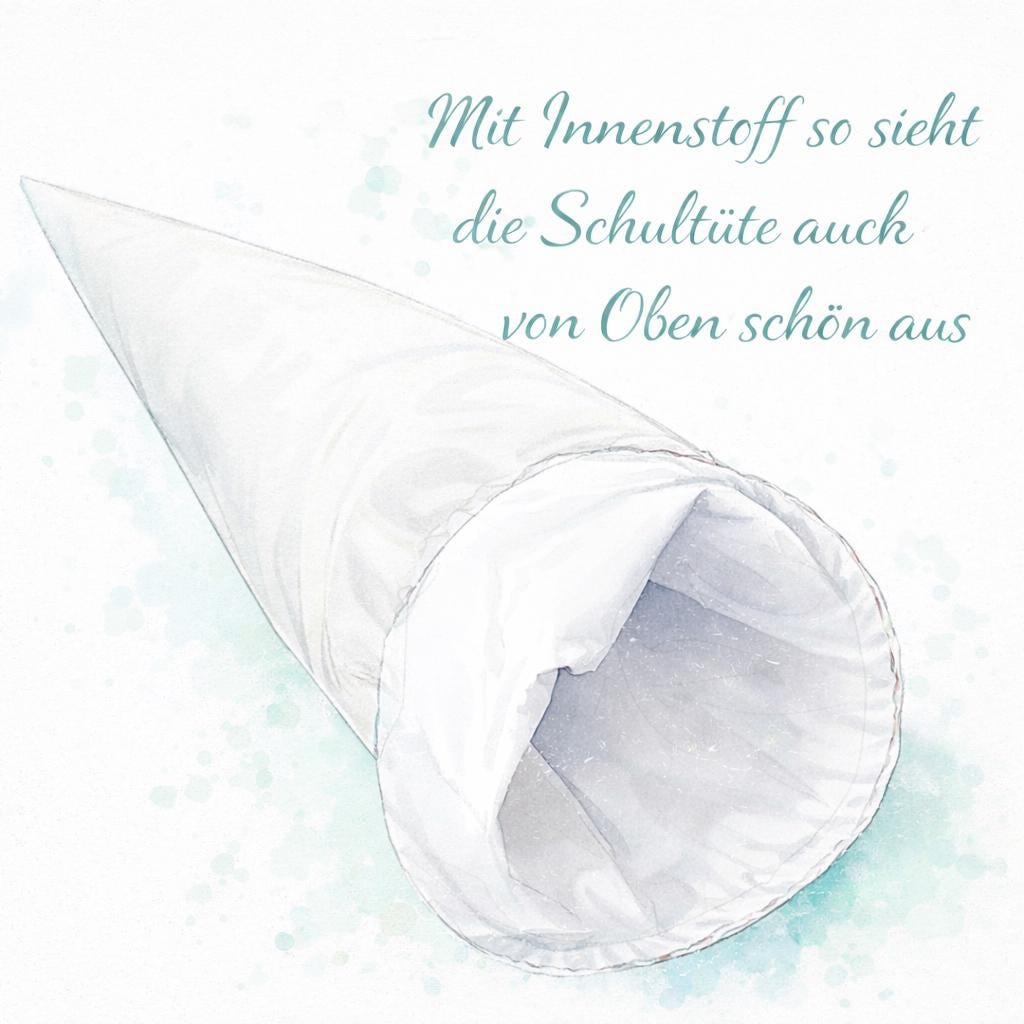 --Die Öffnung der Schultüte wird mit zusätzlichem Innenfutter aus Baumwollstoff genäht, sodass sie auch von innen schön aussieht und einen sauberen, fertigen Eindruck hinterlässt.