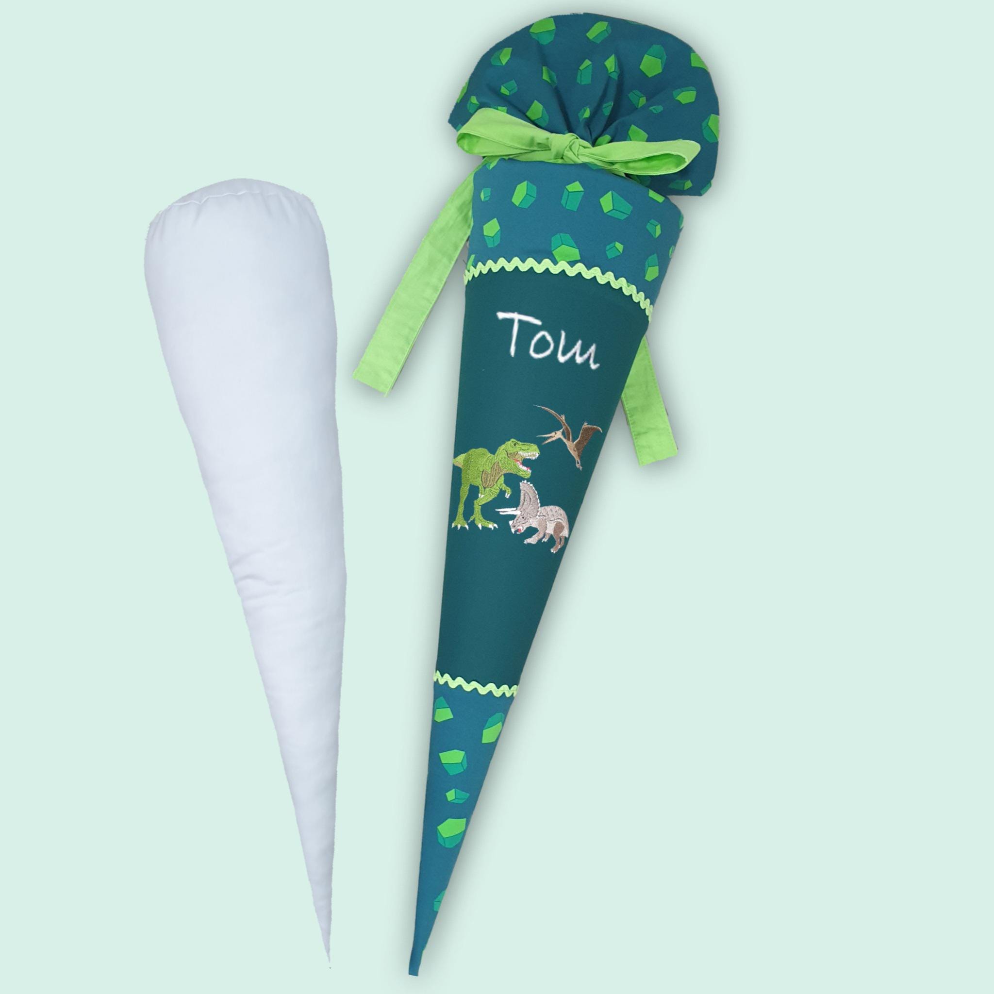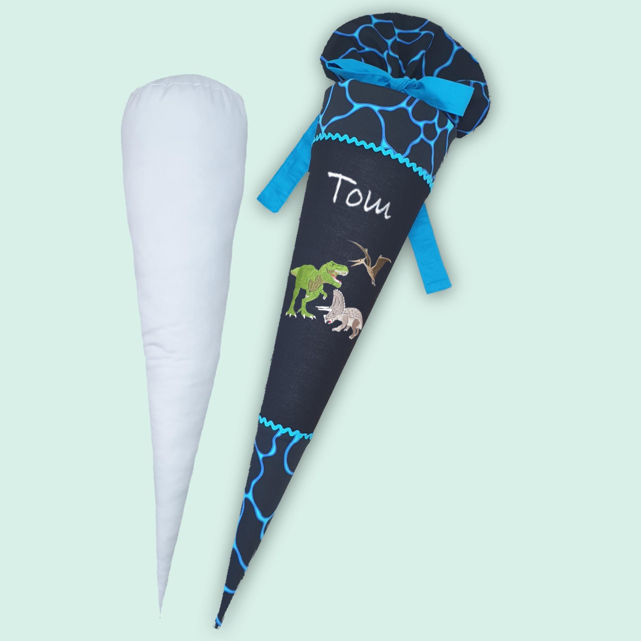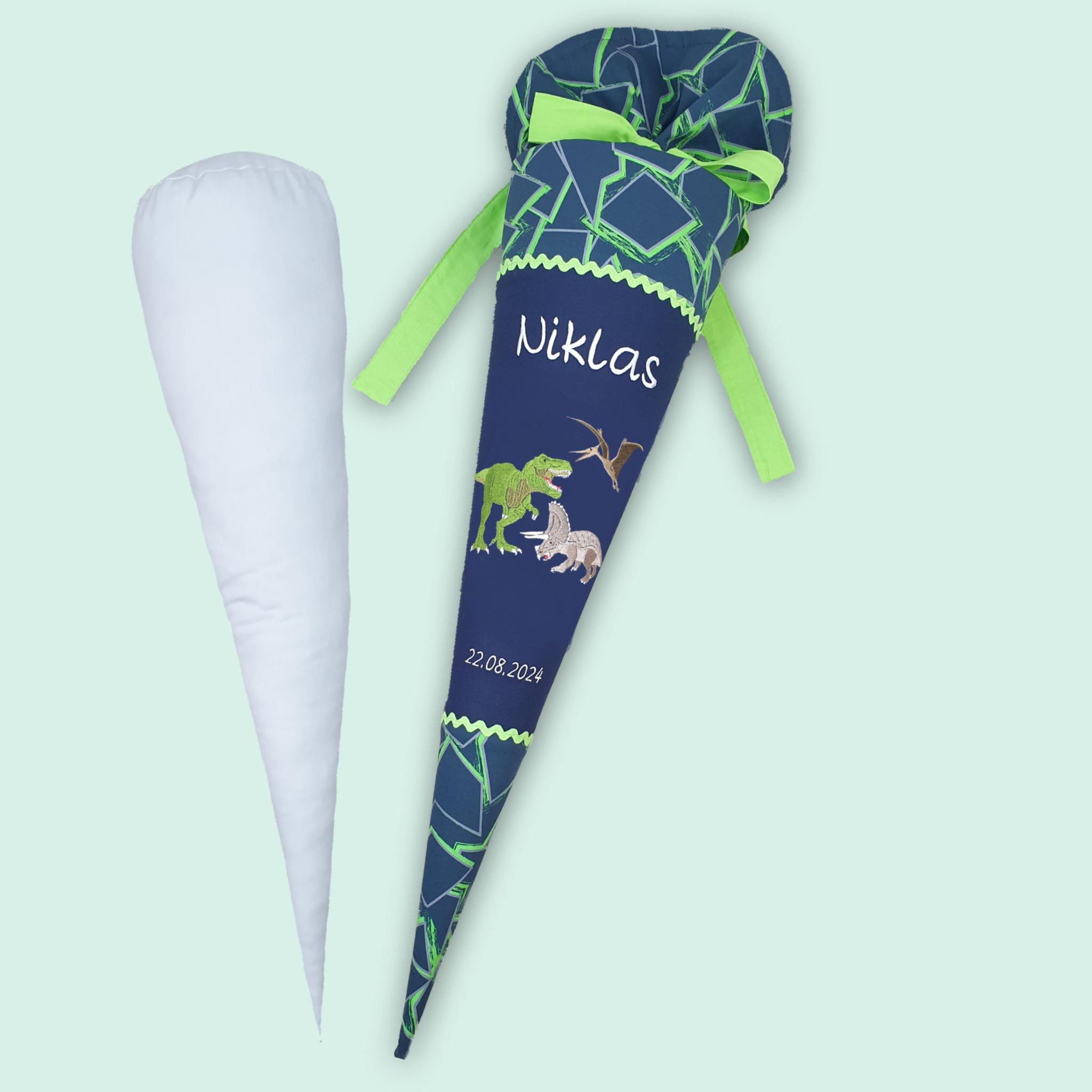 Jede Schultüte wird mit einem gestickten Motiv und dem Namen deines Kindes individuell gestaltet. Auf Wunsch fügen wir auch das Datum des ersten Schultages hinzu.