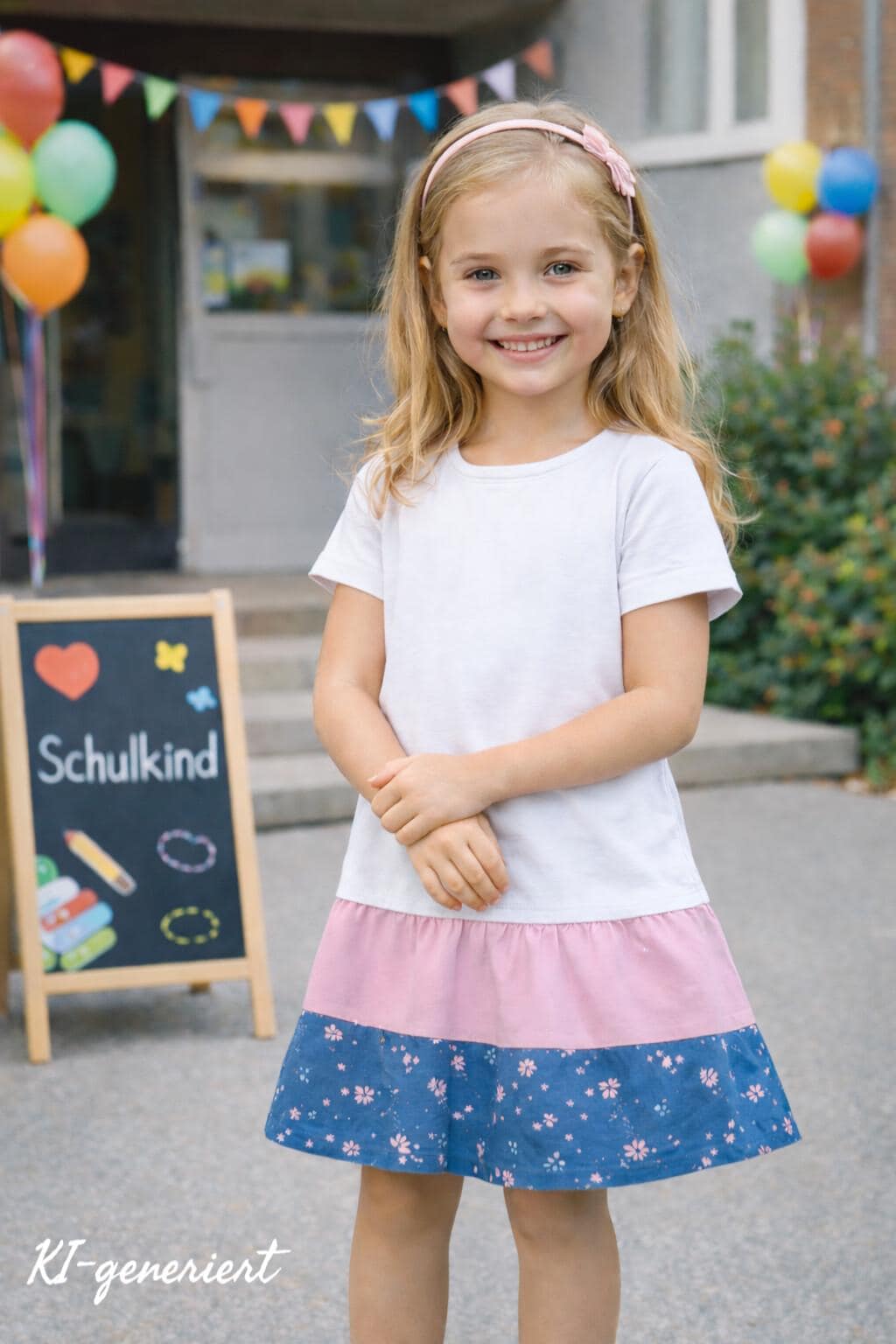 Bei dem Rock wähle ich Stoffe, die in Farbe und Design gut zum Schulranzen passen.
