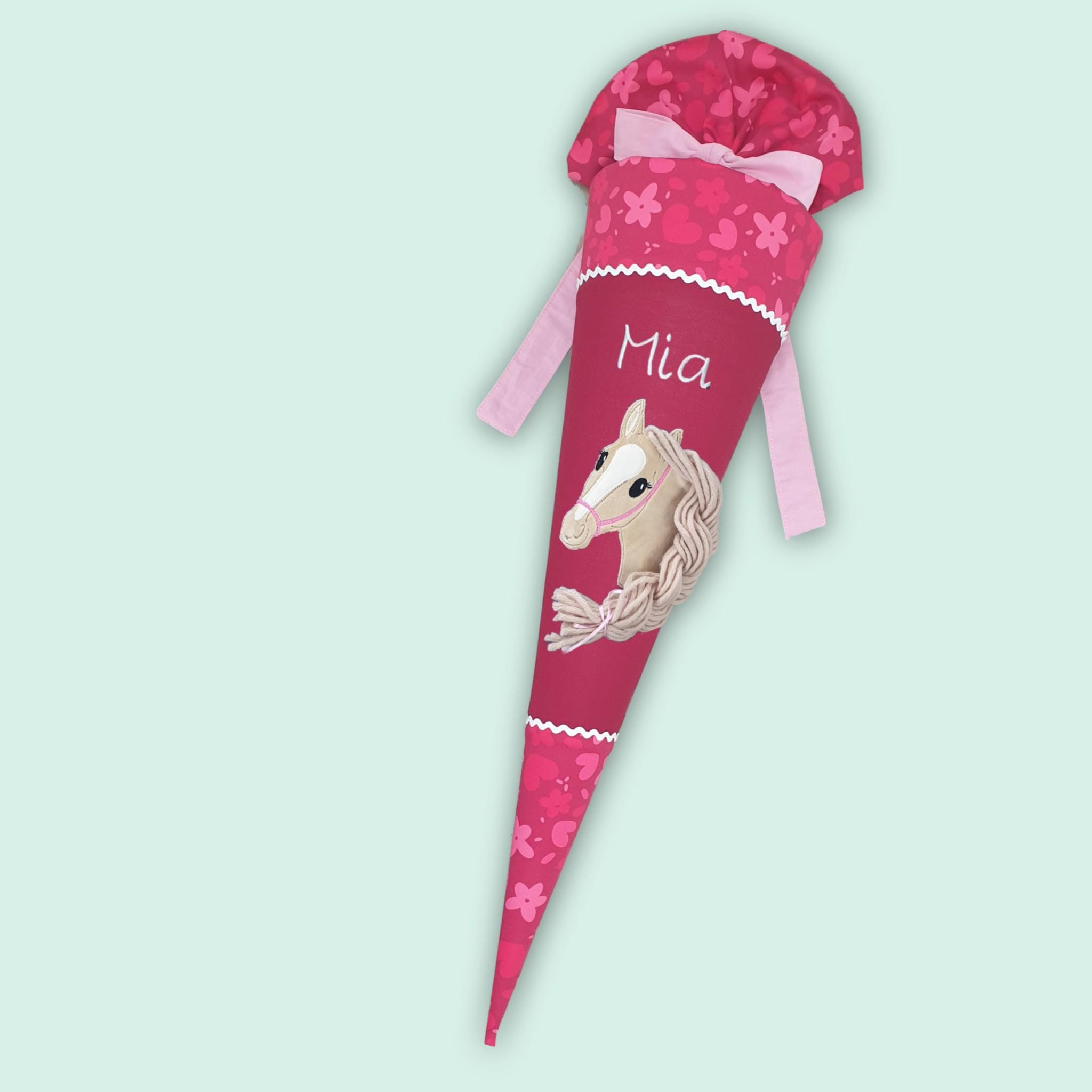 70 cm Schultüte oder 85 cm Schultüte mit Pferd und Namen farblich auf den Wild Horse Nora Schulranzen abgestimmt.