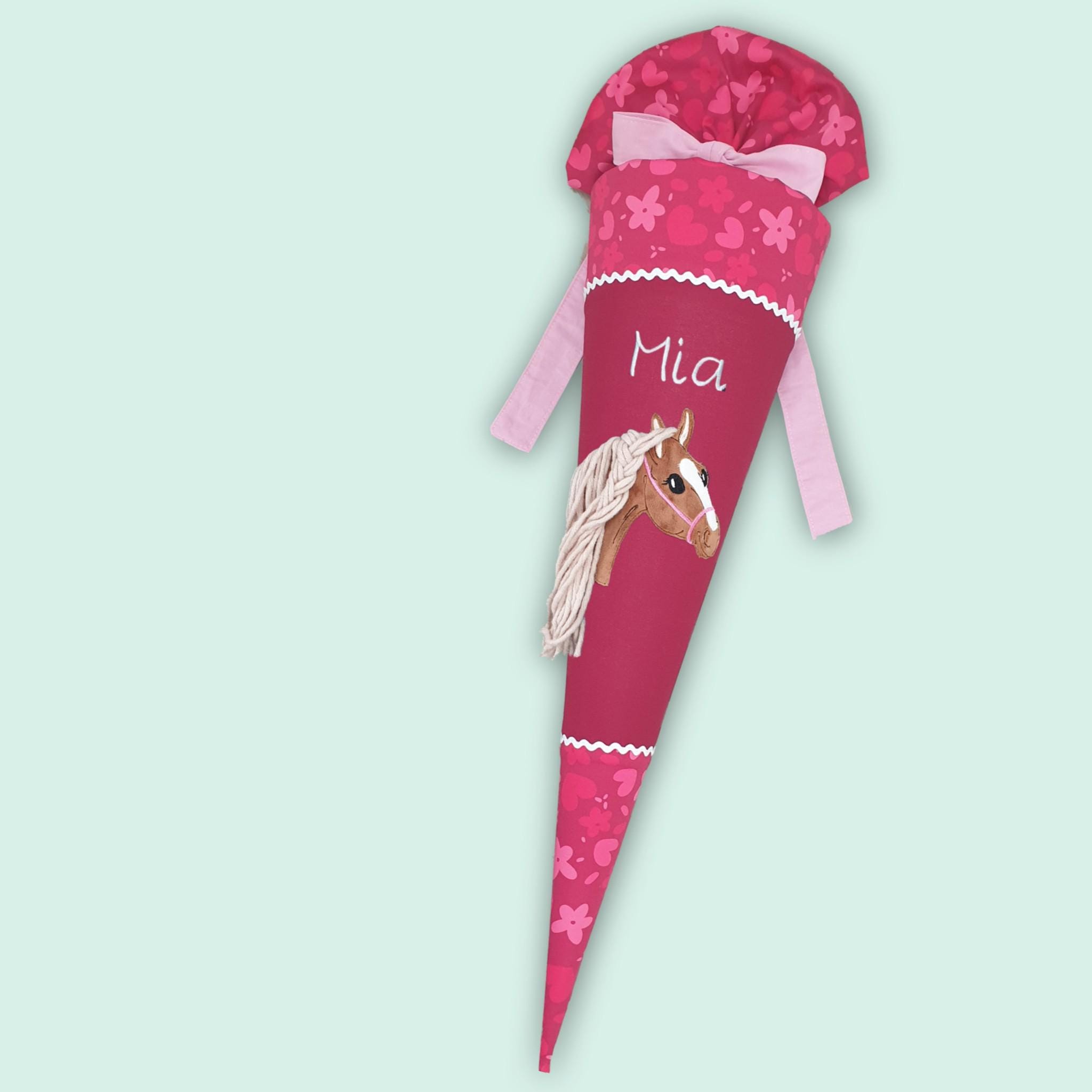 70 cm Schultüte oder 85 cm Schultüte mit Pferd und Namen farblich auf den Wild Horse Nora Schulranzen abgestimmt.