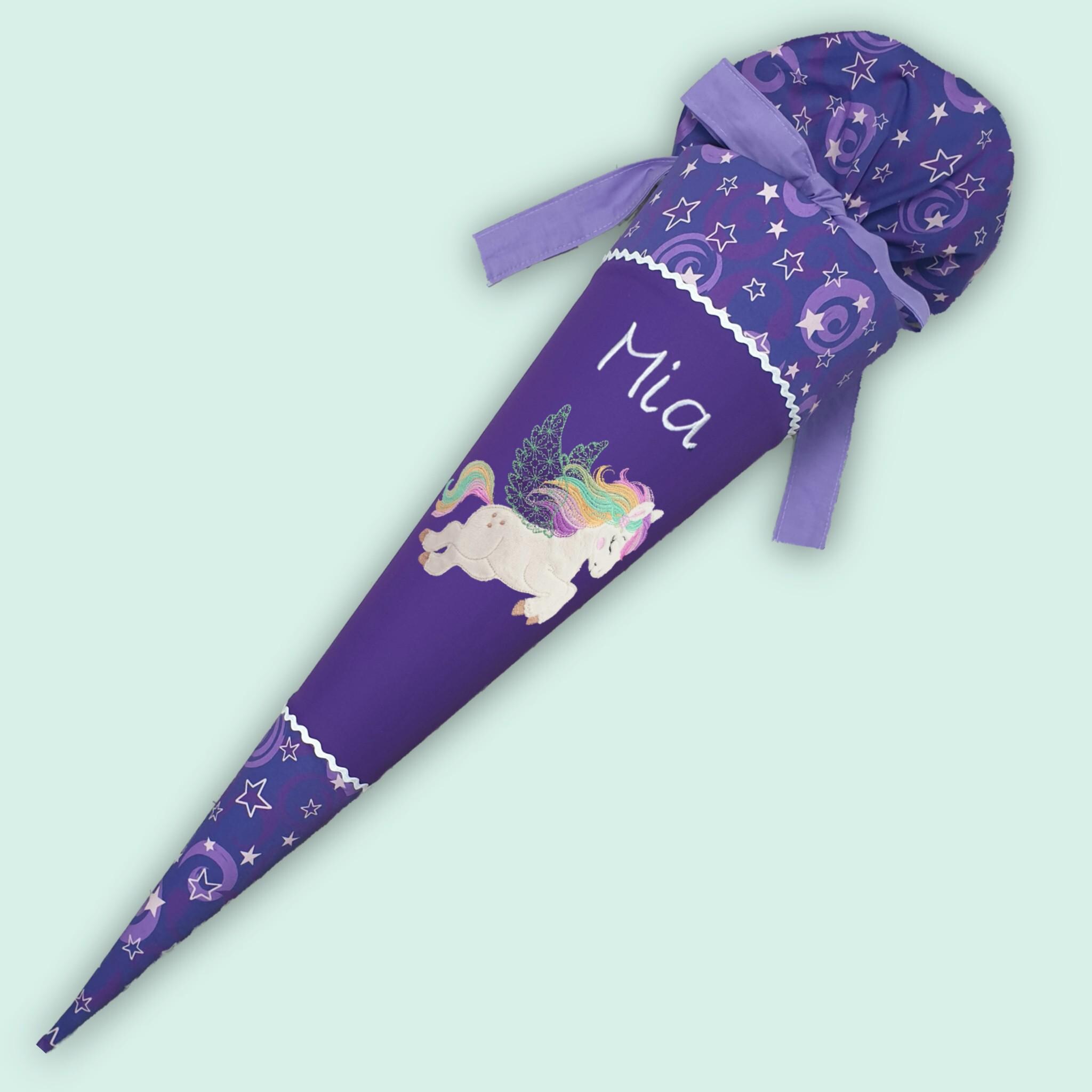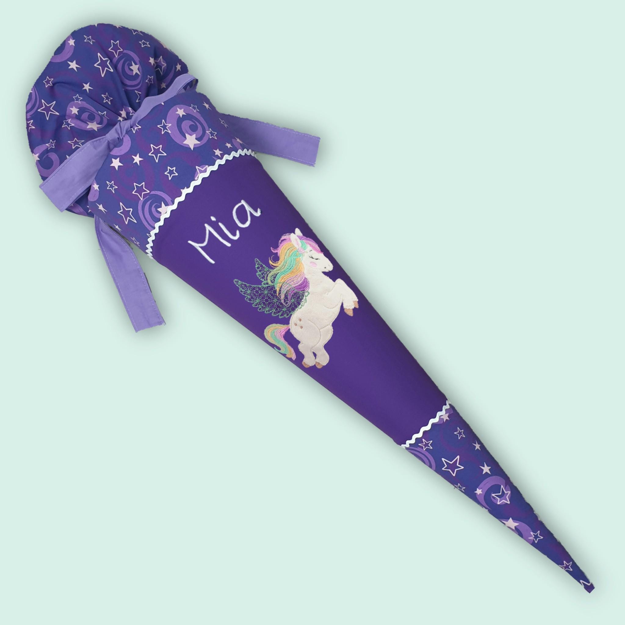 Schultüte mit Pegasus und Namen farblich auf den step by step Pegasus Liv Schulranzen abgestimmt.