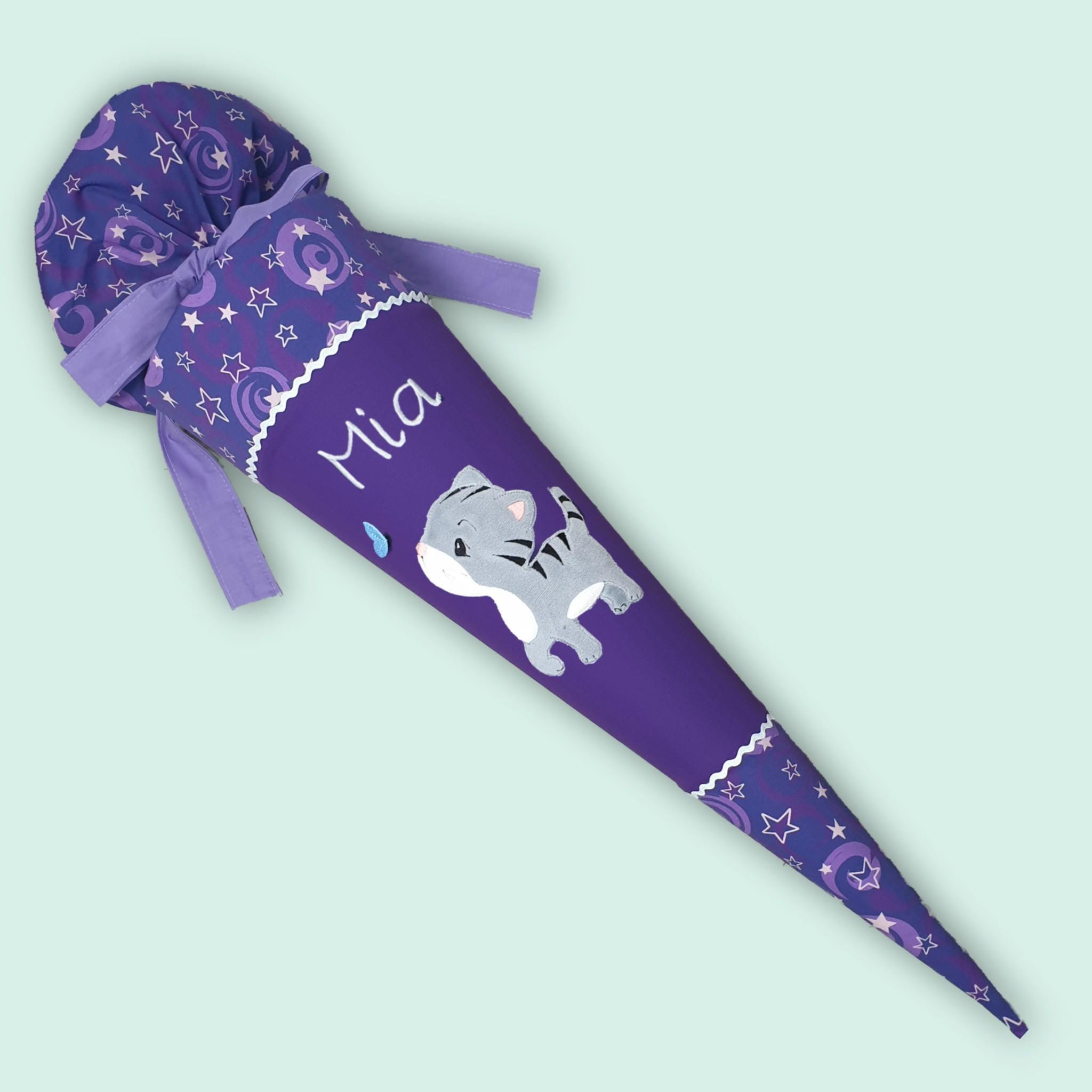 Die Stoffhülle ist aus Baumwollstoffen gefertigt und mindestens 20 cm länger als die eigentliche Schultüte, sodass sie perfekt passt und sich gut befüllen und verschließen lässt.