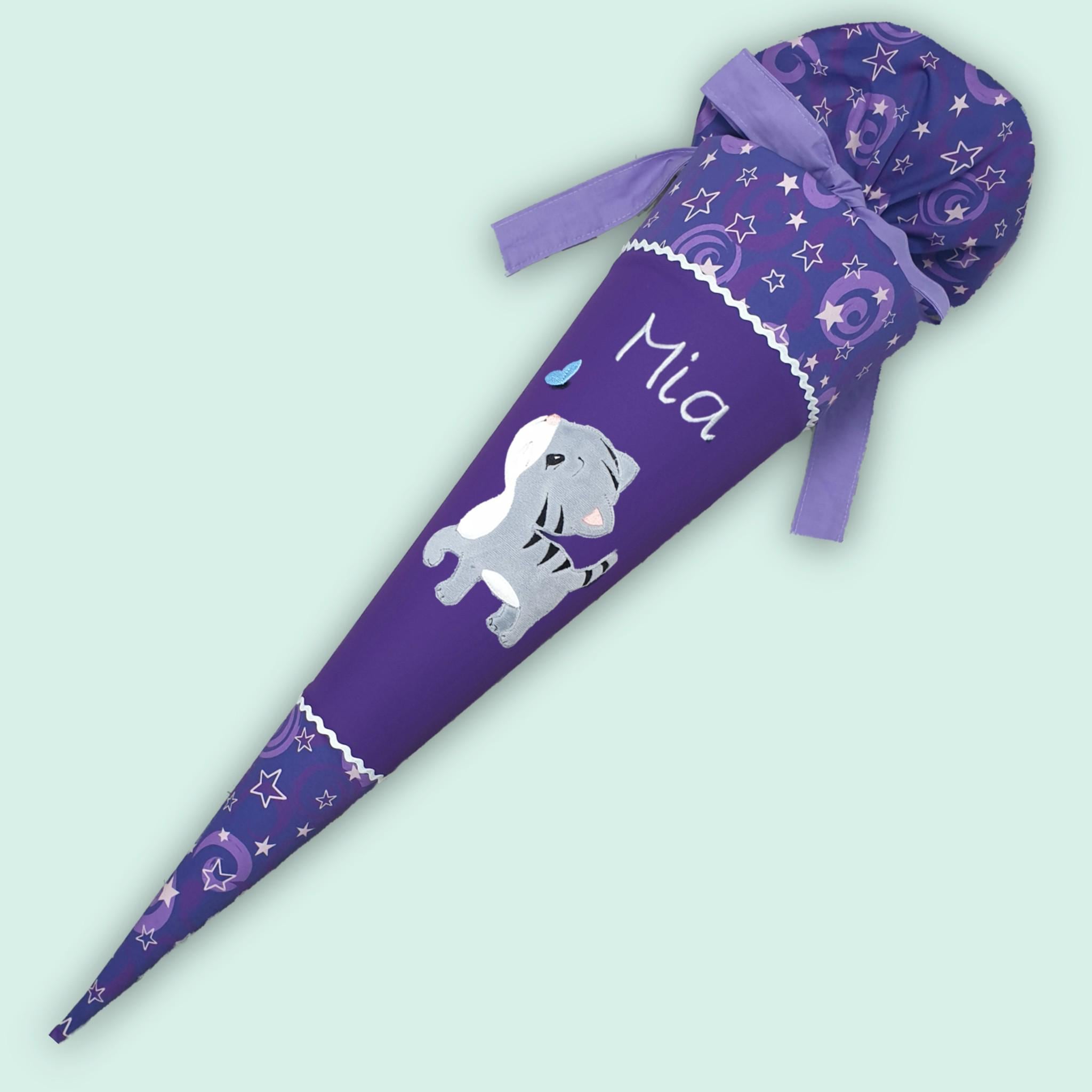 Schultüte Katze und Namen farblich auf den step by step Pegasus Liv Schulranzen abgestimmt.