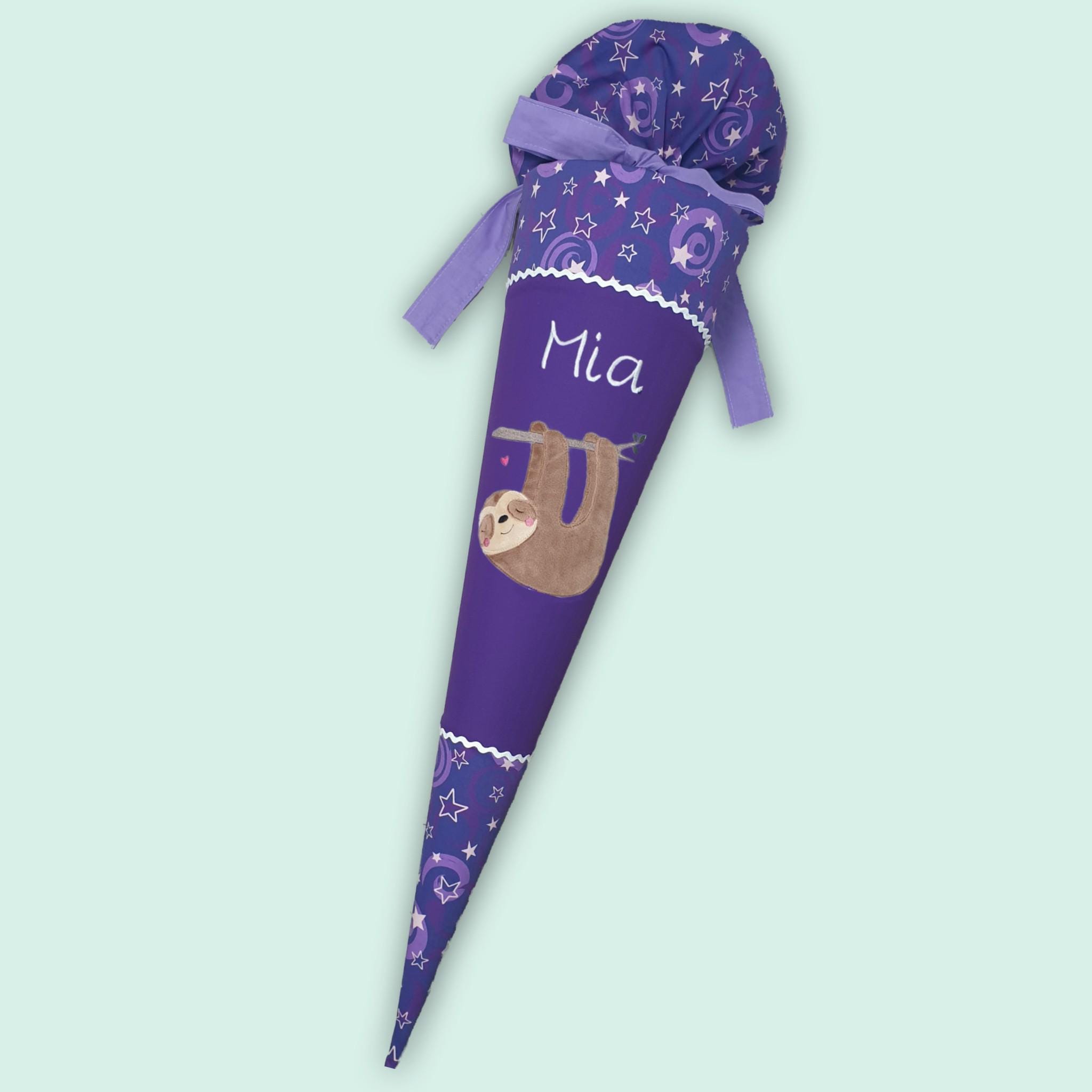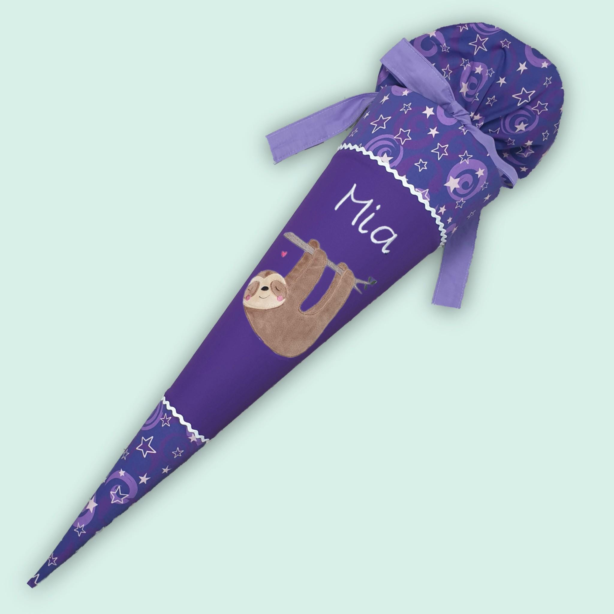 Schultüte Faultier und Namen farblich auf den step by step Pegasus Liv Schulranzen abgestimmt.