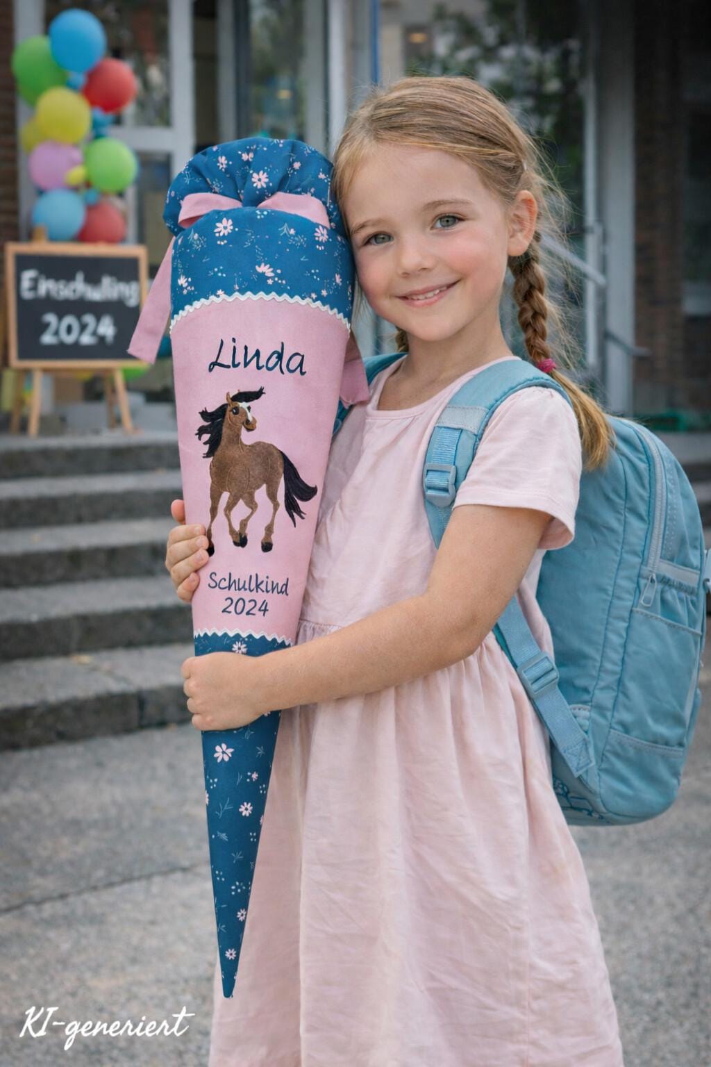Schultüte mit Pferd und Namen farblich auf den Step by step Wild Horse Ronja abgestimmt.