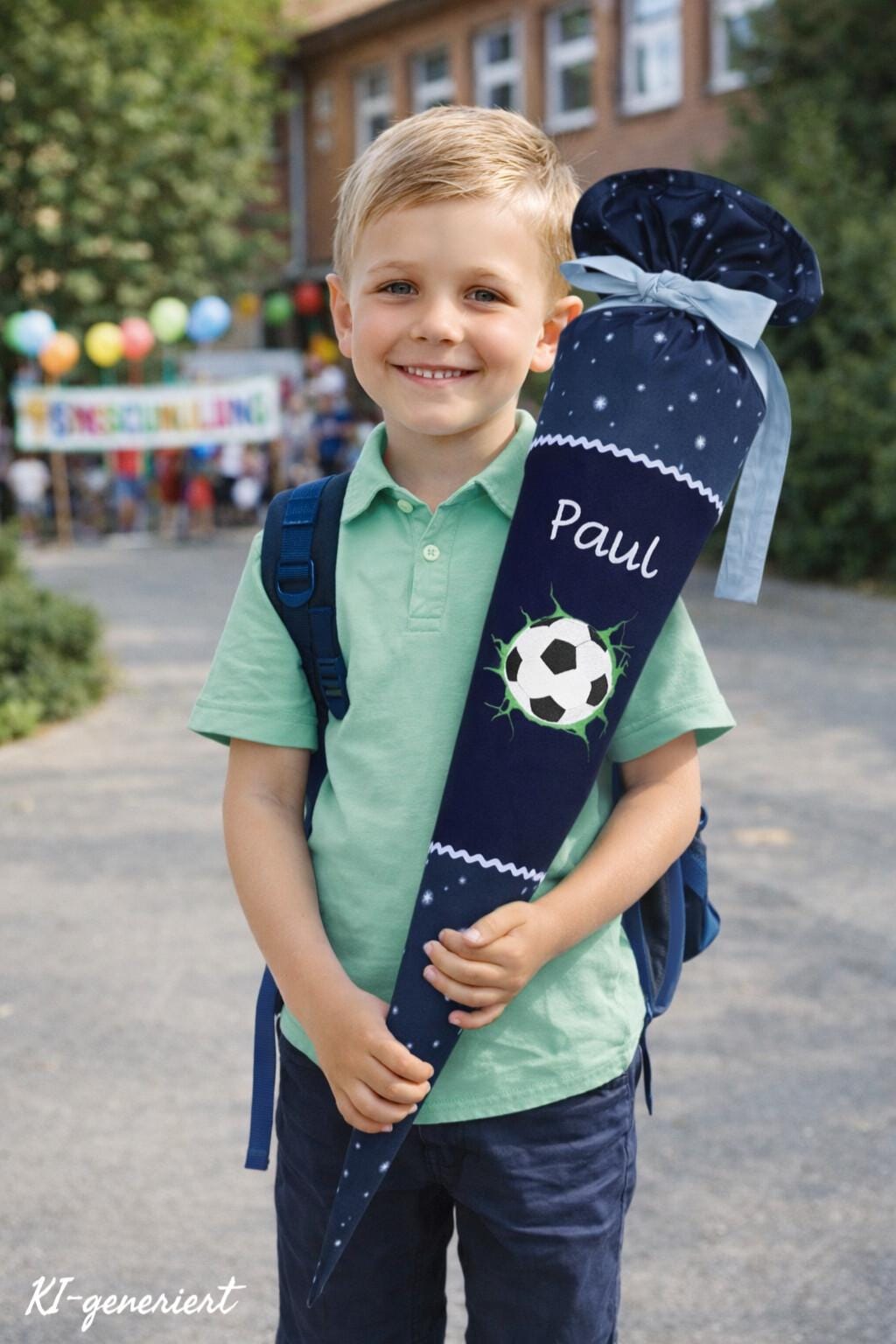 Mit dem Namen deines kleinen Schulanfängers wird die Schultüte zu einem ganz persönlichen Begleiter.