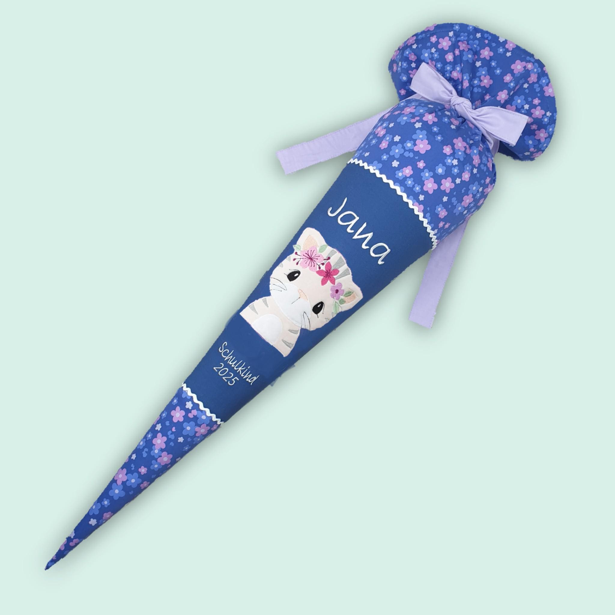 Die Stoffhülle ist aus Baumwollstoffen gefertigt und mindestens 20 cm länger als die eigentliche Schultüte, sodass sie perfekt passt und sich gut befüllen und verschließen lässt.