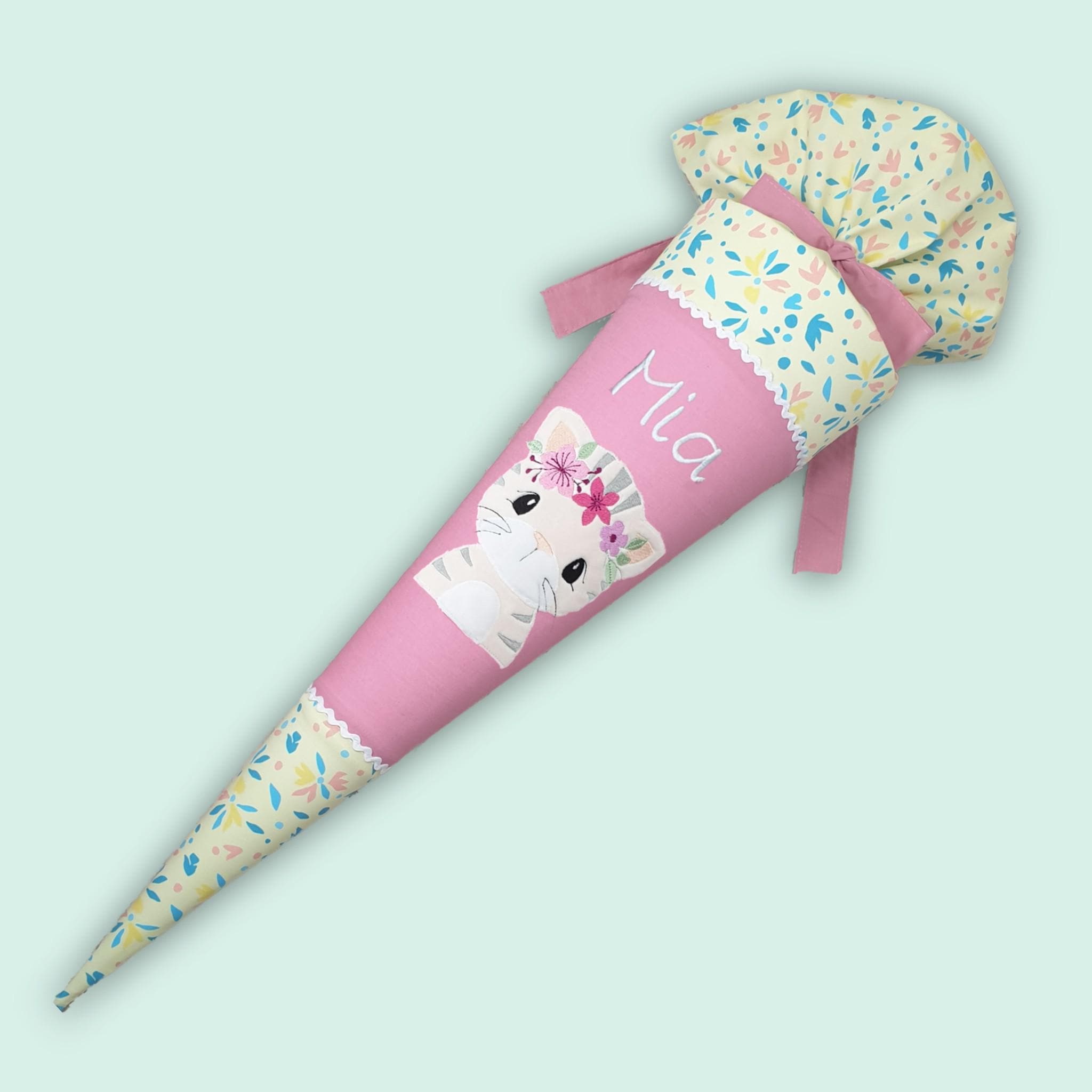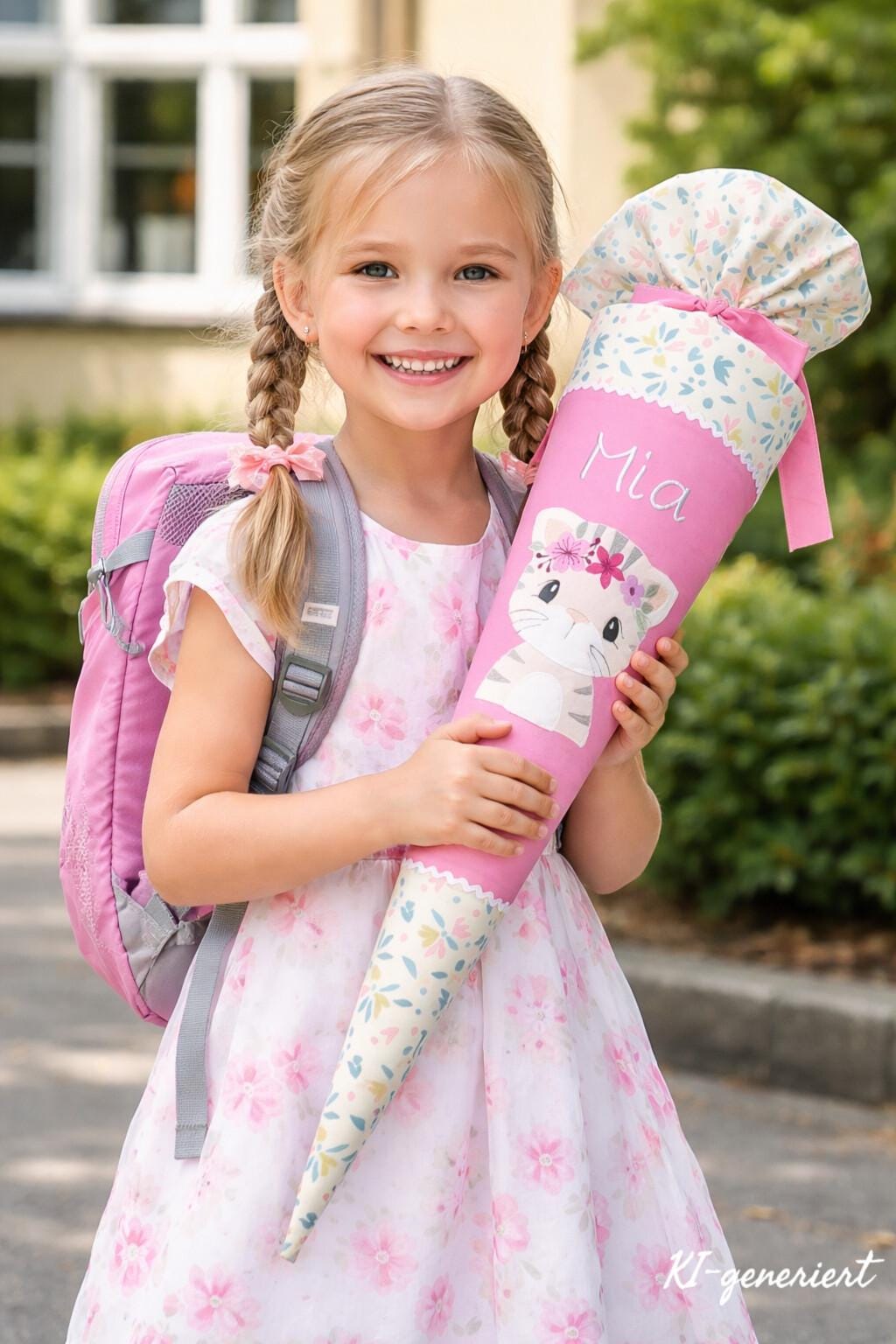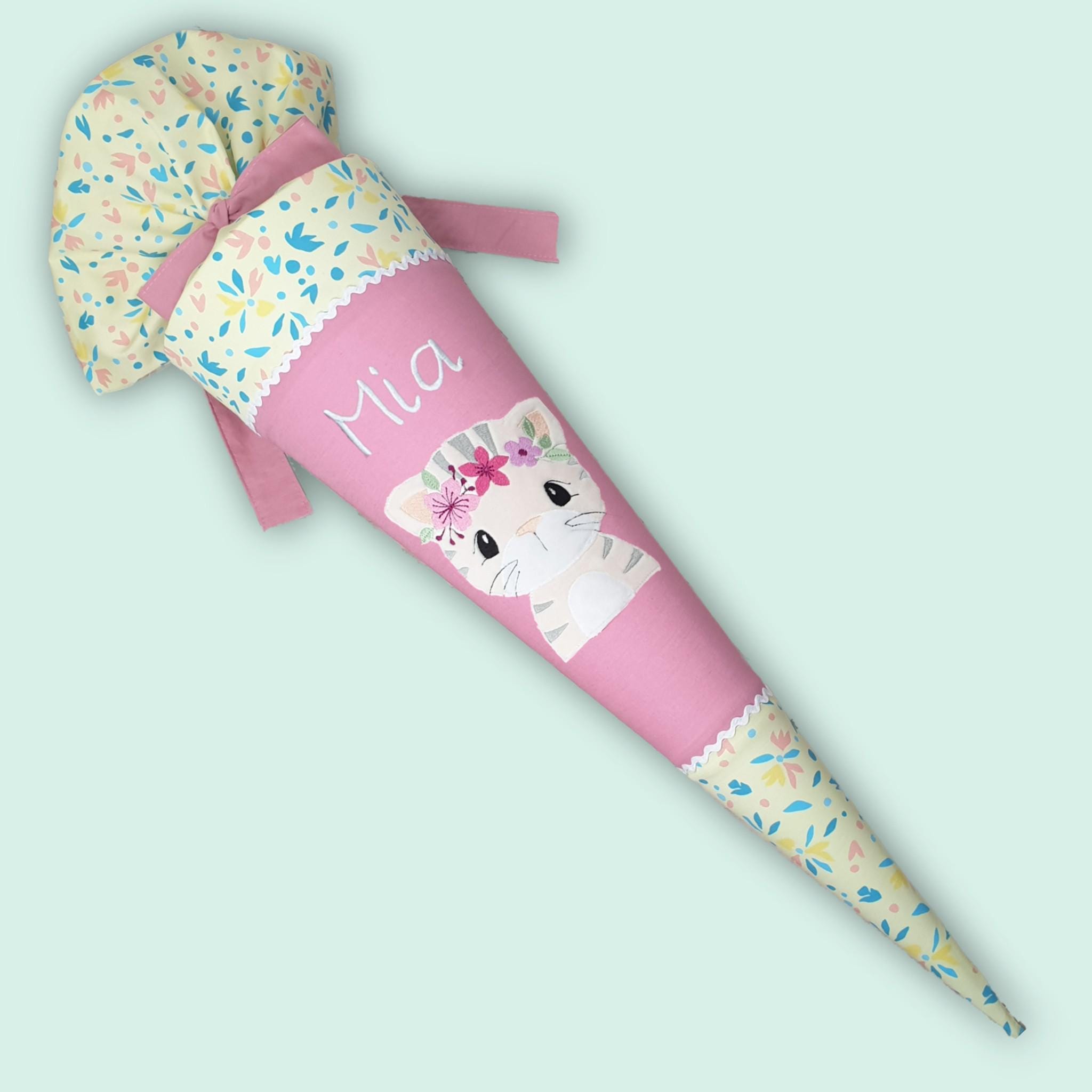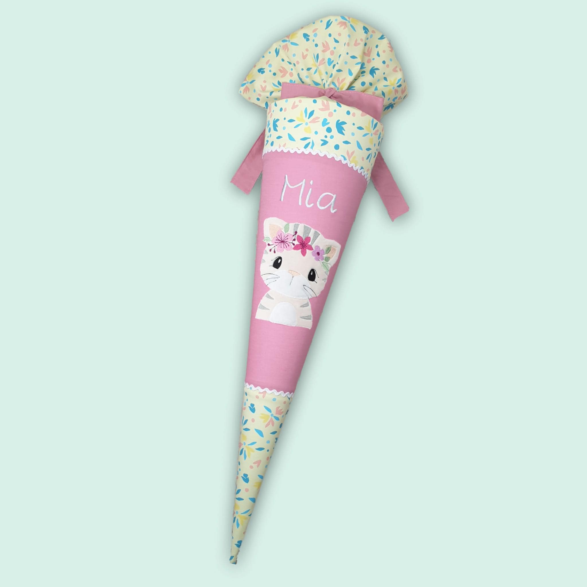 70 cm Schultüte oder 85 cm Schultüte mit Katze und Namen farblich auf den Step by step Cat Lilly Schulranzen abgestimmt.