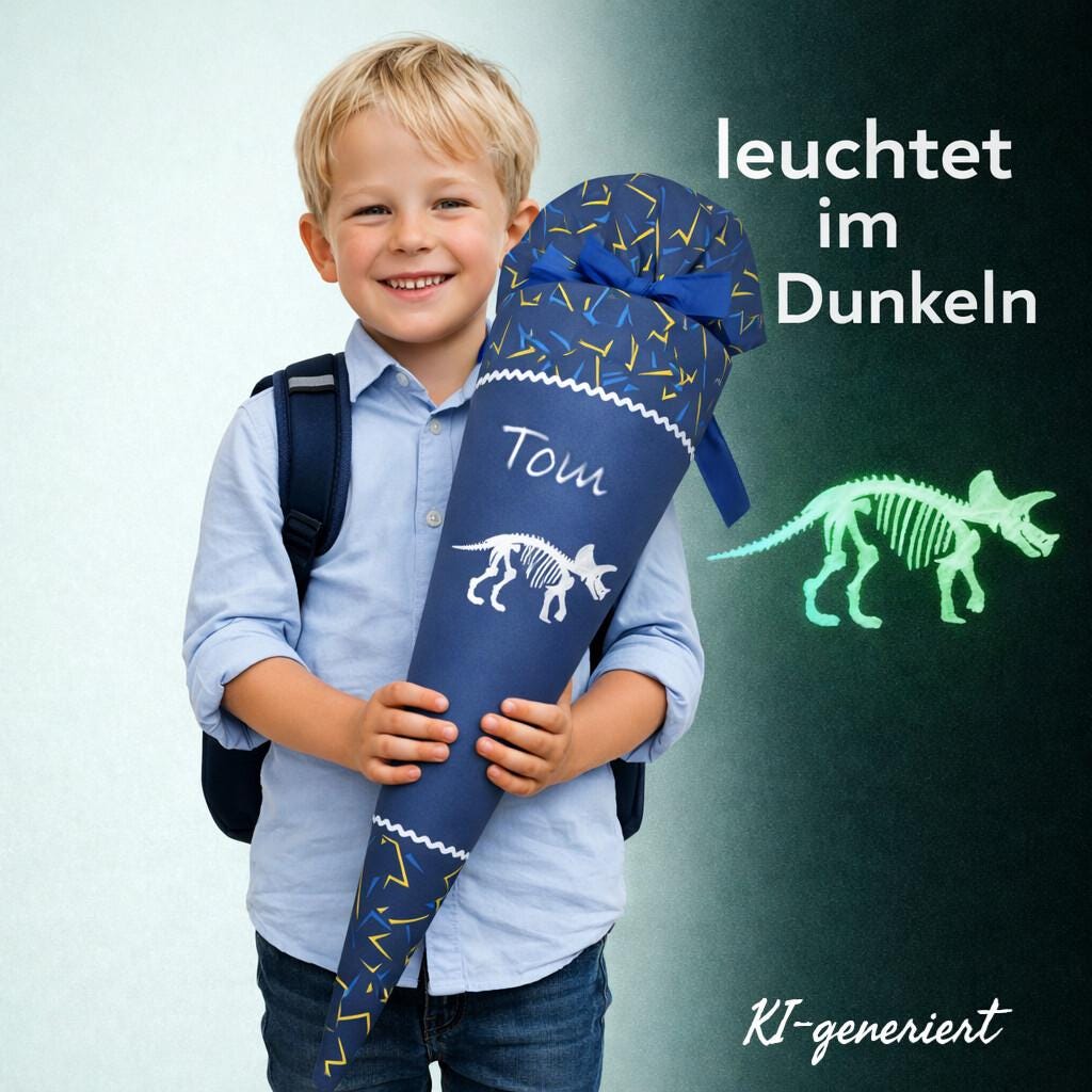 Schultüte mit Dinosaurier und Namen farblich auf den Step by Step Triceratops Schulranzen abgestimmt.