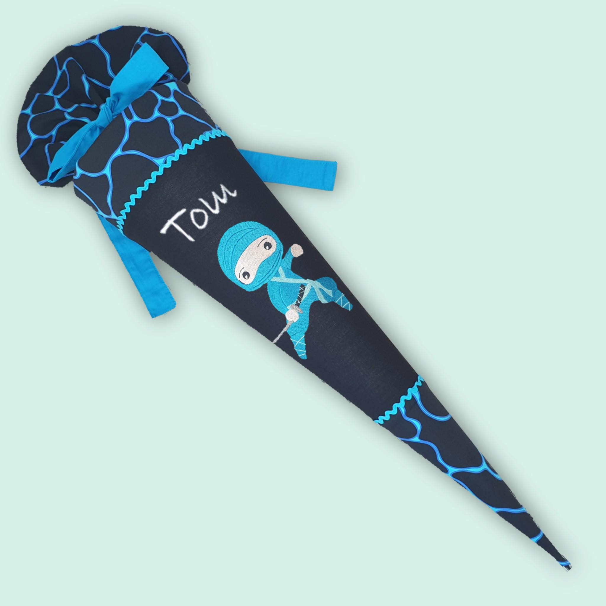 Die Stoffhülle ist aus Baumwollstoffen gefertigt und mindestens 20 cm länger als die eigentliche Schultüte, sodass sie perfekt passt und sich gut befüllen und verschließen lässt.